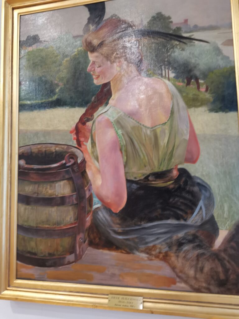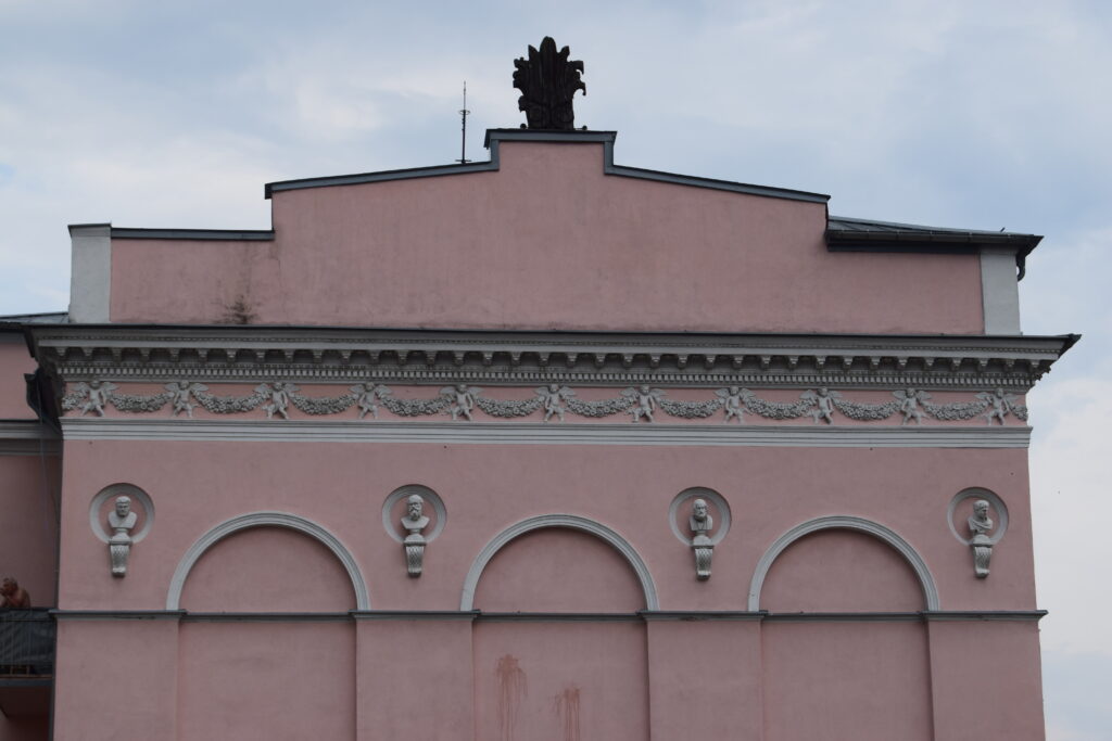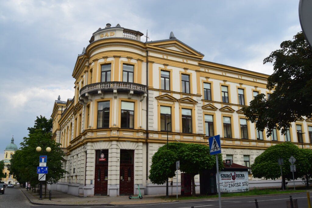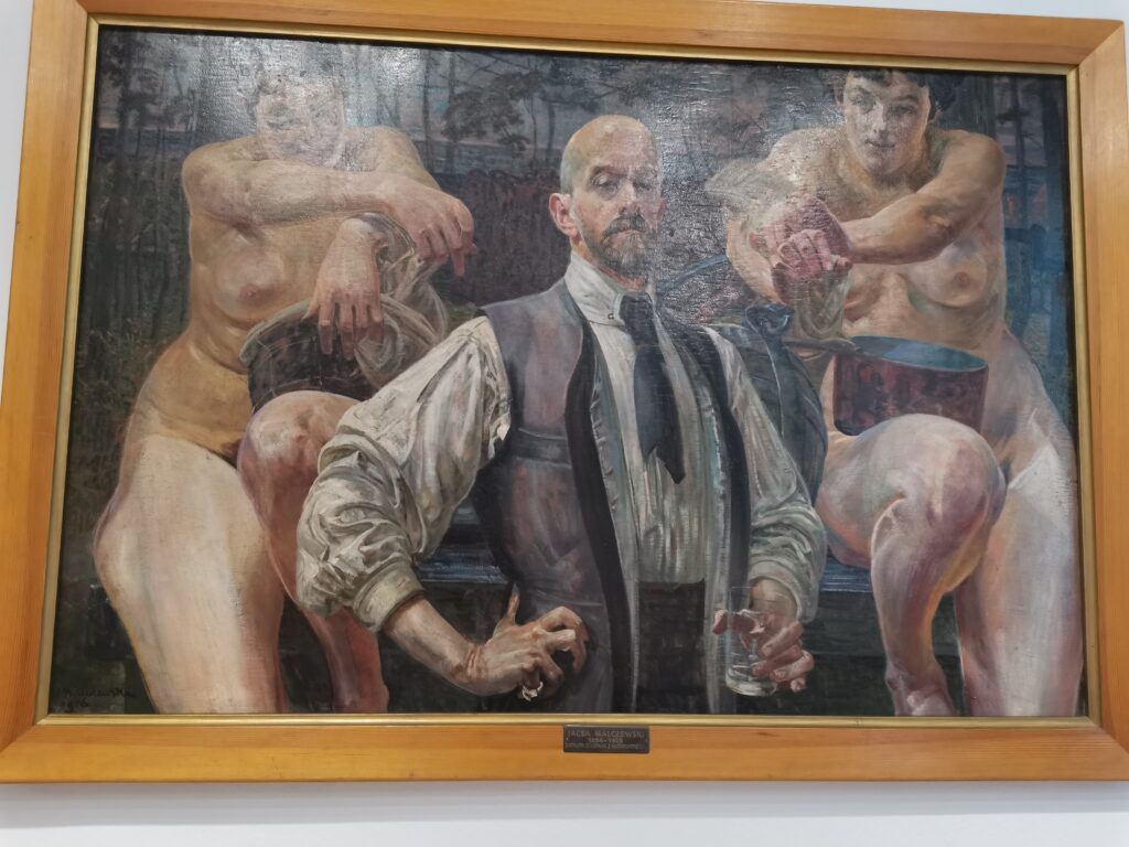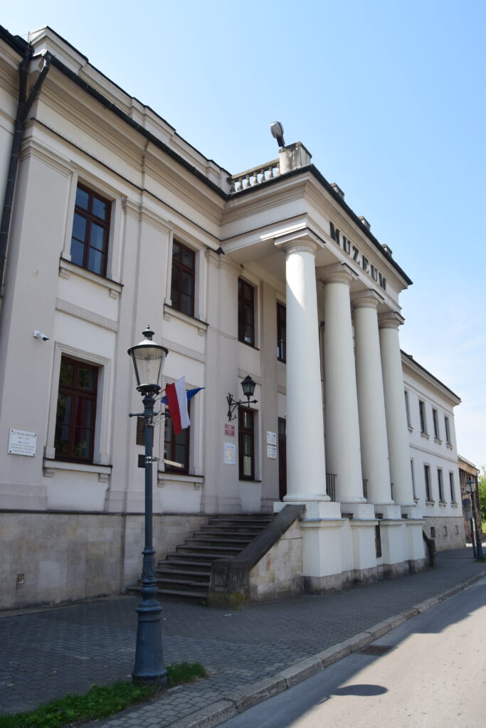 Muzeum zajmuje dawne kolegium pijarskie i jest jedną z dwóch najbardziej imponujących budowli przy radomskim rynku. Wybitny portyk wsparty na czterech pokaźnych kolumnach stanowi godną oprawę wejścia do tego przybytku kultury. Wystawy o torebkach, choć dla mnie bardzo ciekawej, nie mogę polecać, z prostego powodu, że obejrzeliśmy ją ostatniego dnia przed zamknięciem. Za to zbiór ponad 40 obrazów Jacka Malczewskiego jest na pewno godny zobaczenia. Wybitny przedstawiciel symbolizmu w sztuce malarskiej urodził się w Radomiu i gdy w 1925 roku świętował jubileusz 50-lecia twórczości, miasto za 3000 ówczesnych złotych nabyło od mistrza kilka malunków, które stworzyły zaczątek kolekcji. W czasie naszej wizyty w muzeum odbywał się koncert, co powodowało, że w niedzielne południe było to jedyne miejsce generujące jakikolwiek ruch ludzki na rynku.