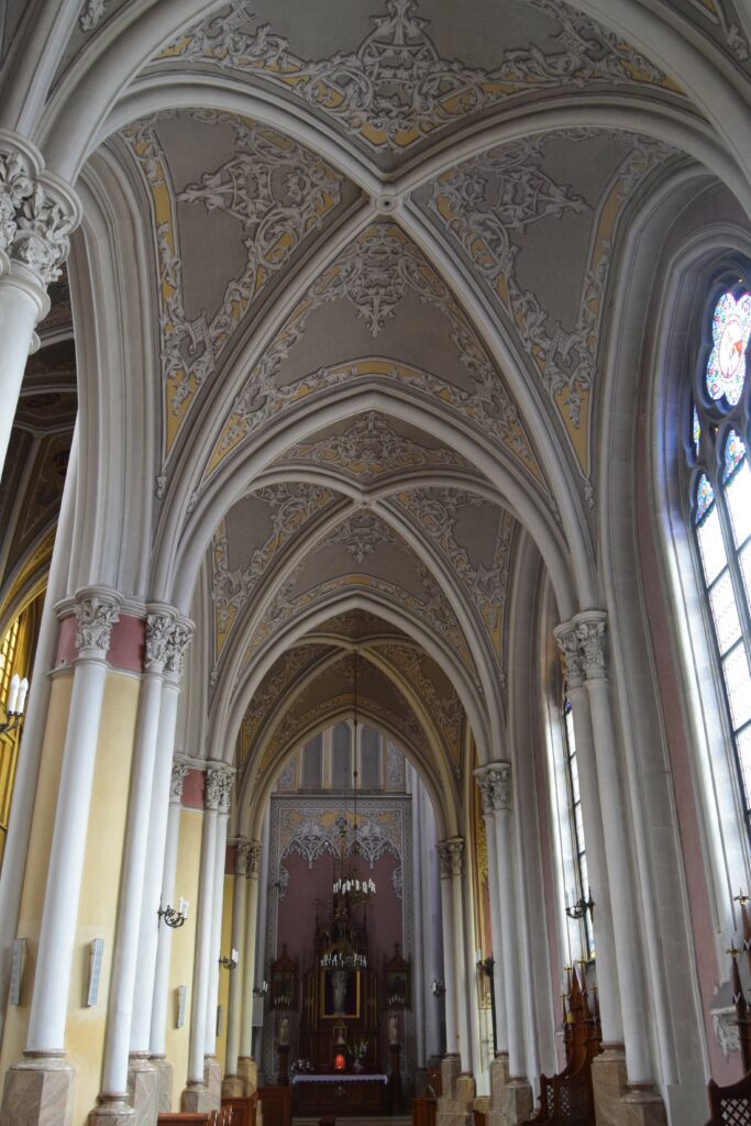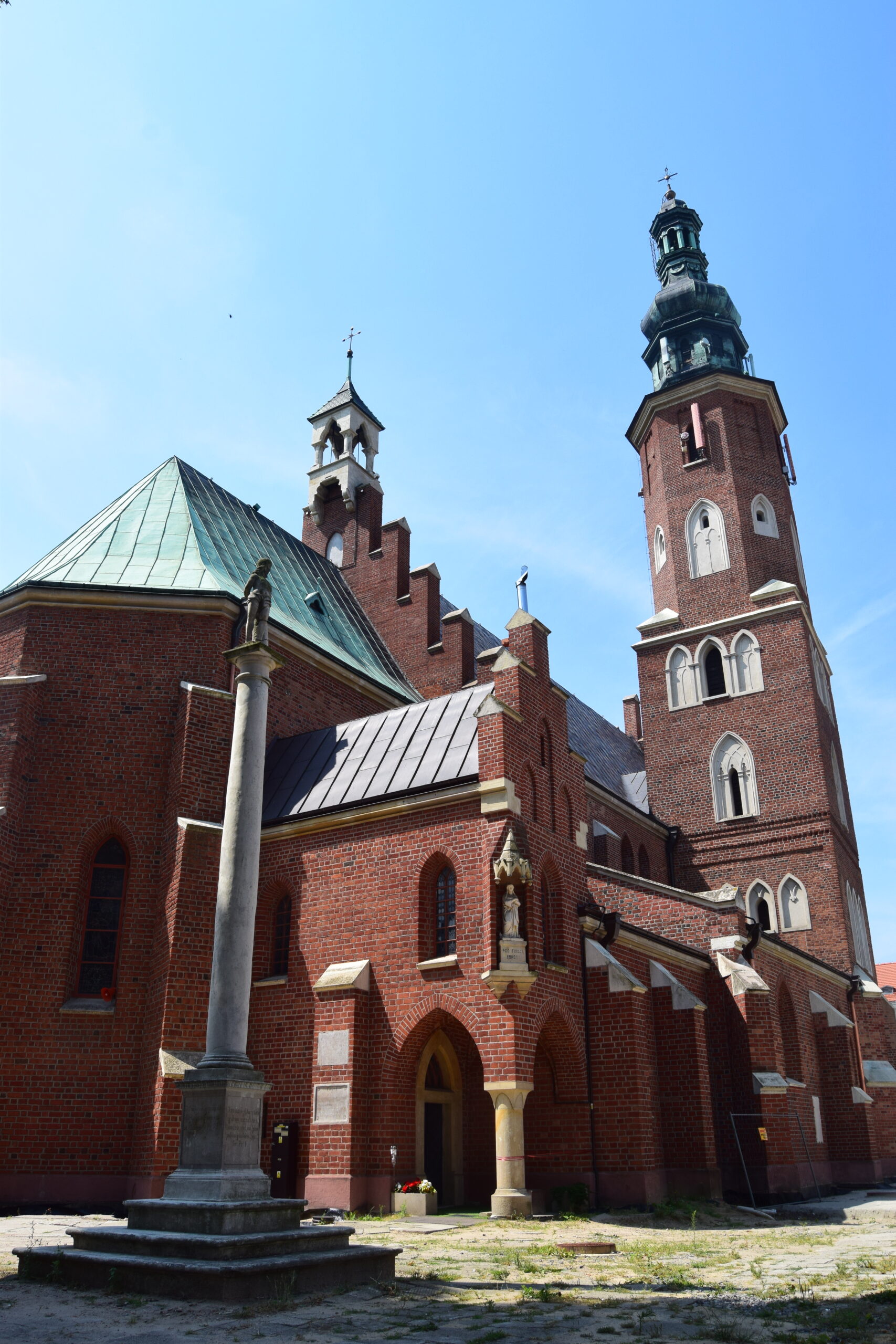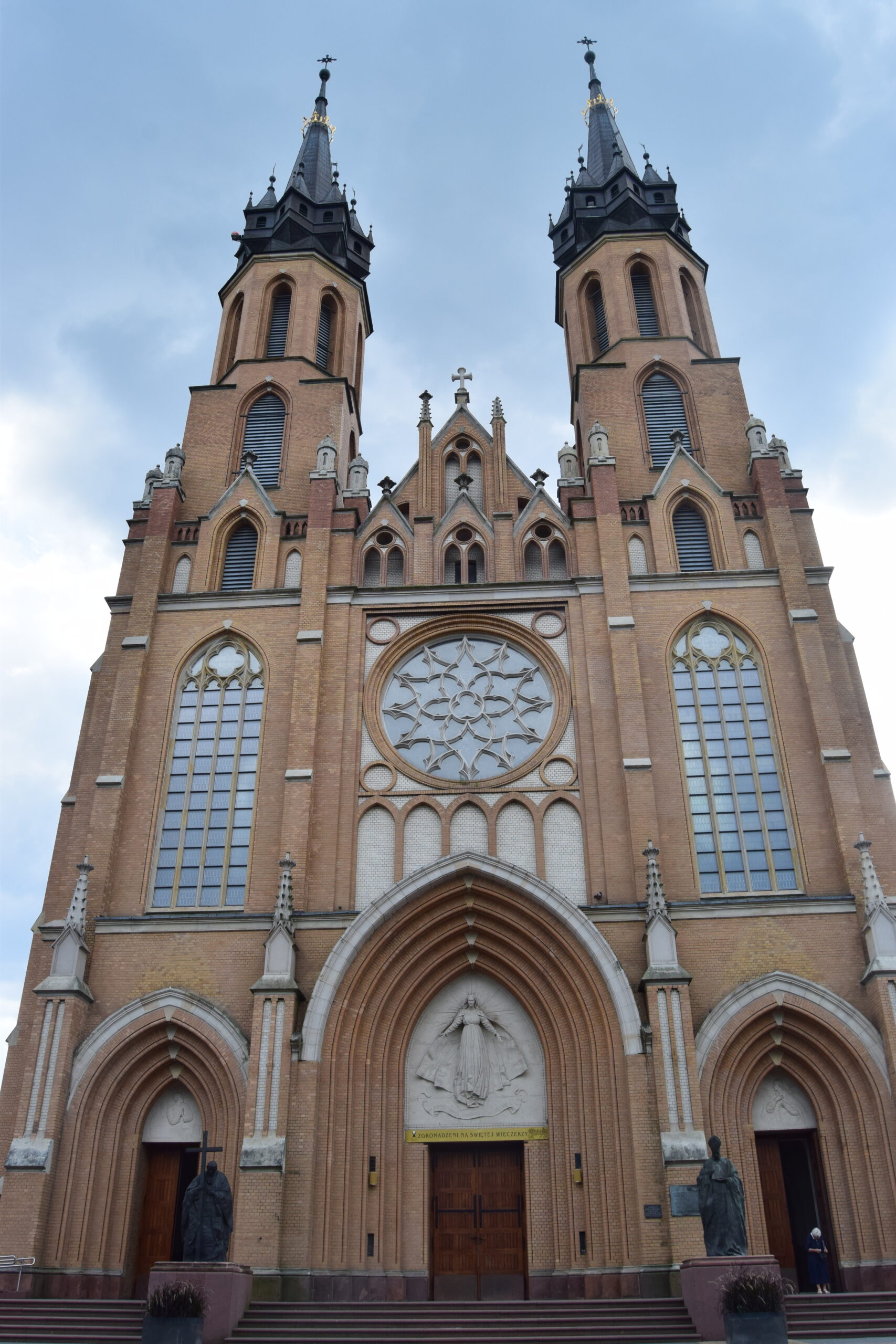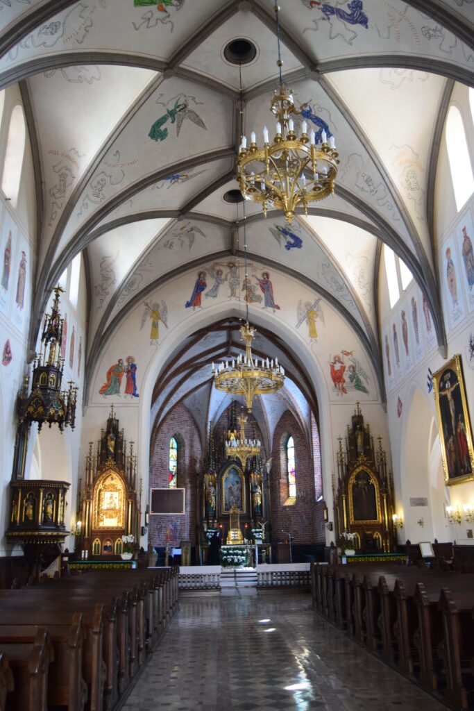 Z licznych radomskich świątyń odwiedziliśmy trzy: parafialny kościół Miasta Kazimierzowskiego pod wezwaniem św. Jana Chrzciciela, kościół bernardynów u początków ulicy Żeromskiego oraz katedrę Opieki Najświętszej Maryi Panny. Dwa pierwsze mają średniowieczne pochodzenie, a katedra zbudowana jest w stylu neogotyckim, na przełomie XIX i XX wieku. Kościół św. Jana Chrzciciela wyróżnia się tablicą upamiętniającą chrzest Jacka Malczewskiego, licznymi figuralnymi polichromiami z lat 60-tych XX w. oraz tym, że jego wieża domyka perspektywę ulicy Żeromskiego od strony zachodniej. Klasztor bernardynów ma malowniczy dziedziniec oraz urocze ogrody kwiatowe. Od strony ogrodu do klasztoru przylega też pochodzący z XV w. budynek gospodarczy, zwany piekarnikiem, z górującym nad nim masywnym kominem. Nazwa jest zwodnicza, podobno nie wypiekano w nim chleba, jeno warzono piwo. Jest to jedyny budynek o takim przeznaczeniu i wieku, zachowany w Polsce. Do stylu neogotyckiego przywykałem latami, traktując go jako podróbkę, czyli w gruncie rzeczy podrzędną imitację oryginalnego gotyku. Z wiekiem zacząłem jednak ten styl doceniać. Za rozmach, przemyślne łączenie nowoczesnych rozwiązań konstrukcyjnych z tradycyjną formą, a przypadku architektury sakralnej, także za urbanistyczne wpasowanie w istniejącą tkankę miasta. Taka jest właśnie radomska katedra. Wysokie na 72 m wieże przypominające krakowski Kościół Mariacki, górują nad parkiem Kościuszki oddzielającym katedrę od budynku gubernatorstwa, siedziby ówczesnych władz świeckich. Wnętrza są obszerne, ściany pokryte stiukami, światło do wnętrza sączy się przez okna, w których zainstalowano olbrzymie, impresjonistyczne witraże. W niedzielne, letnie popołudnie wnętrze emanowało spokojem i chłodem.