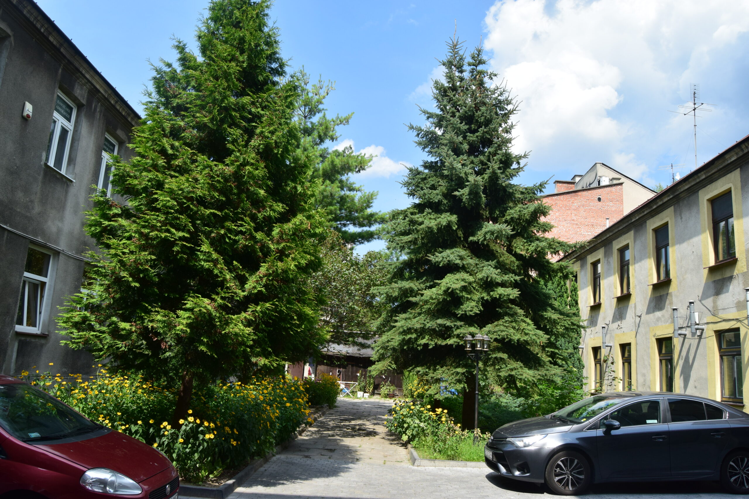 W XIX wieku działki budowlane w miastach zabudowywane były w ten sposób, że najpierw powstawał dom frontowy od ulicy. Z czasem sady i ogrody znajdujące się na jego zapleczu były obudowywane oficynami ciągnącymi się prostopadle do pierzei frontowej. Jeszcze później powstawały oficyny poprzeczne. Na wewnętrzne podwórka wjeżdżało się przez bramę w budynku frontowym. Przy maksymalnym zagęszczeniu zabudowy podwórko z adresem na jednej ulicy łączyło się poprzez budynek oficyny poprzecznej z podwórkiem na ulicy równoległej. W wielkich miastach takich, jak Warszawa, czy Łódź, oficyny osiągały wysokość kamienicy frontowej, tworząc podwórka studnie. W miastach mniejszych oficyny były zazwyczaj niższe, a czasem wręcz budowane z drewna. Podwórka studnie zostały utrwalone w literaturze, jako synonim substandardowych warunków mieszkaniowych. Faktycznie, mieszkania były tam tańsze, niż od frontu, a do niżej położonych lokali rzadko docierały promienie słoneczne. Sporadycznie wspomina się, że oficyny stanowiły też siedzibę wszelkiego rodzaju działalności wytwórczej i usług. Mieściły się w nich czasami nawet dziesiątki małych firm. W Radomiu, na zapleczu kamienicy przy Lubelskiej 28 (dzisiaj Żeromskiego), od 1823 roku działała drukarnia, w latach późniejszych znana, jako Zakłady Drukarsko-Litograficzne „Jan Kanty Trzebiński”. Tłoczono w nich „Dziennik Urzędowy Guberni Radomskiej”, ale także „Gazetę Radomską” oraz liczne publikacje książkowe. Za wysoką jakość produkcji drukarnię uhonorowano złotym medalem na Wystawie Rolno-Przemysłowej w Radomiu. Od 1918 roku na cele drukarni, w podwórku, postawiono malowniczy pawilon z czerwonej cegły z łamanych dachem i kamieniarką z beżowego piaskowca, według projektu Adolfa Szyszko-Bohusza, głównego konserwatora zamku królewskiego na Wawelu. Na Żeromskiego 66 kryje się natomiast dowód, że w oficynach kwitło nie tylko życie gospodarcze, ale i religijne. Nad brama wjazdową od strony podwórka znajduje się tam drewniany wykusz, wsparty na metalowej kolumnie. Jest to pomieszczenie, w którym podczas święta Sukkot, przez okrągły tydzień, mieszkali i modlili się religijni Żydzi. Ponieważ w Polsce święto to zwano Kuczki, taka nazwa przyjęła się też dla miejskich konstrukcji symbolizujących szałasy postawione niegdyś na pustyni.