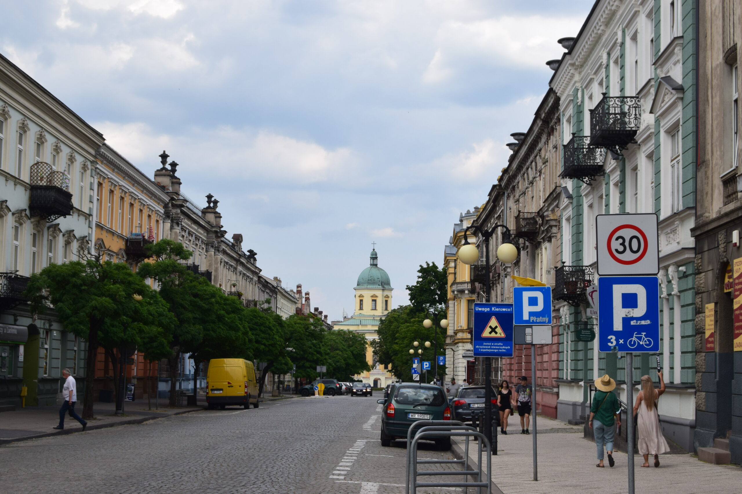 Centrum Radomia przez stulecie wędrowało po rozległych przestrzeniach miasta. Zanim przemieściło się z Miasta Kazimierzowskiego na wschód, w X-XI wieku mieściło się na tzw. Piotrówce, na południowy-zachód od rynku. Nazwa pochodzi od wezwania najstarszego, nieistniejącego już kościoła radomskiego. W wieku XII centrum przemieściło się na północ, w okolice obecnej ulicy Stare Miasto i kościoła św. Wacława. Jest to najstarsza radomska świątynia, choć obecny wygląd zawdzięcza regotycyzacji przeprowadzonej w latach 80-tych XX w., po 200 latach użytkowania jako magazyn, więzienie, przytułek i szpital dla psychicznie chorych. Po doprowadzeniu do Radomia kolei żelaznej, w roku 1883, miasto zaczęło rozwijać się ku południowi, w kierunku dworca kolejowego. Proces ten wzmocniło powstanie w tych okolicach, w latach międzywojennych, Fabryki Broni oraz usytuowanych w pobliżu osiedli przeznaczonych dla jej pracowników. Ta część miasta do dzisiaj ma najbardziej wielkomiejski wygląd. Odkryciem naszej ostatniej wizyty była jednak ulica Piłsudskiego. Obudowana ściśle z obydwu stron rzędami eklektycznych, dobrze utrzymanych kamienic o pastelowej kolorystyce, z perspektywą zamkniętą kopułą garnizonowego kościoła św. Stanisława, ma ona iście petersburski klimat. Nie ma w tym zresztą nic dziwnego, że miasto rangi gubernialnej starało się czerpać wzorce ze stolicy imperium.