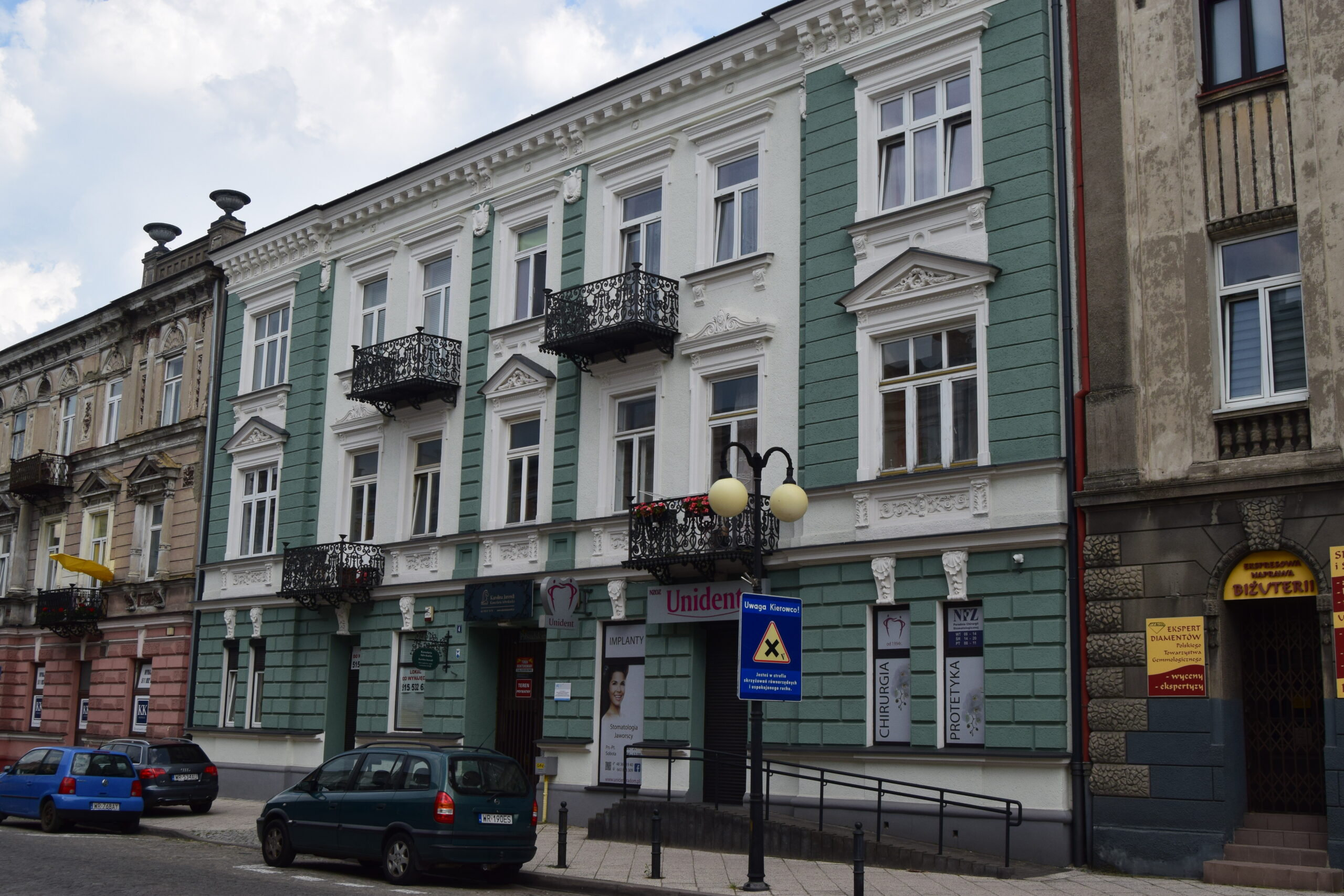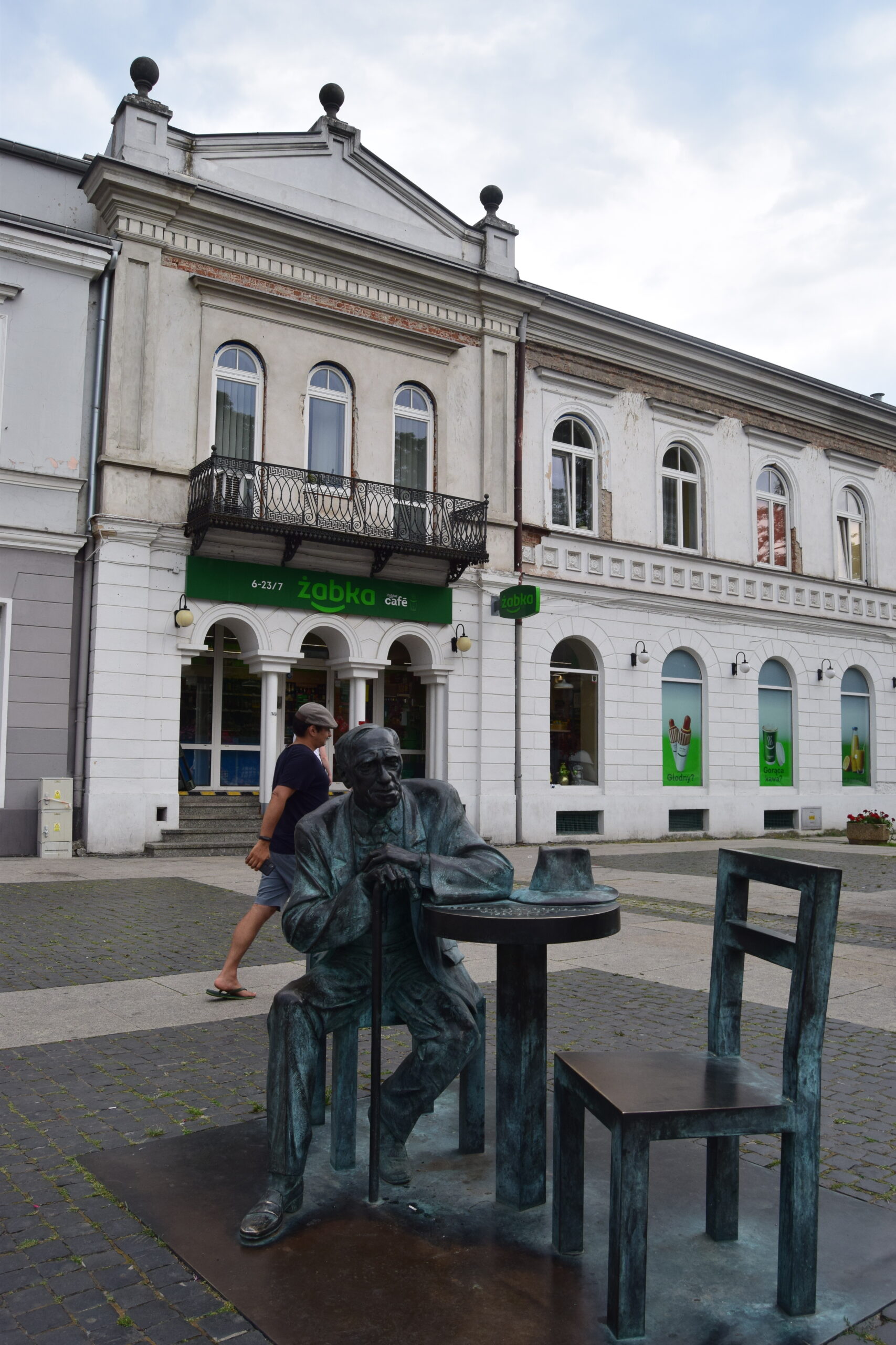 Jeśli rynek nie jest centrum Radomia, to gdzie można je znaleźć? Odrzucę złośliwe komentarze, że w rozsianych po całym, rozległym obszarze miasta centrach handlowych. Moim zdaniem jest nim położony w środkowej części ulicy Żeromskiego Plac Konstytucji 3 Maja. W każdym razie jest to na pewno mekka miłośników spotkania przy filiżance espresso. Spośród kilku kawiarni my wybraliśmy, kierując się zachwytami w Internecie, Marcus Cafe. W środku utrzymana w stylistyce fin de siècle, serwuje dobrego smaku kawę i przyzwoity wybór słodyczy. Choć byliśmy tam bez naszego najwierniejszego przyjaciela, to doceniliśmy fakt, iż goście z psami dobrze czuli się w kawiarnianym ogródku. Południowa część placu zdominowana jest przez kopułę niegdysiejszej cerkwi, przebudowywanej w latach 20-tych XX w. na garnizonowy kościół św. Stanisława. Ciekawym akcentem jest też modernistyczny niebotyk, czyli 5 kondygnacyjny dom mieszkalny, najwyższy w przedwojennym mieście. Gdyby inwestorowi nie zabrakło kapitału, mógłby też być jedynym w mieście gmachem z zainstalowana windą pasażerską. Północną, mniejszą obszarowo, część placu zdominował pawilon z amfiteatralnym dachem, z którego można podziwiać zainstalowane u jego podnóża fontanny. Plac zamyka efektowny, 170-cio letni budynek Towarzystwa Kredytowego Ziemskiego, remontowany i uzupełniany o nowe skrzydła na potrzeby planowanego tu hotelu. Dysonansem w tym przyjemnym otoczeniu okazał się jednak lekko podpity obywatel agresywnie broniący prawa do uwiecznienia swego wizerunku. Gdyby tylko ktoś chciał go fotografować! W każdym razie nie byłem to ja.