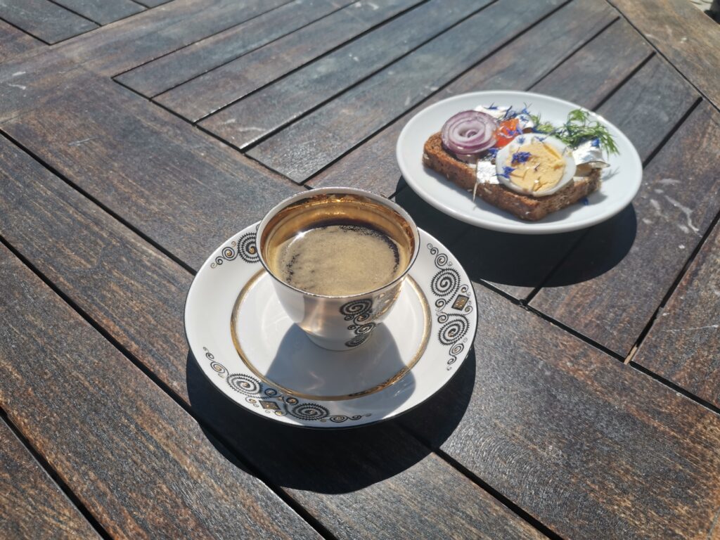 Nudno jest tylko chwalić wyśmienitą estońską gastronomię. Wspomnę więc o dwóch odwiedzonych lokalach, nie ze względu na ich wybitne menu, ale z innych powodów. Niewątpliwym urozmaiceniem obiadu spożywanego w lokalu usytuowanym w nowym budynku na brzegu basenu portowego przy ulicy Kalaranna, było obserwowanie kolejnych spacerowiczów wpadających w pułapkę zastawioną na nich przez budowniczych nadmorskiej promenady. Otóż podążając brzegiem w kierunku miasta, niczym ryby w żaku, nieuchronnie docierali do miejsca, gdzie ogrodzenie rewitalizowanego nabrzeża nie pozwalało na dalsze kontynuowanie spaceru. Niektórzy próbowali coś kombinować, inni poddawali się prędzej, ale wszyscy musieli wrócić i wyjść na ulicę tuż przy naszej restauracji. Tu dopiero mogli zobaczyć tabliczkę informująca, że przejścia nie ma! Ale chyba cieszyli się, że nikt nie próbował ukarać ich mandatem w wysokości 500 Euro, gdyż taką karę dla niesfornych sugerowała treść tabliczki. Lokal w dzielnicy Mustamäe, gdzie na obiad zaprosili nas estońscy przyjaciele, zapunktował zaś elastycznością obsługi. Pozwolono nam mianowicie, po spożyciu dań głównych, wystawić na stół przywieziony z Polski sękacz. Jak wiadomo, nie jest to zwyczaj powszechnie praktykowany nawet w naszym kraju, a co dopiero dalej na północ. Tymczasem nasz stolik zwieńczyła sękata, wysoka na ¾ metra wieża z ciasta, który to widok wzbudził zainteresowanie i podziw pozostałych gości.