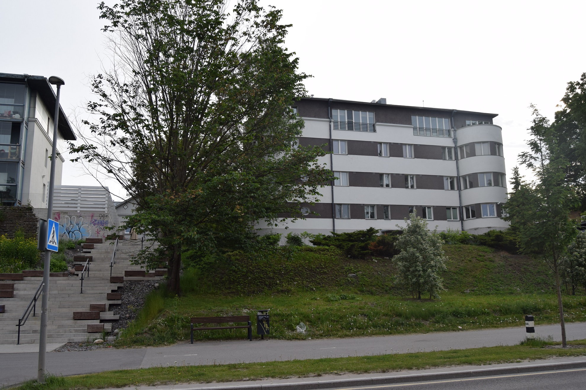 Na obrzeżach dzielnicy ulokowano kilka charakterystycznych budynków o ciekawej architekturze i atrakcyjnych programach funkcjonalnych. Takimi są: elektrownia z 1913 roku, zamieniona na centrum nauki (odpowiednik warszawskiego Kopernika); imponująca rozmiarami żelbetowa baza hydroplanów z I Wojny Światowej, będąca obecnie jedną z dwóch siedzib Muzeum Morskiego i skrywająca m. in. dumę przedwojennej Marynarki Wojennej Estonii – okręt podwodny „Lembit”; czy fort Kalaranna, który dłużej, niż celom wojskowym, służył służbom więziennym. Obecnie jest tam martyrologiczne muzeum, ale sądząc z wizualizacji umieszczonych przed gmachem, planuje się dla niego nowe funkcje i świetlaną przyszłość. O ile, oczywiście, znajdą się na to środki. Na mnie największe wrażenie zrobił park dzielnicowy. Jednak nie ze względu na zaplanowanie, czy urozmaicenie zieleni, ale na jego historię, a konkretnie sposób, w który się do niej odnosi i o niej opowiada. Otóż teren parku, to dawny cmentarz zlikwidowany w sposób dosyć brutalny za czasów ZSRR. Już w niepodległej Estonii planowano głęboką modernizację parku, ale okazało się, że sąsiedzi zamiast popierać ten pomysł życzyli sobie zmian daleko mniejszych, za to podkreślających dawną funkcję. Dlatego przy wejściach do parku znajdują się tablice informacyjne, nie z regulaminem korzystania, ale z historią tego miejsca. Część alejek nawiązuje przebiegiem do swych cmentarnych poprzedniczek, w jednym z kwartałów parku wyeksponowano kilka metalowych krzyży oraz odnowiono historyczną bramę cmentarną. Takie podejście jest możliwe, gdy likwidowanie cmentarzy nie odbywa się – jak często w naszym kraju – w ramach wymierzania sprawiedliwości dziejowej, bądź ucieczki od historii.