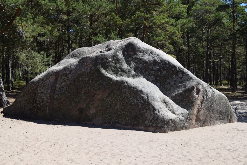 Tego czasu zabrakło nam, by dotrzeć do drugiego cmentarzyka na wyspie, skrywającego szczątki ofiar zbombarowania przez Luftwaffe w 1941 roku estońskiego okrętu Estirand. Oprócz marynarzy, spoczywają tam poborowi przeznaczeni do wcielenia do Armii Czerwonej, po dopłynięciu – wraz z konwojem innych jednostek – do Kronsztadu. Do czego jednak nie doszło. Estoński kapitan osadził uszkodzony statek na brzegach Prangli, a 2600 pozostałych przy życiu poborowych, obezwładniwszy radziecką eskortę, uszło w lasy, gdzie doczekali nadejścia czasowo zwycięskiego Wehrmachtu. Dotarliśmy jednak do Czerwonego Kamienia, największego na wyspie głazu narzutowego. Ten „podarunek z Finlandii” mierzy 11,1 na 8,8 metra, a jego czubek wznosi się 3,3 metra ponad powierzchnię gruntu. Ta część wyspy obfituje w porośnięte sosnami wydmy. Wśród nich znaleźć można niespodziewane artefakty: a to silnik z rozbitego samolotu, a to tzw. pompę gazową, gdzie – sądząc po obecności patelni – można podsmażać zebrane w lesie grzyby, czy zrobić jajecznicę, a to znowu – porzucone ciężarówki sowieckiej produkcji. Powróciwszy do portu, zdążyliśmy – przed odbiciem promu od brzegów wysepki – skosztować do kawy kanapki po estońsku: śledź, plasterek jajka, krążek cebuli i gałązka koperku, na czarnym chlebie. Połowa czerwca to chyba jeszcze nie sezon wakacyjny, bo każdy z trzech kempingów na wyspie wyglądał na niezasiedlony.