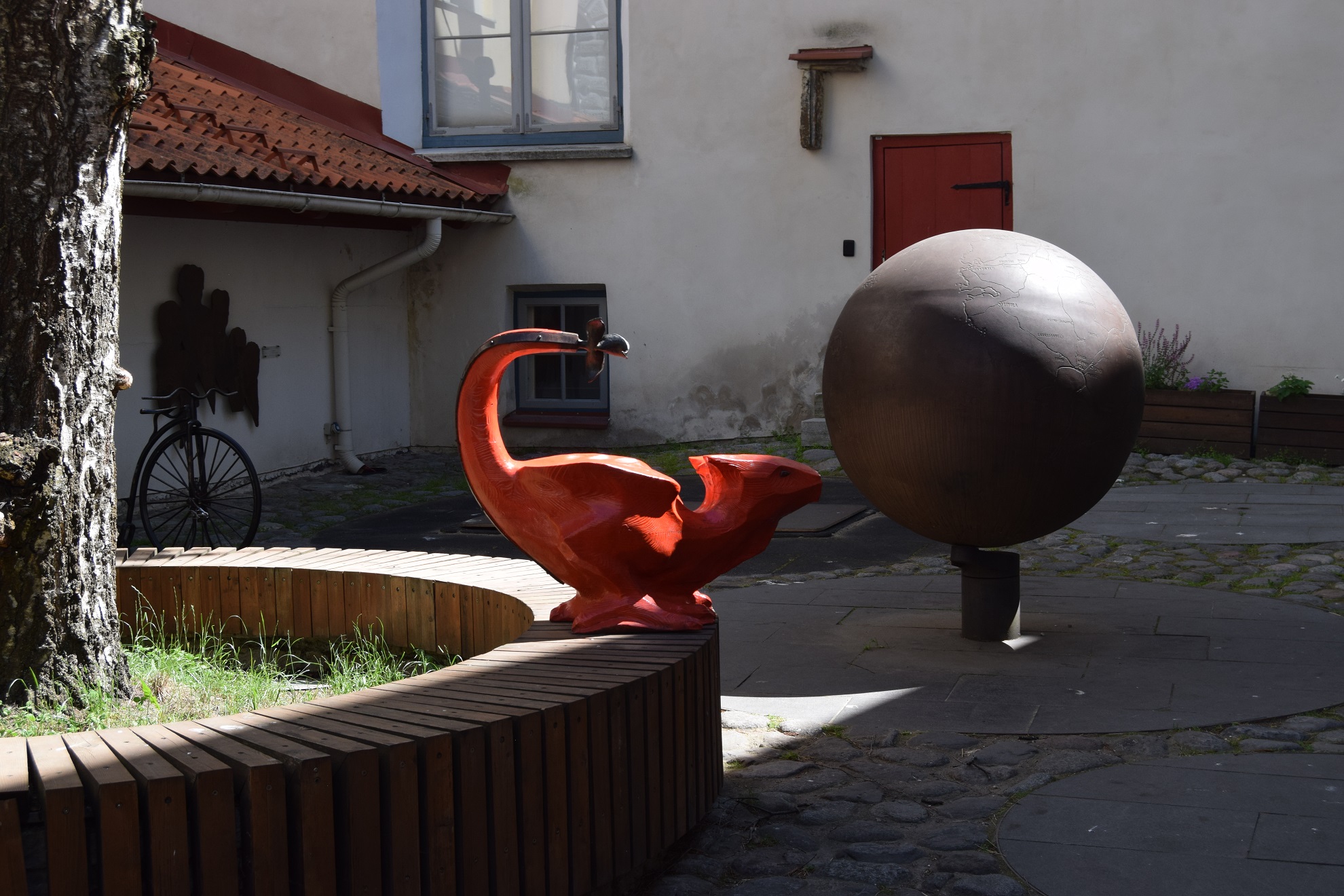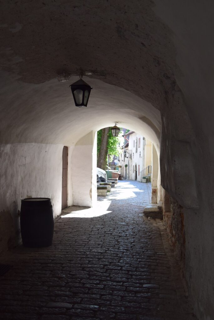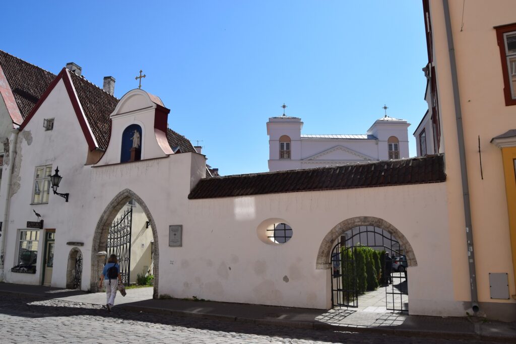 Tallinn jest bez wątpienia podstawowym celem turystycznym w Estonii. Nic dziwnego, że spotyka się tu wielu cudzoziemców i słyszy mnogość języków. Równocześnie obszar Starego Miasta jest na tyle duży, że bez trudu można unikać tłoku i cieszyć się samodzielnym poznawaniem jego uroków. Dla mnie takim doświadczeniem było odwiedzenie pozostałości klasztoru dominikanów. Jego kościół pod wezwaniem św. Katarzyny, liczący ponad 65 m długości, był w momencie ukończenia najdłuższym budynkiem w mieście. Mnisi zostali zmuszeni do opuszczenia kompleksu z nastaniem reformacji. Później klasztor i kościół były trawione przez pożary i wykorzystywane na doraźne cele biznesowe, z wolna popadając w zapomnienie. W latach 40-tych XIX wieku na miejsce klasztornego refektarza postawiono kościół katolicki, pełniący obecnie funkcje katedry. Pozostała część była wykorzystywana na cele mieszkalne oraz sklepowo-magazynowe. Przez wieki dojście do nich stanowiła ścieżka zwana dzisiaj Pasażem Katarzyny. Jedną jego pierzeję stanowi zachowana ściana budynku klasztornego spięta kilkoma ceglanymi łukami z niewielkimi budynkami zarządzanymi obecnie przez Gildię Katarzyny, czyli swoistą spółdzielnię rzemieślniczą stworzoną przez 14 pań wytwarzających i sprzedających swoje rękodzieło w ośmiu pracowniach. Choć na swojej stronie www gildia chwali się popularnością zarówno wśród mieszkańców, jak i turystów, byliśmy tam jednymi gośćmi. Nieśpiesznie mogliśmy więc napawać się detalami gotyckiego portalu oraz kolekcją kamieni nagrobnych na murze budynku klasztornego. Spokój panował taki, że słychać było świst jerzyków przemykających nad dachami domów na tle bezchmurnego nieba i bzyczenie pszczół wokół dorodnej lipy, ocieniającej dziedziniec.