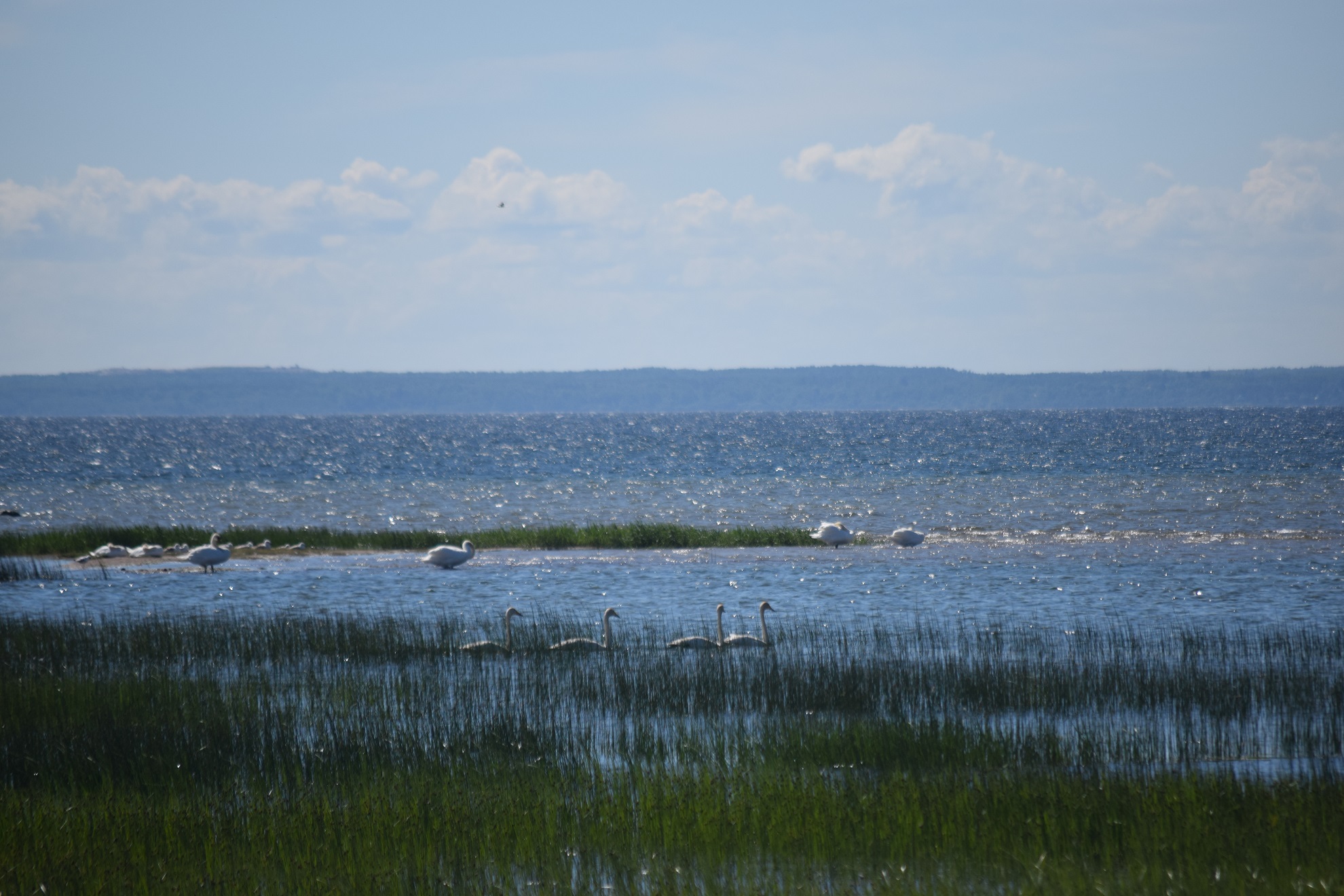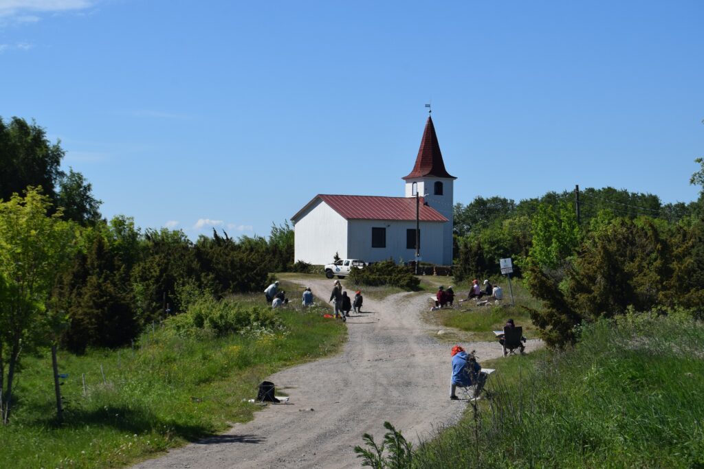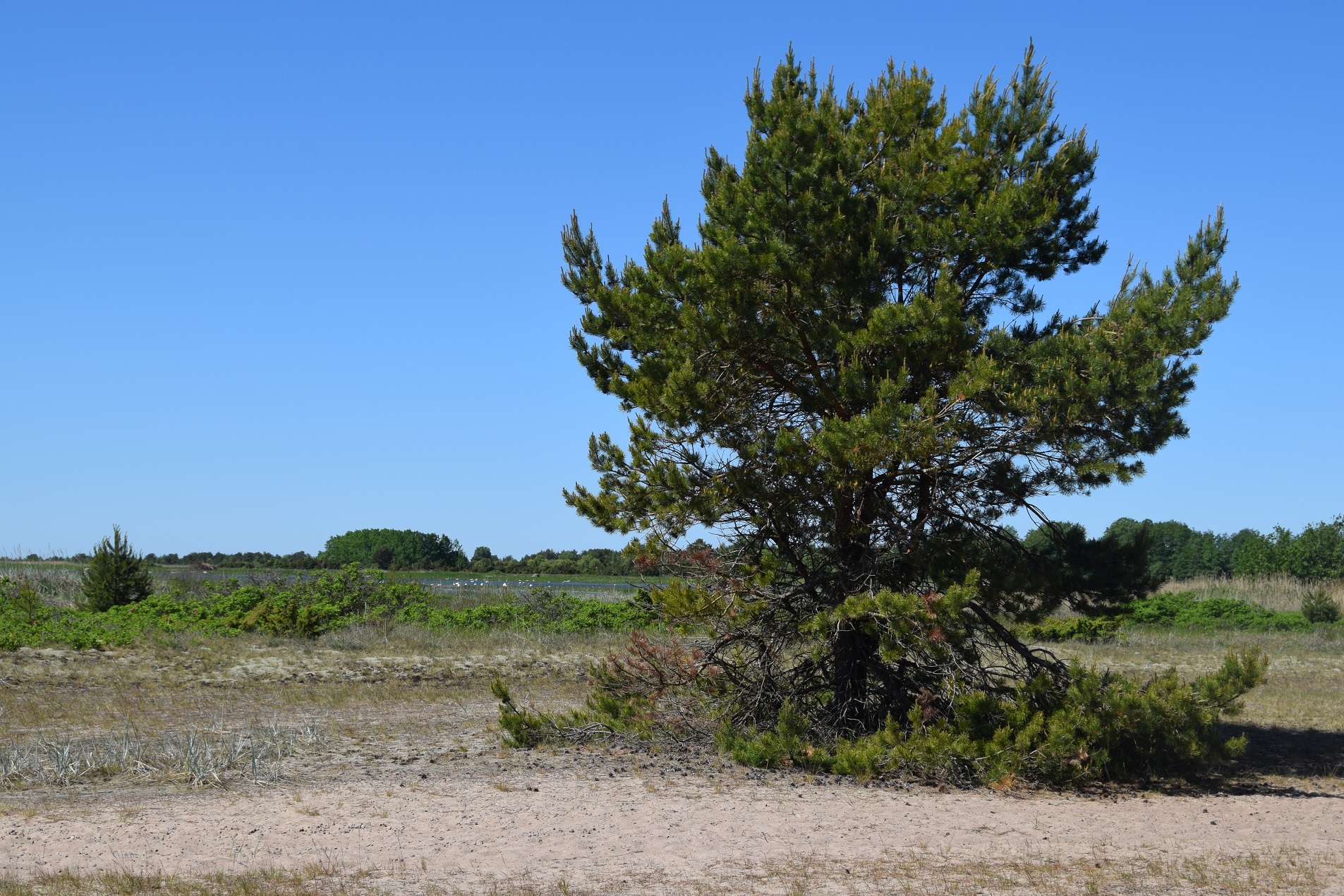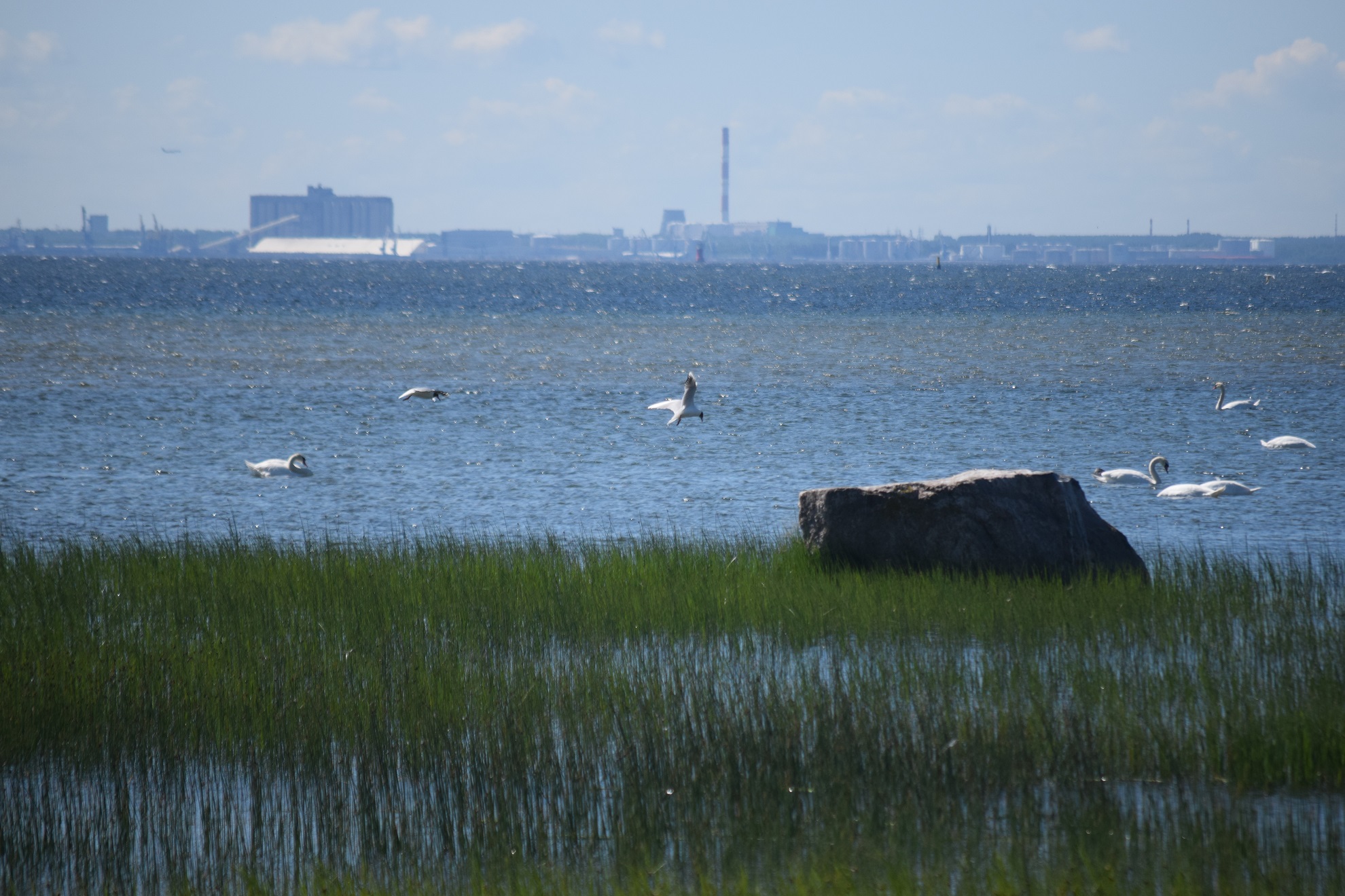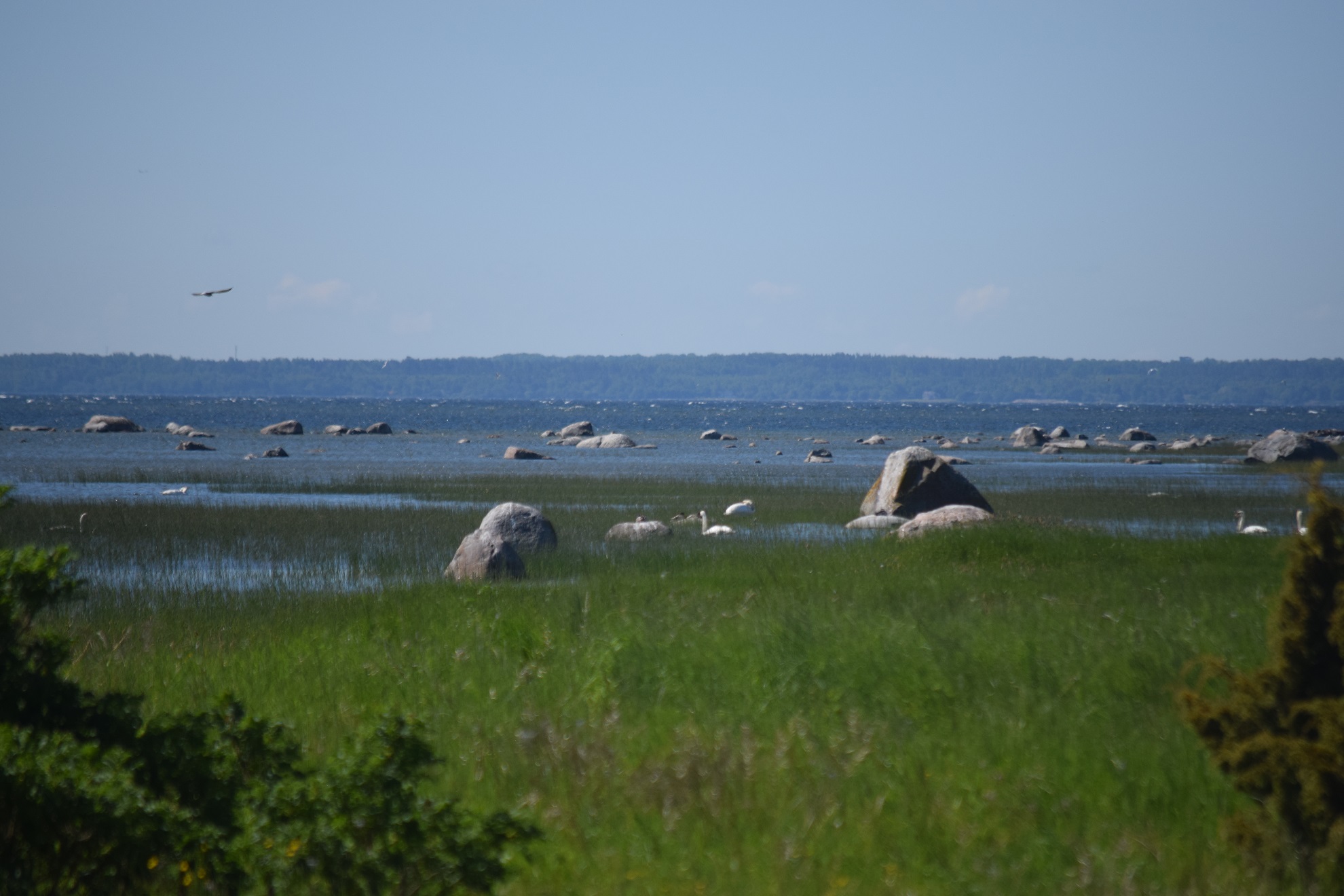 Prangli to miniatura Skandynawii nieco zaśmiecona pozostałościami sowieckiej mysli techniczno-wojskowej. Mikroskopijny port w Kelnas pomieścił nasz prom, jakąś motorówkę i ze dwa jachty. Na brzegu odpoczywały rozeschnięte kadłuby starych kutrów rybackich. Uczestnicy wypoczynku zorganizownego załadowali się na odkrytą przyczepkę ciągniętą przez pokaźnych rozmiarów terenówkę. Pozostali pasażerowie dyskretnie się oddalili, zostawiając naszej parze przyjemność samotnego penetrowania wysepki. Jedyna asfaltowa droga przecinająca Prangli z północy ku południowi narzucała kierunek wędrówki. Chociaż nie ma tu terenów podmokłych, droga ku mojemu zdumieniu wysadzana była olchami. Pomiędzy nimi, tu i ówdzie, umościły się różnej wielkości głazy narzutowe. Domy, zbudowane z drewna, pomalowane były w wyraziste barwy. Z kamienia wzniesiono tylko miejscowy kościółek oraz niektóre zabudowania gospodarcze. Najdostatniej wyglądające oraz najnowsze domy pełniły zapewne funkcje wyłącznie letniskowe. W obejściach nie widać było nadmiernego ruchu. Tylko przy położonej na uboczu świątyni grupa uczniów odbywała lekcję szkicowania z natury. Odcinek drogi wyłożony asfaltem wkrótce się skończył. Coraz węższą ścieżką wśród karłowatych sosen dotarliśmy na upstrzoną głazami łąkę, stopniowo obniżająca się ku Bałtykowi. Choć na pełnym morzu wiatr odrywał strzępy piany ze szczytu fal, na skraju lasu było całkiem zacisznie. W zatoczkach między szuwarami żerowały i odpoczywały ptaki. Było ich na pewno więcej, niż ludzkich mieszkańców Prangli. Spędziliśmy parę kwadransów wygrzewając się i wypatrując skrzydlatych rarytasów.
