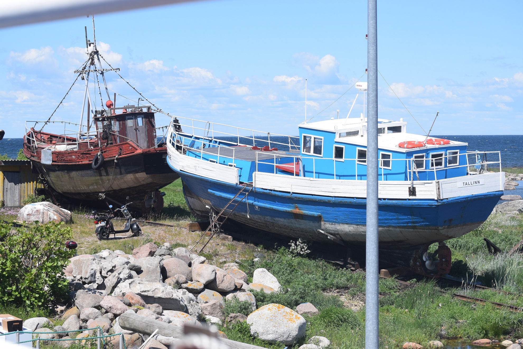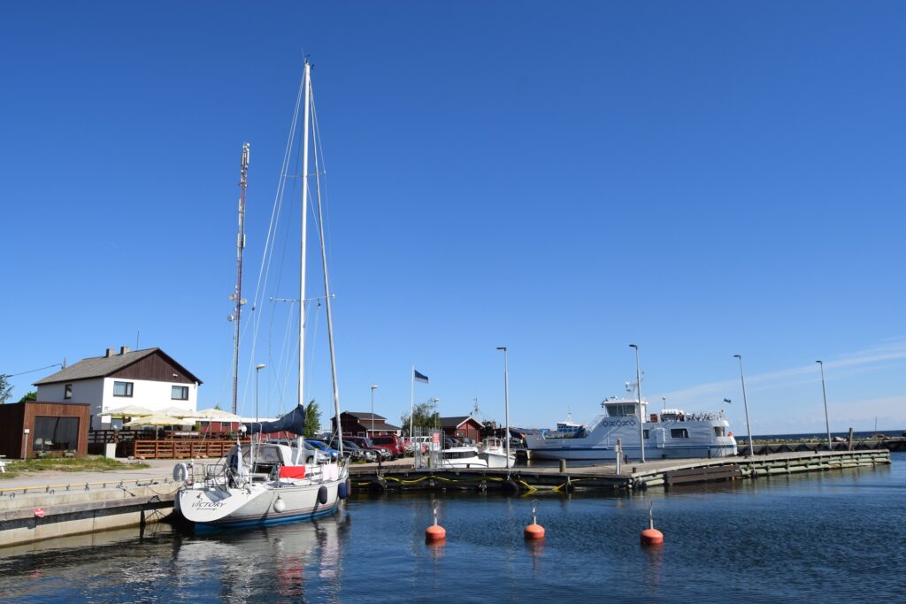 Prom był miniaturą swoich adriatyckich braci. Było na nim nawet miejsce na 2 samochody, ale zamiast nich podróżował kontener, w którym z wyspy wywozi się worki ze śmieciami. Pod pokładem panował spory tłok. Tallińskie biura podróży organizują całodniowe wycieczki na wyspę umożliwiając nie tylko dokładne jej zwiedzenie, ale też degustację przysmaków kuchni wyspiarskiej oraz wyparzanie ciała w saunie. Po wypłynięciu poza falochron statkiem wstrząsnęły krótkie bałtyckie fale. Zmierzając do bufetu pełniącego też funkcje kasy omal nie zderzyłem się z pozieleniałym na twarzy młodzieńcem śpieszącym na zawietrzną. Starszawy wilk morski za ladą komunikował się w podstawowym angielskim z silnym estońskim akcentem. Chętnie przeszedł na zasugerowany rosyjski, lecz mimo bogatszego słownictwa, wymowę miał nadal trudną do zrozumienia. Wyjaśniwszy sobie, że nie jesteśmy Rosjanami, spędziliśmy następne parę minut odświeżając znajomość rosyjskich przekleństw, które służyły opisaniu naszego stosunku do polityki i osoby Putina. W ten sposób zapomnieliśmy o dokuczliwym kołysaniu.