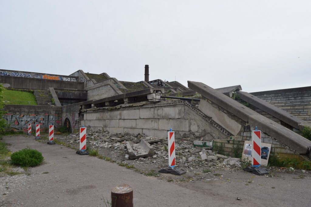 Olimpijskie centrum żeglarstwa w Pirycie płynnie dostosowało się do zmian systemowych i gospodarczych w niepodległej Estonii. Nie da się tego powiedzieć o nadmorskiej hali widowiskowo-sportowej, która także została oddana do użytku w olimpijskim roku 1980. Ten obsypany nagrodami architektonicznymi brutalistyczny kompleks budzi skojarzenia z umocnieniami Wału Atlantyckiego, wzniesionymi przez Niemców po podboju Francji dla obrony przed aliancką inwazją. Coś mogło być na rzeczy, gdyż architekci zakładali, że ich dzieło wejdzie w twórczy dyskurs z położonym po drugiej stronie basenu portowego XIX-wiecznym fortem Kalaranna. Dla mieszkańców miasta, obiekt pod patronatem Lenina, dawał możliwość dotarcia na sam brzeg Zatoki Fińskiej w dzielnicy portowej, która od 1945 była oddzieloną od reszty miasta murem, strefą zamkniętą. Po pozbyciu się z nazwy odniesień do ojca wszechświatowego proletariatu, hala funkcjonowała zgodnie z przeznaczeniem do roku 2010. Jak większość obiektów z tego okresu, była niechlujnie wykonana, z użyciem kiepskiej jakości materiałów, nie spełniała nowych, rygorystycznych standardów bezpieczeństwa i – ogólnie – wyglądała coraz bardziej ponuro. Została więc zamknięta i rozpoczęto poszukiwania inwestora, który jednak musiał zachować jej pierwotne funkcje. Ponieważ nie znaleziono chętnych do utopienia swojego kapitału w tej górze betonu, rewitalizacji miało podjąć się miasto, przy hojnym wsparciu rządu estońskiego. Publiczny inwestor nie wywiązał się jednak ze swoich obietnic i gargantuiczny pomnik sowieckiej architektury rozpiera się, niczym „Gwiazda Śmierci” na straży tallińskiego portu. Choć nie jest to całkiem legalne, warto się wdrapać na jego tarasy dla oryginalnej perspektywy, jaką daje na wybrzeże i Stare Miasto.