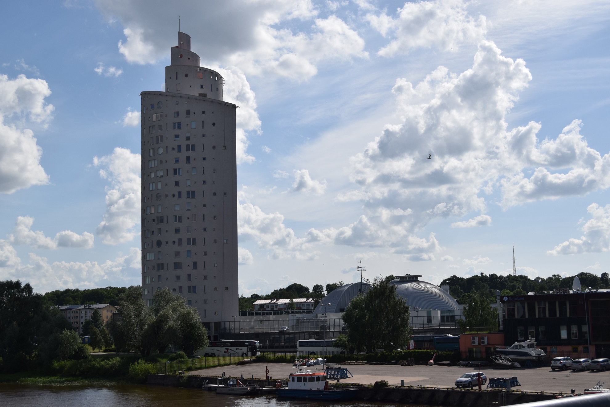 Rzadko wspominam na tych stronach o hotelach, ale tu uczynię wyjątek. Nie po to jednak, by rekomendować usługi naszego hotelu, lecz by opisać dziwny obyczaj negocjowania warunków pobytu. Otóż zależało nam na pokoju z widokiem na basen jachtowy, co zakomunikowałem robiąc rezerwację. W odpowiedzi dostałem informację, że będę musiał zapłacić dodatkowo 10 Euro za noc. Przystałem na te warunki, by po przyjeździe dowiedzieć się, że taki pokój nie jest dla nas dostępny. Może wzruszyłbym ramionami na tę drobnostkę, ale perspektywa z naszego okna brutalnie zweryfikowała twierdzenie, że widok z pokojów jest albo na morze, albo na Stare Miasto. Otóż my za oknami mieliśmy 300 metrów dzikiego parkingu (tzn. płatnego, ale z postojem na ubitej ziemi), potem wielki kompleks biurowo-handlowy zwany Kwartałem Rotermanna, za którym rzeczywiście znajduje się, skutecznie zasłonięte, Stare Miasto. Basen jachtowy mogliśmy do woli podziwiać przy śniadaniu lub sponad drinka w hotelowym barze, ale pewien niesmak z poziomu usługi i informacji hotelowej jednak w nas pozostał.