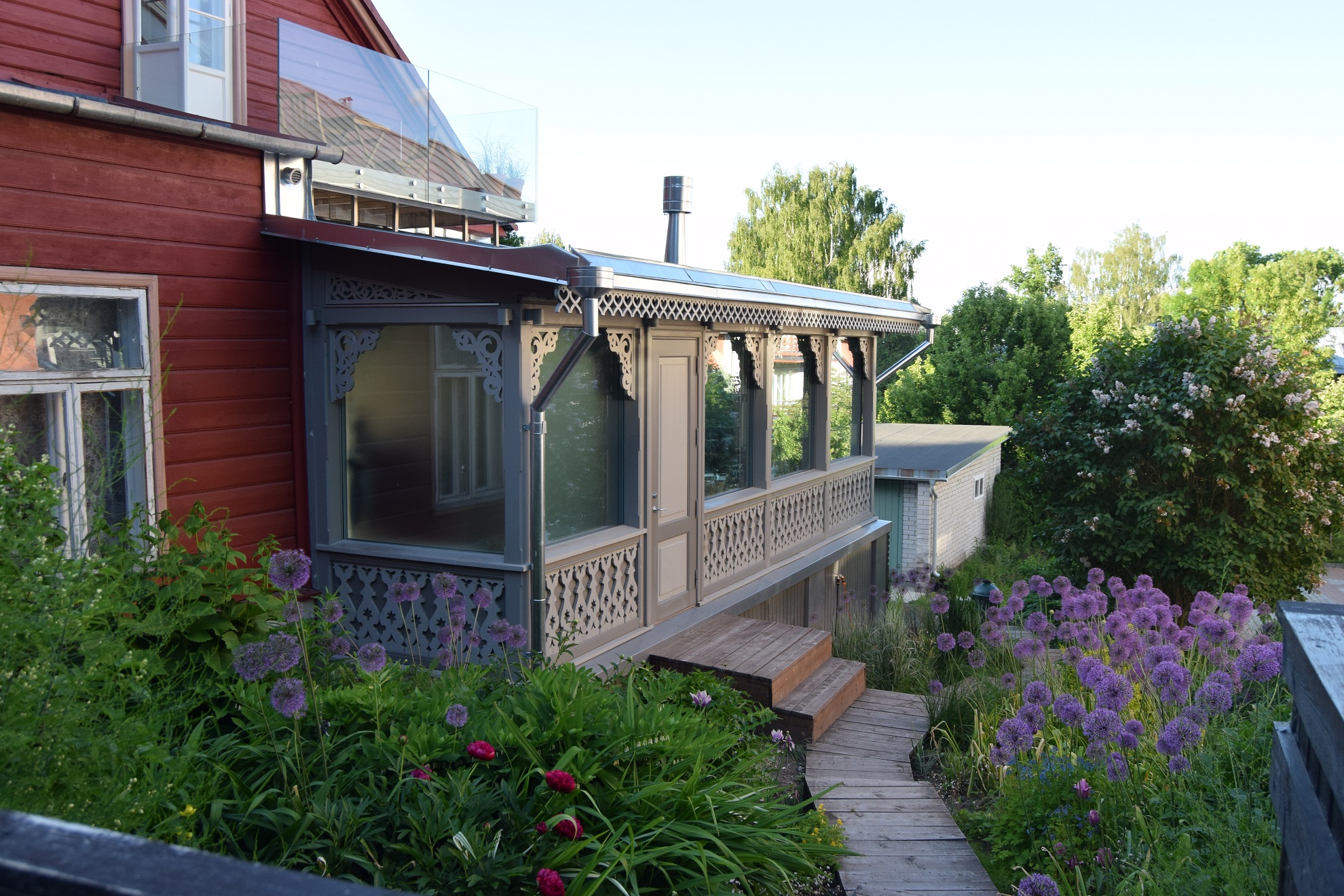 Wróciwszy do naszego lokum, na piętrze prezydenckiego niegdyś domu, zastałem drzwi zamknięte na klucz. Stukanie, ba, nawet energiczne dobijanie się, nie pomagało. Podziomek nie otwierała drzwi! Podszedłem pod okna naszego pokoju. Jako że ostatnia noc była ciepła, pozostawały otwarte. Czasy były przedkomórkowe (konkretnie rok 1991) więc, aby zostać usłyszanym, trzeba było krzyczeć. Zamiast Podziomka zareagowała pracownica biura na parterze budynku. Po stosownych wyjaśnieniach zorganizowano ekipę ratunkową z drabiną. Tą drogą dostałem się do wnętrza i zastałem Podziomka w kąpieli. Choć w odmienny sposób, ona też napawała się atmosferą tego poranka. Poza wspomnieniami, z ogrodu botanicznego w Tallinnie przywieźliśmy też sadzonkę róży, która do dzisiaj zdobi nasz ogród. Sądząc po barwie i kształcie, może jest to nawet odmiana nazwana „Staatspräsident Päts”.