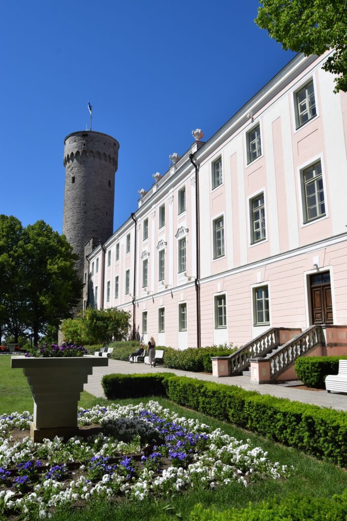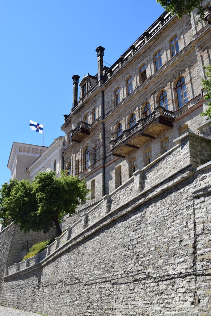 Swoje dołożyła natura. Mimo przybrzeżnego położenia, nad Dolnym Miastem góruje ponad 30 metrowe wapienne Wzgórze Katedralne (est. Toompea). Według estońskiego eposu, nie jest to wzgórze powstałe siłami natury, lecz kurhan kryjący szczątki praojca Finów i Estończyków – Kaleva, usypany przez jego pogrążoną w żałobie małżonkę – Lindę. Mniejsza o pochodzenie, ważniejsze były zalety obronne powodujące, że kto umościł się na tym wzgórzu, ten rządził południowym wybrzeżem Zatoki Fińskiej. Tak więc władali stąd: przodkowie współczesnych Estończyków z plemienia Estów; Duńczycy, którym w tym właśnie miejscu w 1219 roku Bóg zesłał ich narodową flagę (Dannebrog); zakon Kawalerów Mieczowych/Krzyżacki; Szwedzi; rosyjscy gubernatorzy; a w końcu, z 50 letnią przerwą władzy radzieckiej, estońscy parlamentarzyści i członkowie rządu. Jako że każda władza szukała swego uzasadnienia oraz wsparcia u Boga, na wzgórzu znajdziemy, tak luterańską, jak i prawosławną katedrę, choć ta druga powstała dopiero w ramach zainicjowanego przez cara Aleksandra III programu znakowania terytorium jego imperium kopułami cerkwi. Z turystycznego punktu widzenia, prócz licznych zabytków, Toompea to wspaniały punkt widokowy. Dalekie pejzaże podziwiać można, zarówno z murów obronnych, jak i z wysokiej na 45 metrów baszty Długi Herman (est. Pikk Hermann). Jest ona znana z tego, że każdego ranka na maszt wieńczący basztę wciągana jest flaga narodowa, by wieczorem odbył się ceremoniał jej opuszczenia.
