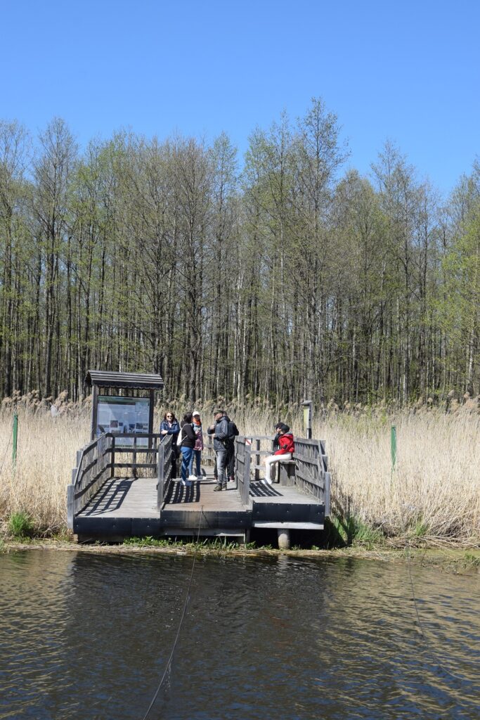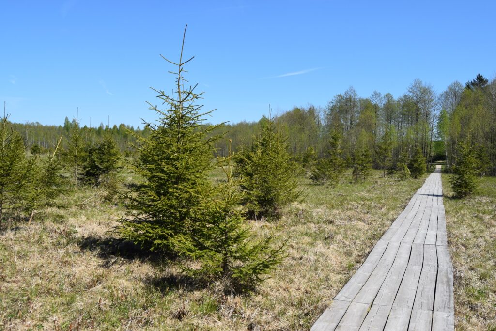 Kotlina Górnej Biebrzy, choć wchodzi w skład Parku Narodowego, przez długi czas uważana była za pośledniejszą turystycznie, niż Basen Środkowy i Dolny Kotliny. Fakt, dolina jest tu węższa, kompleksy leśne, ale i torfowiska, nie tak imponujące, jak w pozostałych częściach Parku. Ostatnimi laty Park Narodowy zrealizował tu jednak projekt rozwoju infrastruktury turystycznej, dzięki któremu można dotrzeć przez torfowiska i olsy aż do Biebrzy, a nawet pokonać rzekę za pomocą przeciąganej łańcuchami platformy promowej. I trzeba przyznać, że takie inwestycje przyciągnęły turystów, zwłaszcza weekendowych. My wybraliśmy się na trasę wiodącą z Szuszałowa przez Jałowo do Nowego Lipska na północnym skraju doliny. Specyfikę tej części kotliny stanowią polodowcowe wzniesienia zwane wyspami, otoczone przez położone niżej tereny bagienne. Szuszałowo położone jest na jednej z takich wysp, podczas gdy Jałowo – na drugiej. Ścieżka jest więc bardzo urozmaicona. Z początku wiedzie dwiema odnogami przez bagna między wyspami. Tu i ówdzie widok urozmaicają kępy brzezin i pojedyncze sosny. Potem wspina się na wyspę Jałowską, gdzie drogami po miedzach, zmieniając co rusz kierunek, dociera do krawędzi doliny Biebrzy. Porastające ją świerki tworzą wyjątkowo malownicze obramowanie doliny. W to miejsce docierają liczni zmotoryzowani korzystając z obfitości bezpłatnych miejsc parkingowych. Również tam można spotkać strażników parku, którzy, nie nazbyt skrupulatnie, sprawdzają potwierdzenie wniesienia opłaty wejściowej do Parku. Po, co ważne dla rodziców prowadzących wózek, szerszej już kładce, wkrótce dociera się do rzeki. Kilku silnych panów na pewno podejmie się ciągnięcia łańcucha, podczas gdy my będziemy oddawać się fotograficznemu hobby. Pokonawszy kolejny pas podmokłego olsu dociera się do wieży widokowej na skraju zmeliorowanych łąk przed Nowym Lipskiem. Trasa obfituje w możliwości ciekawych obserwacji ornitologicznych i florystycznych. Na przełomie kwietnia i maja najbardziej zachwycają kępy kwitnących kaczeńców, a z ptaków – błotniaki łąkowe, które w dolinie Biebrzy, w przeciwieństwie do większości Polski, są liczniejsze, niż ich więksi, stawowi krewniacy.