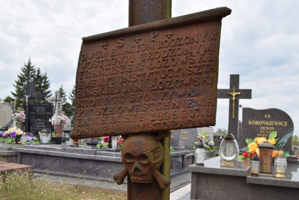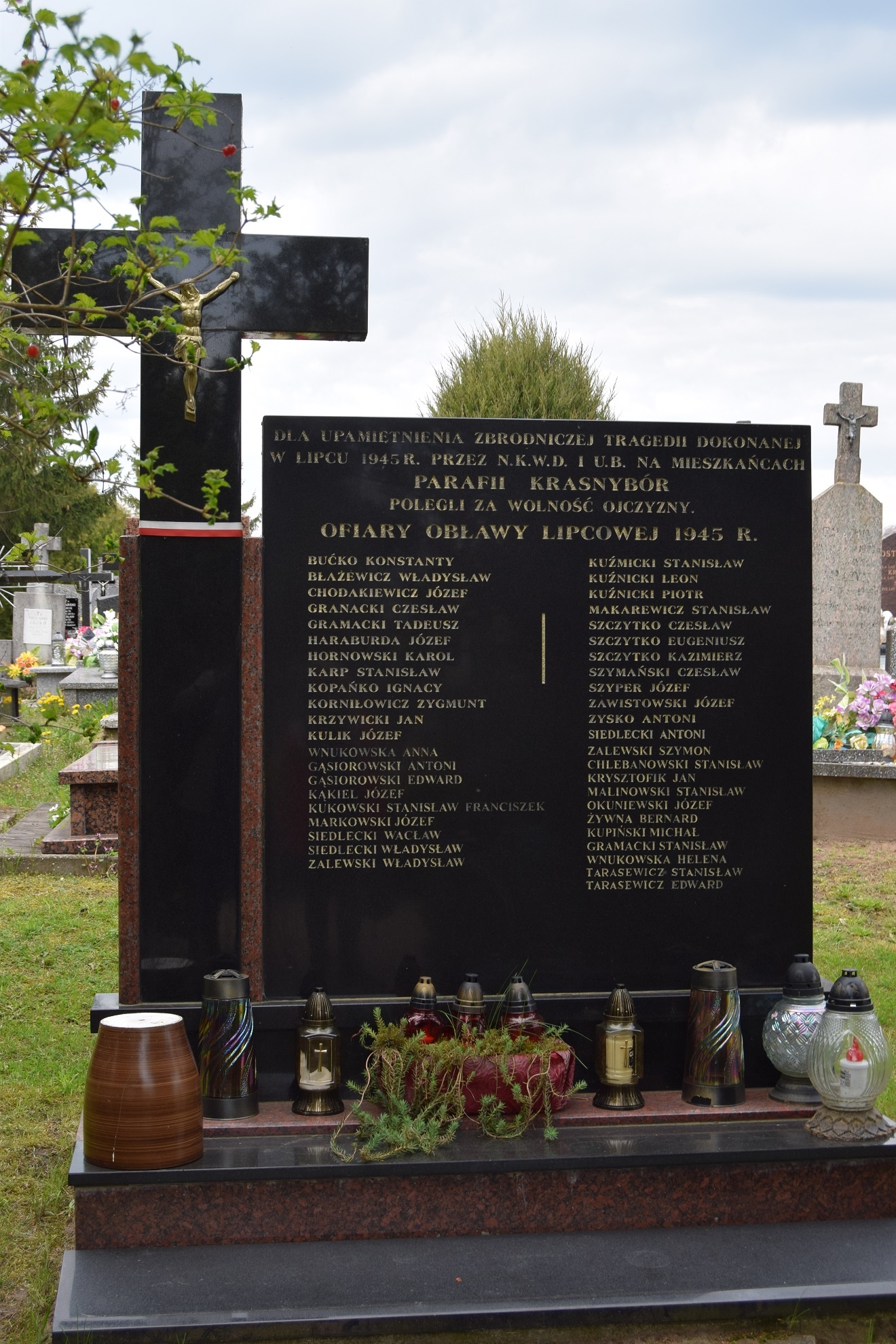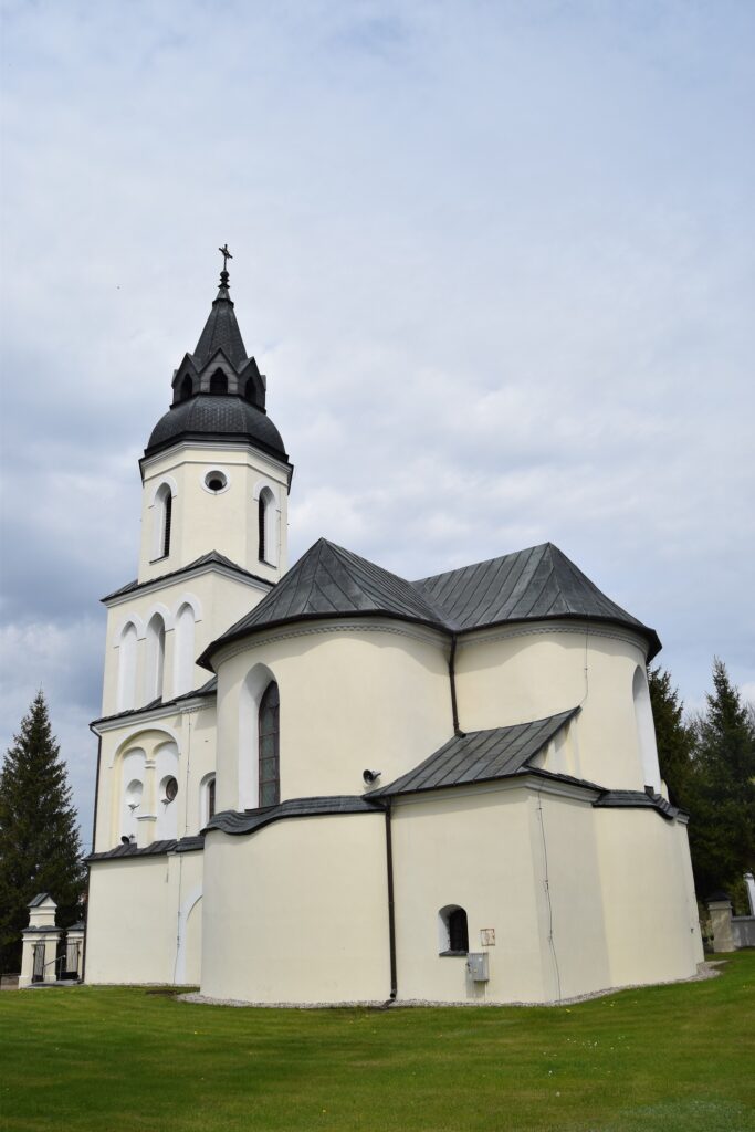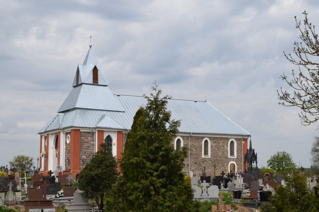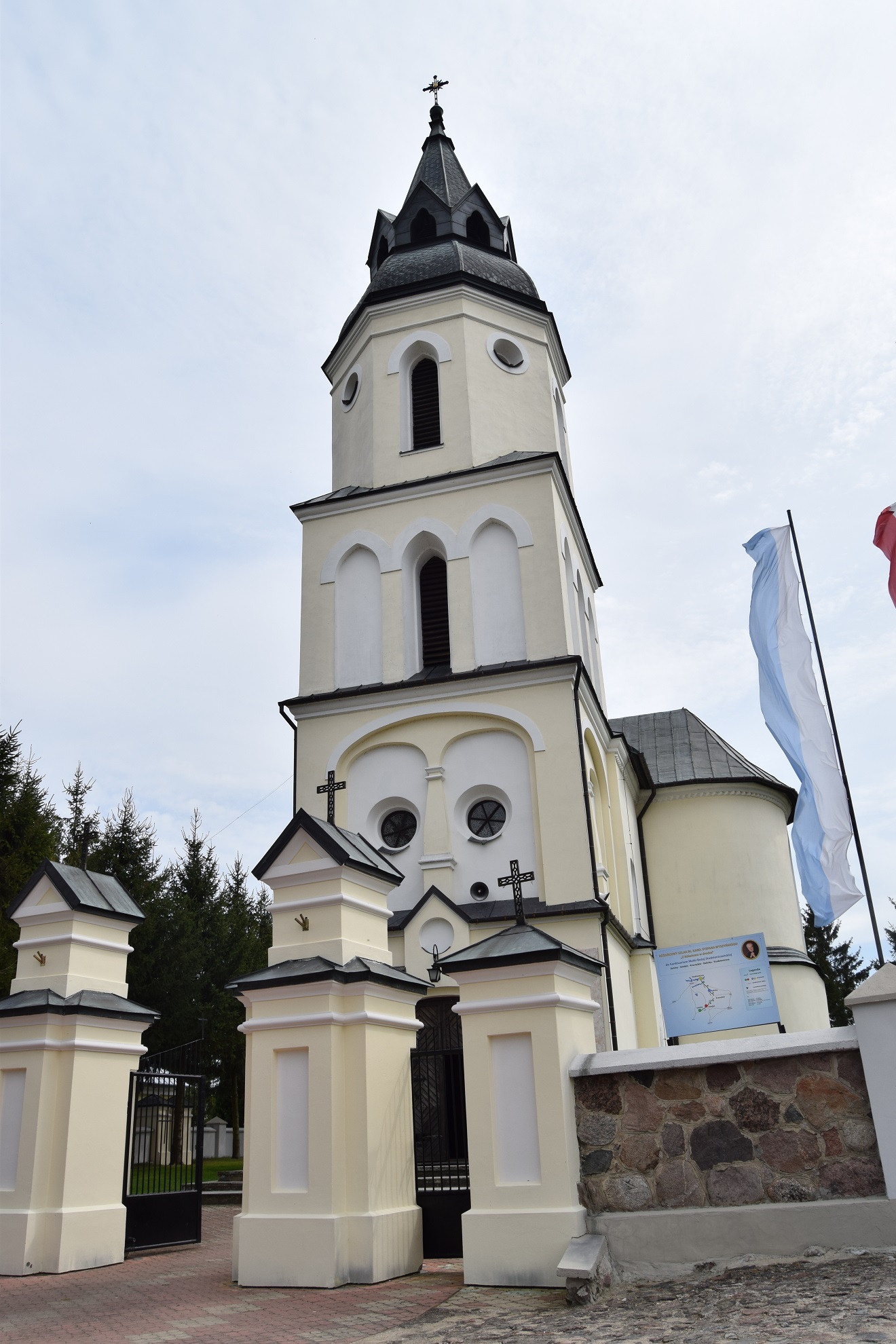 Pleban krasnoborski urzędował pierwotnie w kościółku św. Rocha na cmentarzu i dopiero po kasacie zakonu przeniósł się do godniejszej siedziby po drugiej stronie wiejskiej drogi. Obecny, powstały w 1871 roku kościół wyróżnia się wyglądem – jego ściany licowane są kamieniem – oraz dobudowaną przed trzema dekadami, pokrytą blachą, wieżą w kształcie graniastosłupa. Do tej świątyni wyjątkowo się nie dostaliśmy, ale za to spędziliśmy więcej czasu na cmentarzu. Ponieważ jest on położony na krawędzi doliny Lebiedzianki, dopływu Biebrzy, roztaczają się z niego dalekie widoki. Wśród nagrobków wyróżniają się te, zwieńczone krzyżami odlanymi w pobliskiej hucie sztabińskiej. Znajdziemy tu też pomniki ku czci ofiar obławy augustowskiej i powstańców styczniowych, ale i absolutny rarytas – grób krasnoborzanina, który stracił życie jako żołnierz amerykański na froncie zachodnim I Wojny Światowej.
