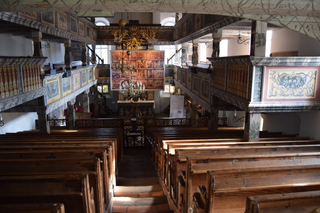 Położony na północnej krawędzi doliny Biebrzy Krasnybór, choć liczy tylko 165 mieszkańców, może pochwalić się dwoma zabytkowymi kościołami. Jeden z nich, ponad 400 letni kościół pw. Zwiastowania Najświętszej Marii Panny, jest nie tylko najstarszy na całej Suwalszczyźnie, ale i zbudowany w – w zasadzie nieobecnym w tej części Polski – stylu gotycko-renesansowym. Najciekawsze jednak, a odczuwalne najmocniej po wejściu do środka, jest wrażenie cerkiewności jego architektury. Bowiem świątynia postawiona jest na planie krzyża greckiego, z ramionami krótkimi w stosunku do swojej wysokości. Wieża zakłócająca regularność krzyża została dobudowana jako ostatni element układanki. Od strony wejścia nawa otoczona jest korytarzykiem otwierającym się na świątynię dwiema parami zakratowanych okien. To ani chybi miejsce przeznaczone dla kobiet uczestniczących w nabożeństwach, czyli tzw. babiniec. Wrażenie nie jest mylne – pierwszymi gospodarzami, na przełomie XVI i XVII wieku, byli tu uniccy bazylianie. Po zdziesiątkowaniu wiernych tego wyznania przez jakąś zarazę, wyprowadzili się oni do Grodna. Zastąpili ich rzymskokatoliccy bernardyni, którzy też nie zagościli w Krasnymborze na długo, a tych z kolei – dominikanie, którzy podzielili w XIX wieku los swych współbraci z Różanegostoku. Swoją drogą ciekawe, że powodzenie egzystencji wspólnoty zakonnej wcale nie było niegdyś gwarantowane. Oprócz pobożności, trzeba było chyba mieć wiele innych zdolności, o odrobinie szczęścia nie wspominając. Drugą refleksją na bazie historii krasnoborskiej jest pewne zdumienie, że ostatecznie w warunkach rustykalnego pogranicza koroniarsko-litewskiego najlepiej radzili sobie dominikanie, czyli zakon powstały jako wspólnota żebracza, pierwotnie lokująca swoje domy zakonne w miastach i pracująca w środowisku mieszczańskim.