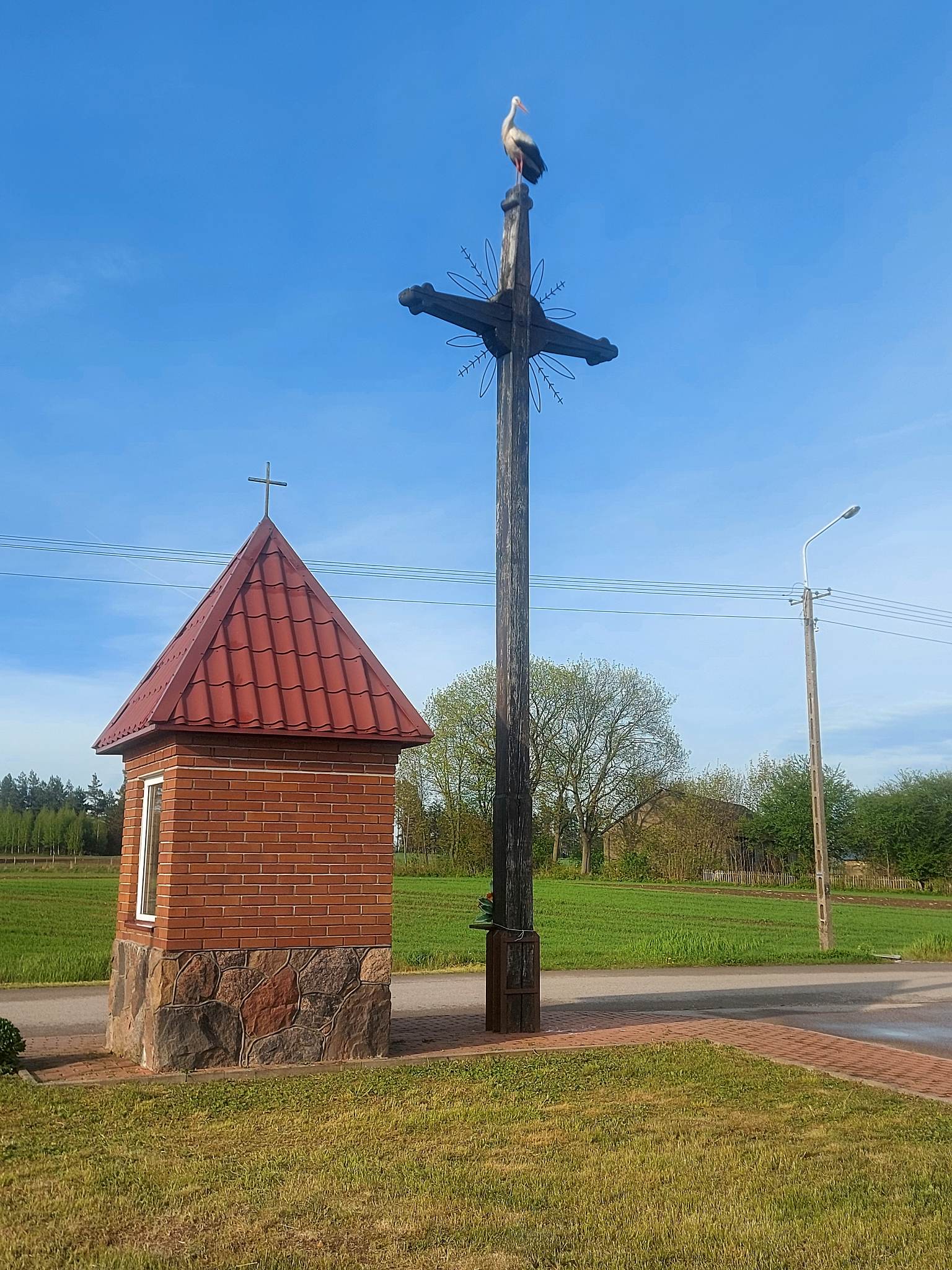 Kapliczka, krzyż i bociany – stały motyw podlaskiego krajobrazu, fot. Katarzyna Janiec