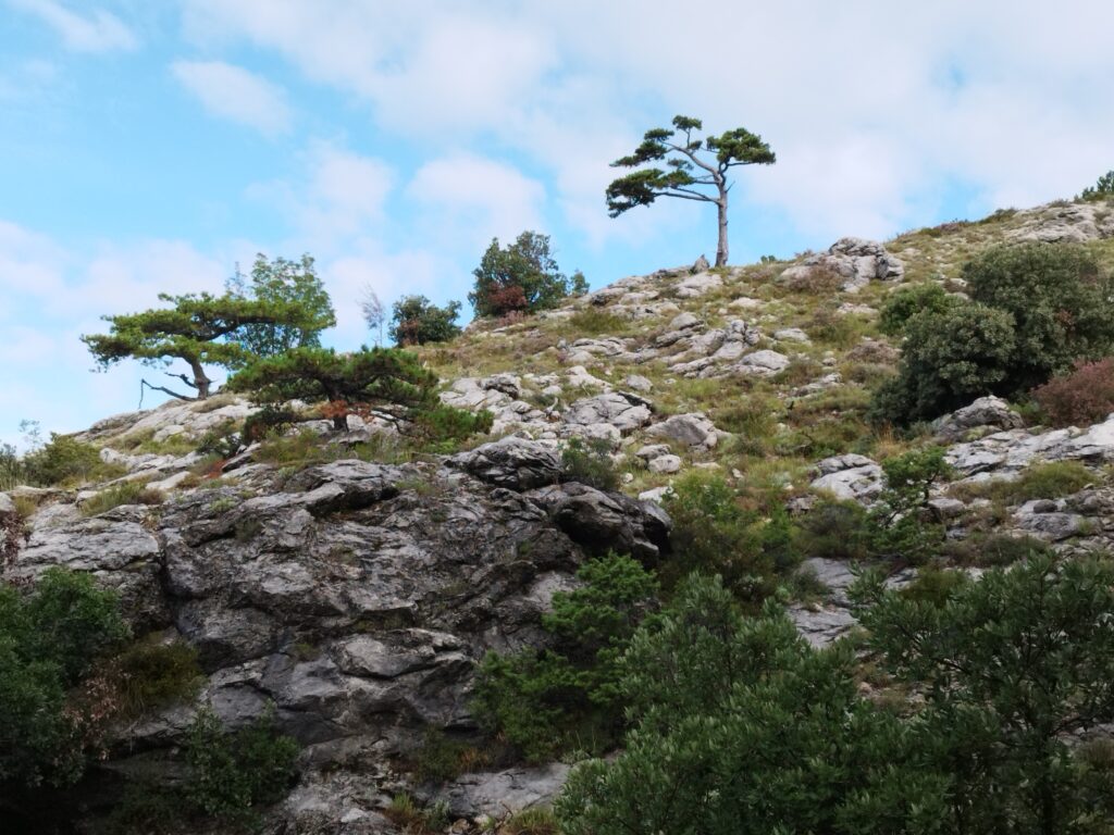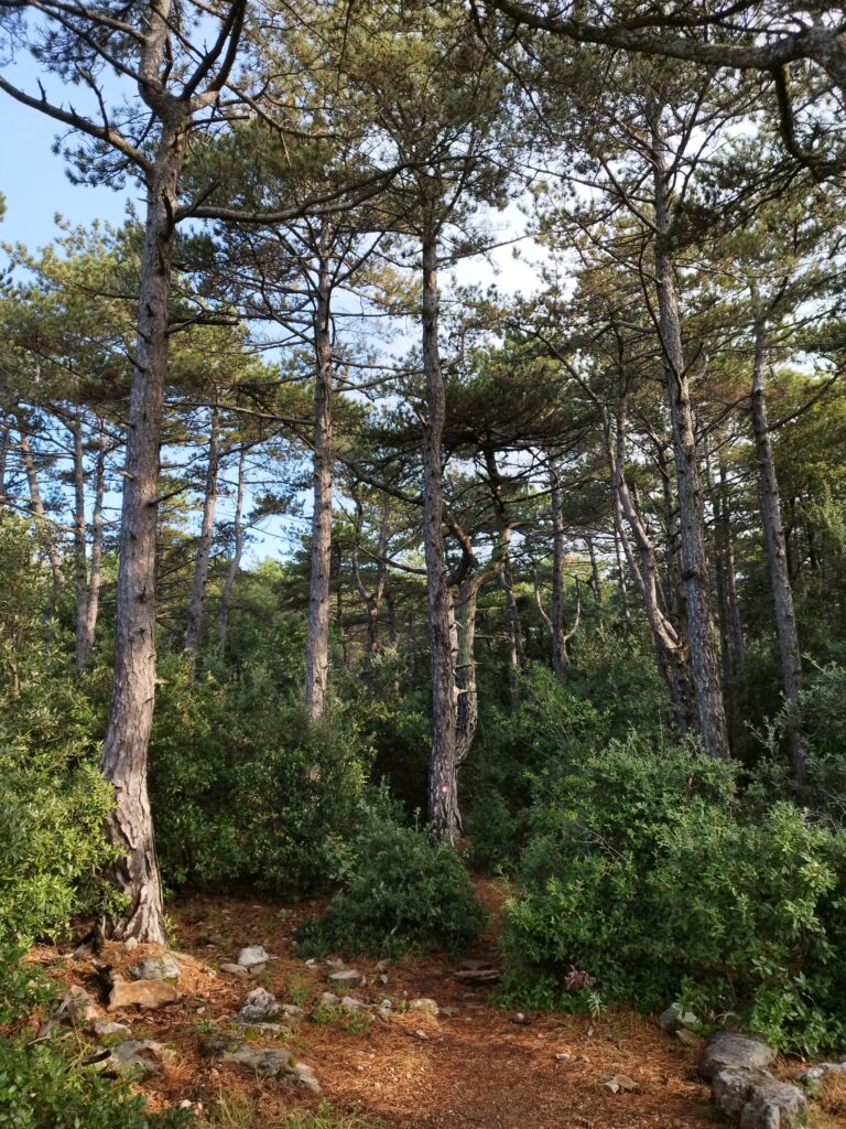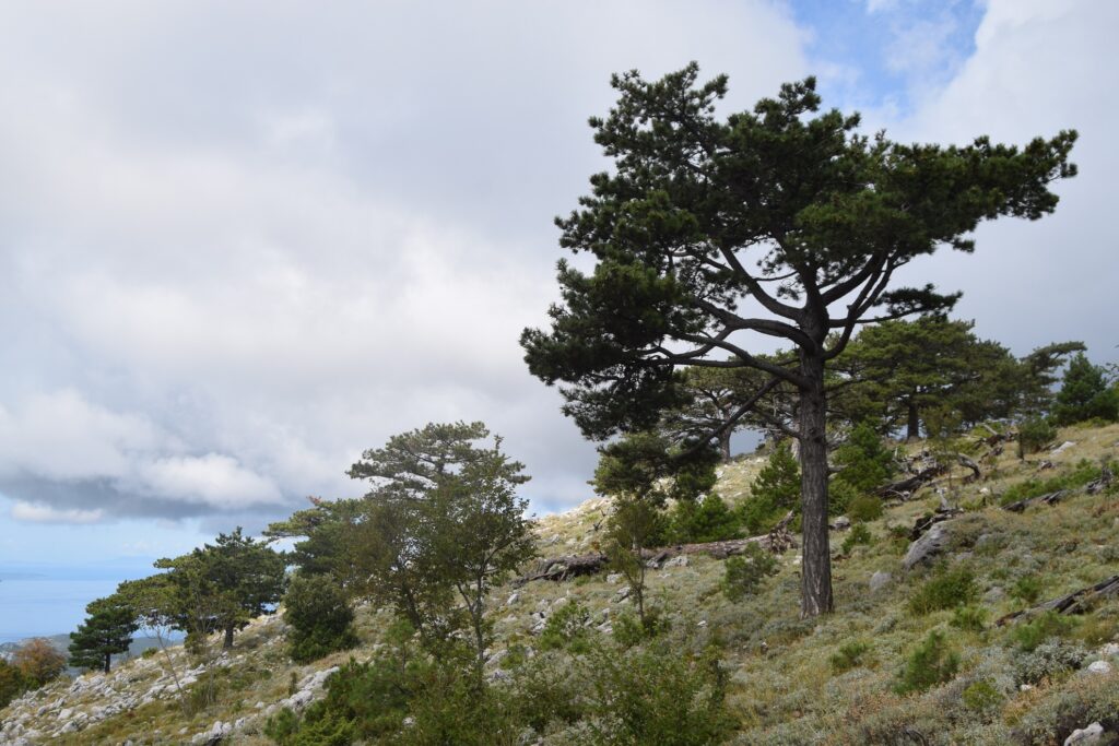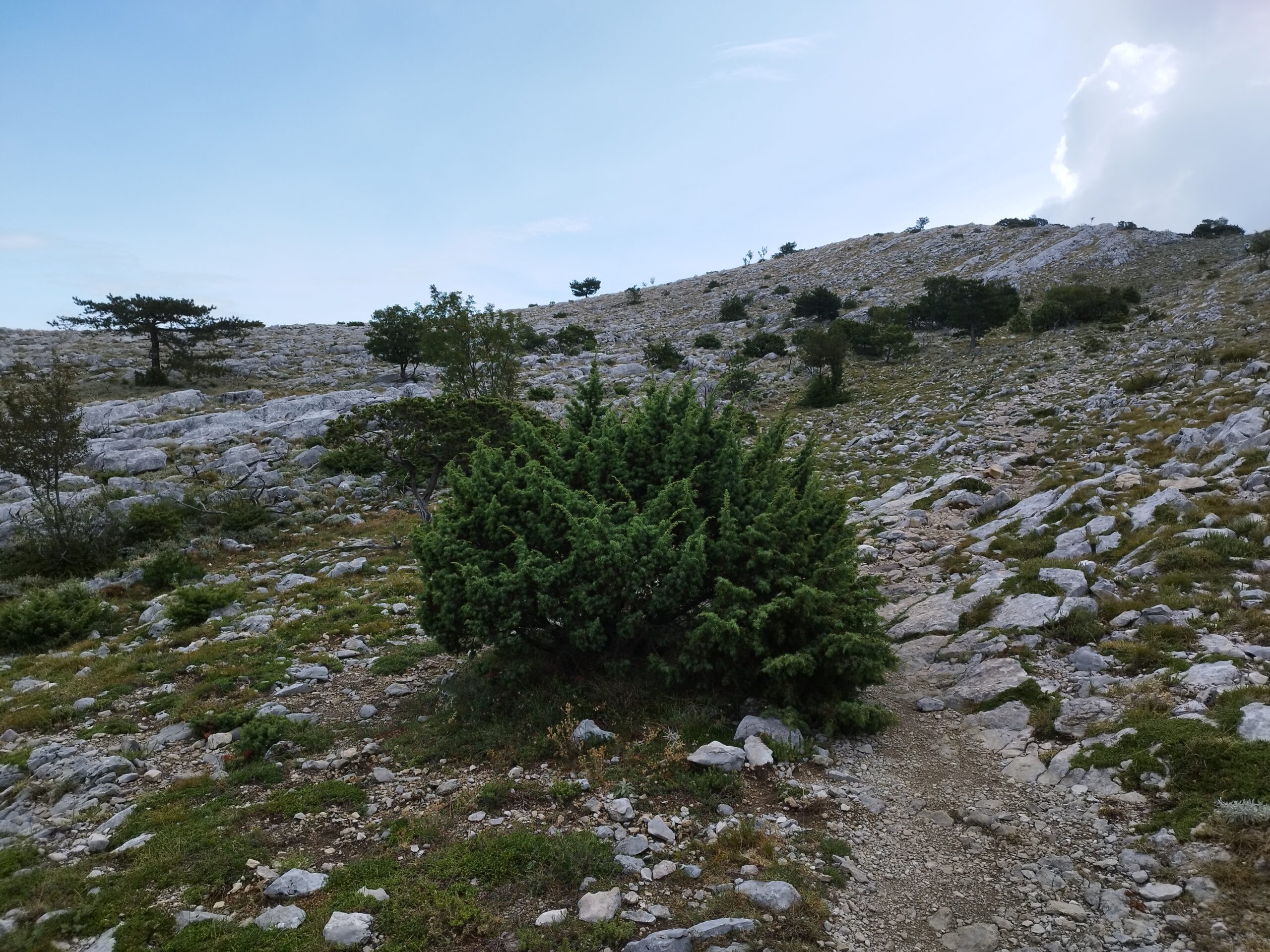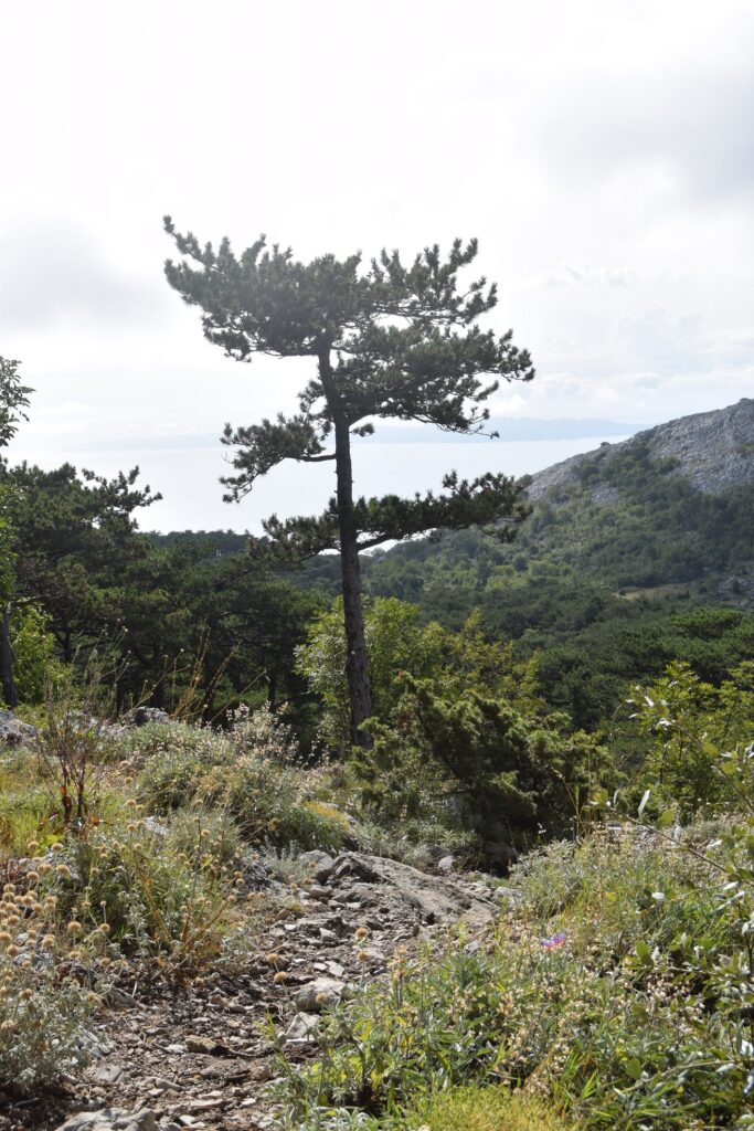 Wędrowcy będący pod wrażeniem surowości zboczy opadających ku Orebicowi mogą zostać zaskoczeni bujnością i rozmaitością szaty roślinnej i krajobrazu na szlaku. Mnie urzekł zwłaszcza trawers zboczy suchej doliny opadającej ku miejscowości Kuciste. Rosnące tam sosny o parasolowatej formie wynoszą się ponad krzaczaste zarośla makii. Rozległe wypłaszczenie, przy którym schodzą się szlaki z Orebica i Viganj, porasta natomiast gęsty, wysokopienny las podobny do tych, które widziałem w niższych partiach rumuńskich Karpat. W opisach podejścia na Świętego Ilję często wspominane są spotkania z końmi pasącymi się tu bez nadzoru człowieka. My nie mieliśmy tego szczęścia, natknęliśmy się tylko na odchody, które równie dobrze mogły być owcze, jak i muflonie, gdyż ten gatunek zamieszkuje górzyste wnętrze półwyspu. Największymi napotkanymi zwierzętami pozostały więc psy, które dość często towarzyszyły, ku uciesze Harrego, dwunożnym zdobywcom szczytu. W miarę pokonywania kolejnych poziomic, otwierały się przed nami coraz dalsze widoki. Początkowo tylko na Korculę, następnie także na dalej położone Lastovo i Mljet. Spod szczytu ku północy widać było położoną malowniczo u wylotu wąskiej doliny wioseczkę Duba Peljeśka, a za Neretvianskim Kanałem – wschodnią końcówkę Hvaru i kontynentalną Dalmację. Bardzo ciekawy był też skalisty grzebień ciągnący się od szczytu, ku wschodowi.