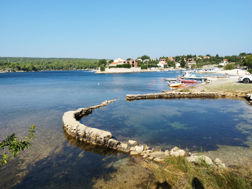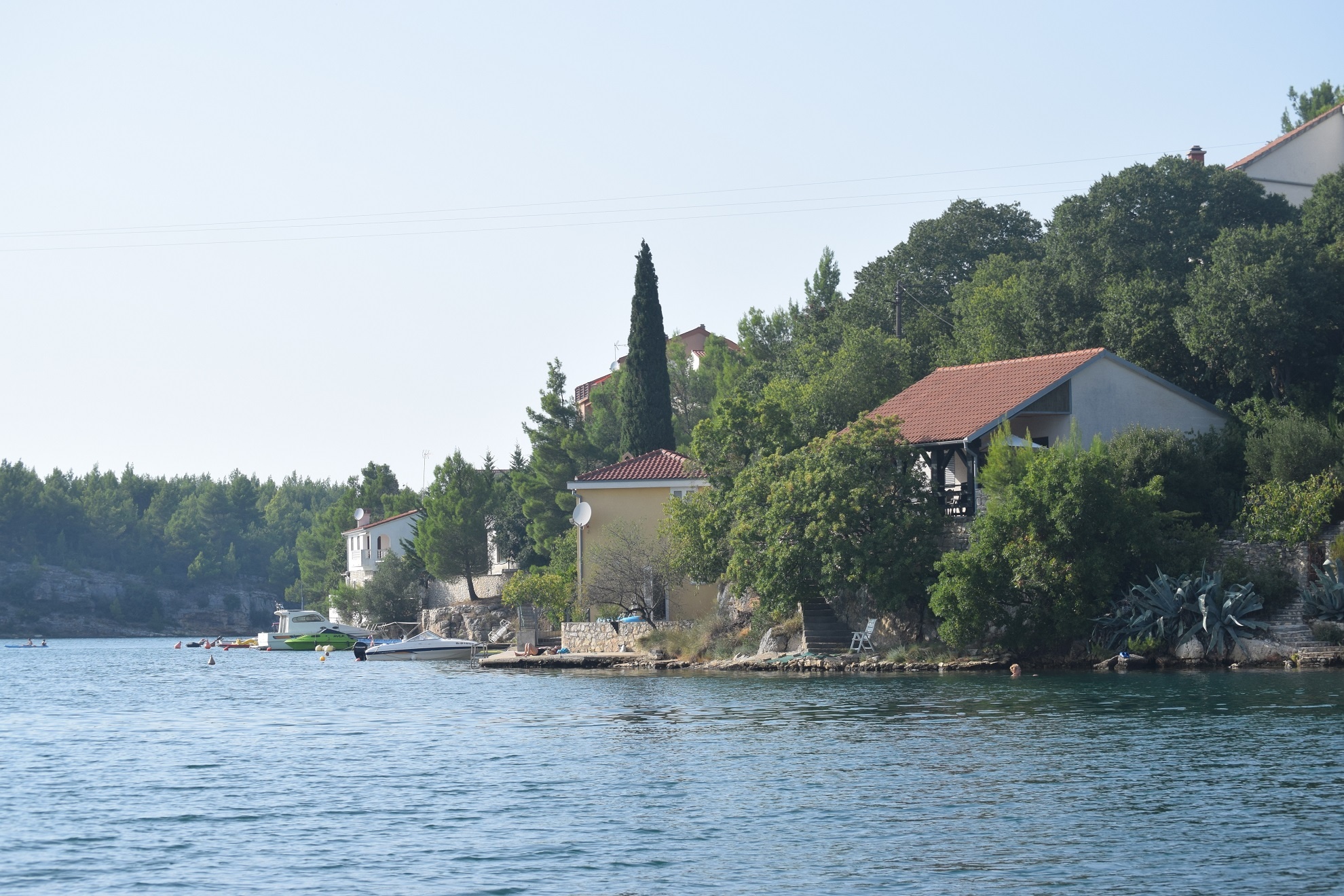 Zrmanje uchodzi do rozległej zatoki zwanej Morzem Novigradskim. Na północy łączy się ona z Adriatykiem cieśniną Novsko ždrilo, a na południu – poprzez cieśninę Karinsko ždrilo – z kolejnym, mniejszym, Morzem Karinskim. Chorwaci, ze względu na powierzchnię sięgającą tylko 5,5 km kw., lubią nazywać to ostatnie najmniejszym morzem świata. Nad drugą z cieśnin rozsiadła się miejscowość Ribnica, w której spędziliśmy sierpniowy tydzień. Choć to jeno 40 km od Zadaru, była to nieco inna Chorwacja, niż na wybrzeżu. Wciąż spotyka się tam zagranicznych turystów, woda w zatoce, choć mniej przejrzysta, jest podobnie słona, są hotele, restauracje, a nawet “beach bar”, ale rano budziło nas pianie koguta, w krzakach pod domem spotykaliśmy żółwie, wśród drzew latały wilgi, a po zapadnięciu zmroku – nietoperze. Gospodarze pozwalali gościom zrywać w ogródku to, na co mieli ochotę, a wokół zabudowań panował swojski nieporządek. Ku naszemu utrapieniu, nie było tam piekarni, miejscowy spożywczak nie oferował świeżych (ani nawet sczerstwiałych) “slancy”, ani lodów – zamiast w lodziarni, trzeba ich było szukać w regularnych restauracjach. Poważną niedogodnością było też częste nieakceptowanie kart płatniczych, podczas gdy najbliższy bankomat znajduje się w odległości prawie 8 km. Za to w zasięgu spaceru mieliśmy odcinki wybrzeża tylko dla siebie. Najczęściej korzystaliśmy ze Stipan’s Beach, gdzie w porze naszego przybycia żegnaliśmy tylko parę starszych wiekiem Chorwatów, a gdy zbieraliśmy się do domu, witaliśmy jedną niemiecką rodzinę z dwójką dzieci.