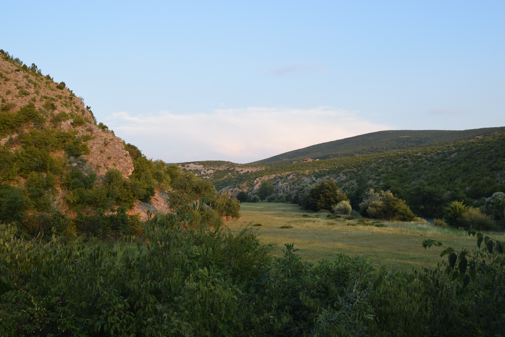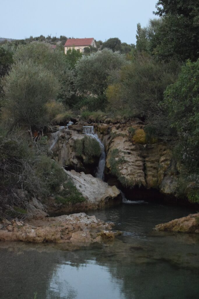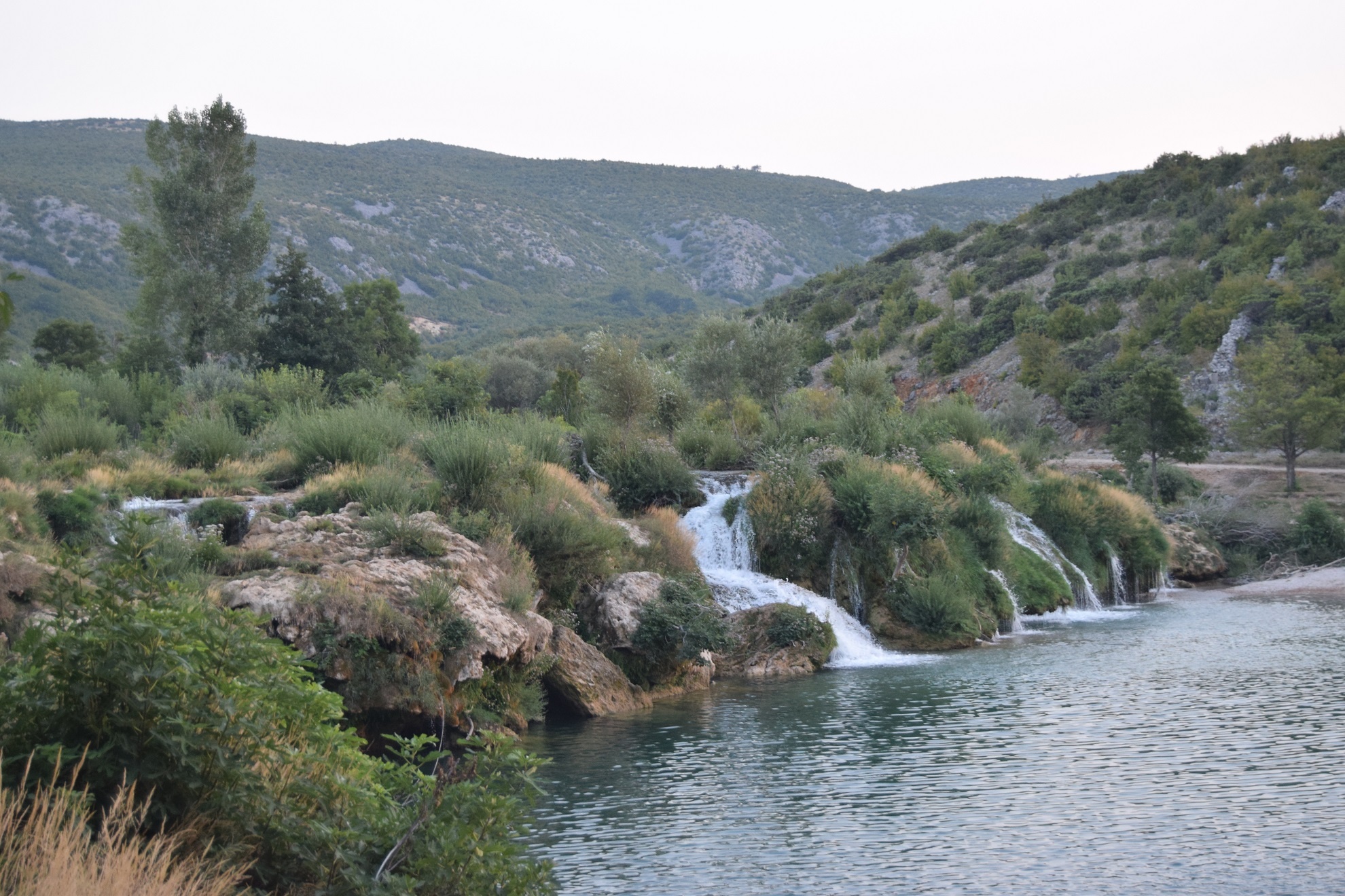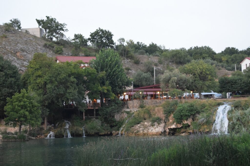 Rzeka Zrmanje w swoim środkowym biegu pokonuje serię wodospadów. Odwiedziliśmy najbliższy z nich – Slapovi Zrmanje. Jedzie się tam wśród rozległych połaci makii, z pięknymi widokami na pasmo Velebitu. Wodospad nie jest wysoki, woda spada z wysokości jakichś 6-7 metrów, ale rzeka jest pełnowodna i szeroka, spada więc kilkunastoma większymi i mniejszymi kaskadami poprzedzielanymi pasami zieleni. Przyroda i krajobraz robią duże wrażenie. Niestety, łatwość dojazdu spowodowała zwiększoną presję inwestycyjną człowieka. A że planowanie przestrzenne nie jest tu w najwyższej cenie, wodospady obrosły chaotyczną infrastrukturą: restauracje, pensjonaty, pole namiotowe, parkingi, dacze. Taras jednej z restauracji jest wręcz nadwieszony nad skrajną siklawą. Ludzie kręcą się wśród namiotów, słuchają muzyki, palą ogniska, grają w siatkówkę plażową, a nawet pieką jagnię na rożnie! Tymczasem, trzysta metrów w górę rzeki rozciągają się żyzne, zielone łąki, obrzeżone pasem wysokich drzew. Zrmanje spokojnie toczy swe przezroczyste, głębokie wody, ponad którymi od czasu do czasu przelatuje zimorodek. Co za kontrast między naturą w swej wspaniałości, a dosyć tandetną naleciałością cywilizacji! Chorwaci bardzo nie lubią, gdy określa się ich kraj przymiotnikiem “bałkański”. Cóż, kiedy właśnie odczucie bałkańskości – w duchu Emira Kusturicy – miałem patrząc, jak zagospodarowano okolice wodospadów. Może to był jednak relikt po nieboszczce Jugosławii, bo samochody stojące na parkingu nosiły tablice rejestracyjne, praktycznie wszystkich, państw powstałych w wyniku jej rozpadu.