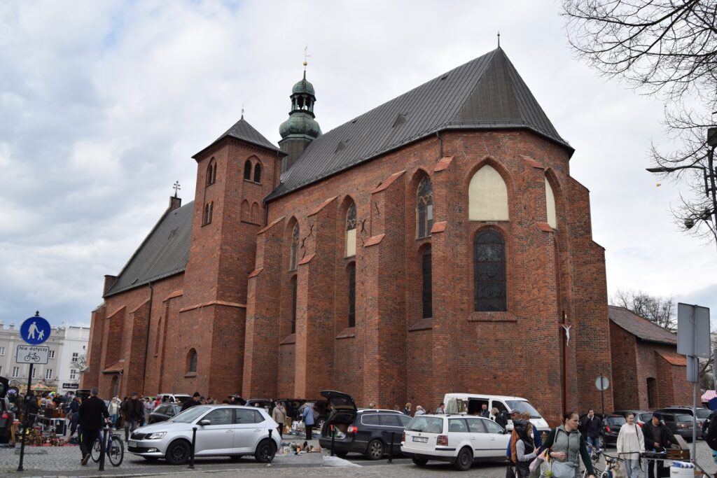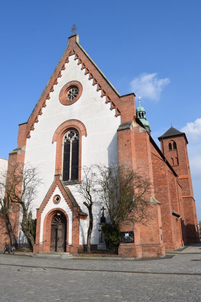 Wspomniany wyżej kościół farny pw. Wniebowzięcia NMP sprawia wrażenie usytuowanego w pd.-wsch. narożniku rynku. Trudno uwierzyć, że w czasach niemieckich na niewielkim skwerku przed świątynią pomieściła się wielkomiejska kamienica. W tym przypadku jednak brak odbudowy pozwolił na wyeksponowanie gotyckiej bryły kościoła. Dla osoby przekraczającej po raz pierwszy główne wejście najbardziej zaskakującym jest to, że prowadzi ono do tzw. Kaplicy Polskiej, usytuowanej poprzecznie do nawy głównej i służącej jako miejsce codziennej adoracji Najświętszego Sakramentu. Chcąc więc dotrzeć do głównej części świątyni, trzeba przejść między pogrążonymi w modlitwie wiernymi, a obiektem ich kultu. Dla uniknięcia tej  niezręcznej sytuacji warto wiedzieć, że wchodząc wejściem od ul. Mickiewicza można, za plecami modlących się, skręcić do bocznej nawy głównego korpusu kościoła. A tam znajdziemy ciekawy, barokowy ołtarz, sklepienie gwiaździste, nagrobki i epitafia oraz malowidło podorganowe z 1966 roku ukazujące, obok deklaracji wierności kościołowi, historyczną panoramę miasta oraz jego patronów: papieża Marcelego, który w 1290 r. cudownym pojawieniem się przepłoszył Tatarów spod Raciborza i piastowską księżniczkę Eufemię (Ofkę), która wybrała życie dominikańskiej zakonnicy, zamiast świeckich splendorów. Nie zobaczymy już jednak wspaniałych, barokowych stalli z prezbiterium, o których wspominają wszystkie przewodniki, ponieważ zostały strawione przez czerwonoarmijną pożogę w roku 1945.