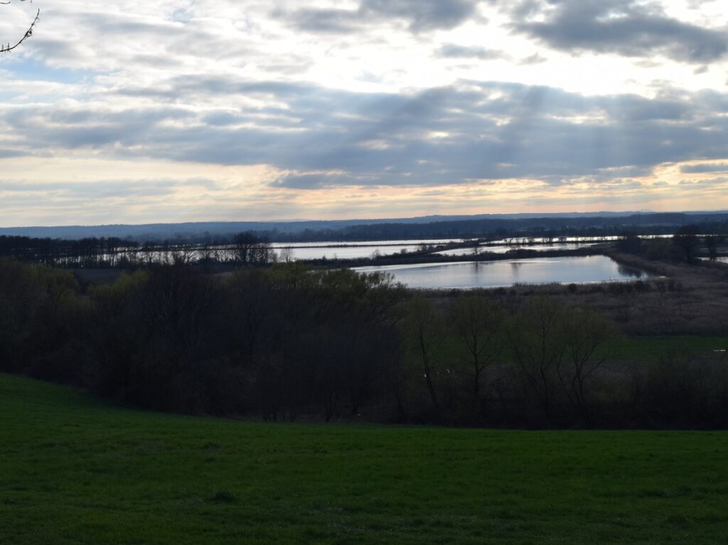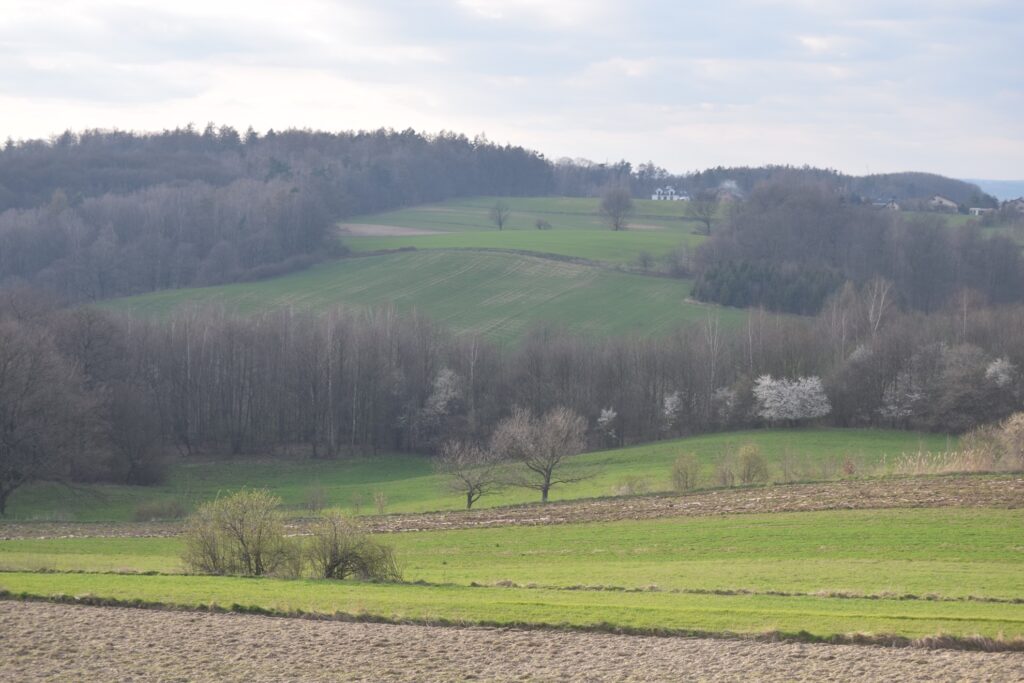 Wschodni brzeg doliny Odry, powyżej Raciborza, jest wysoki, często lesisty. Tu znajduje się Las Obory, a w nim Arboretum Bramy Morawskiej z ogrodem w formie labiryntu i mini zoo. Liczne ścieżki spacerowe wiją się wśród liściastych lasów pokrywających bogato urzeźbione zbocza. Podobne warunki terenowe, choć z uboższą infrastrukturą, można spotkać w położonym w górę doliny Lesie Widok. W Pogrzebieniu, na krawędzi doliny, wzniesiono wieżę widokową. Nie widać stamtąd Beskidów, ale ku zachodowi, za upstrzoną lustrami stawów rybnych doliną Odry, majaczą sudeckie szczyty. Ku wschodowi, za mozaiką lasów, pól i wiejskich zabudowań, wzrok przyciąga regularny stożek monstrualnych rozmiarów hałdy Szarlota w Rydułtowach. Kolejny punkt widokowy znajdziemy w Grabówce. Widać stąd głównie zespół stawów Wielikąt, za to w pobliżu platformy wznosi się mały kościółek o ciekawej historii. Pierwotnie stał on we wsi Ligota Tworkowska, wysiedlonej w związku z budową polderu przeciwpowodziowego. Został rozebrany i odtworzony przez jej mieszkańców na wysokiej skarpie doliny Odry. Co ciekawe, ocalili oni i przenieśli w pobliże kościoła także kilka kamiennych słupów granicznych, wyznaczających przedwojenną granicę Polski i Niemiec. Napotkana przy pielęgnacji roślin sympatyczna pani w średnim wieku zaprowadziła nas do świetlicy wiejskiej, wchodzącej w skład powstałego tu kompleksu budowli. Pokazała nam dużą salę wielofunkcyjną, izbę pamięci oraz kronikę miejscowego zespołu śpiewaczego Koła Gospodyń Wiejskich. I był to bardzo charakterystyczny element tego wyjazdu. W każdym z odwiedzanych miejsc, napotkane osoby chętnie wchodziły z nami w interakcje opowiadając, a to o problemach z niesfornym szczeniakiem, a to o doborze właściwego serka do doskonałego tiramisu, a to o działalności grup zainteresowań w wiejskiej świetlicy. W tej części Śląska ludzie ewidentnie żyją ze sobą, a nie obok siebie.