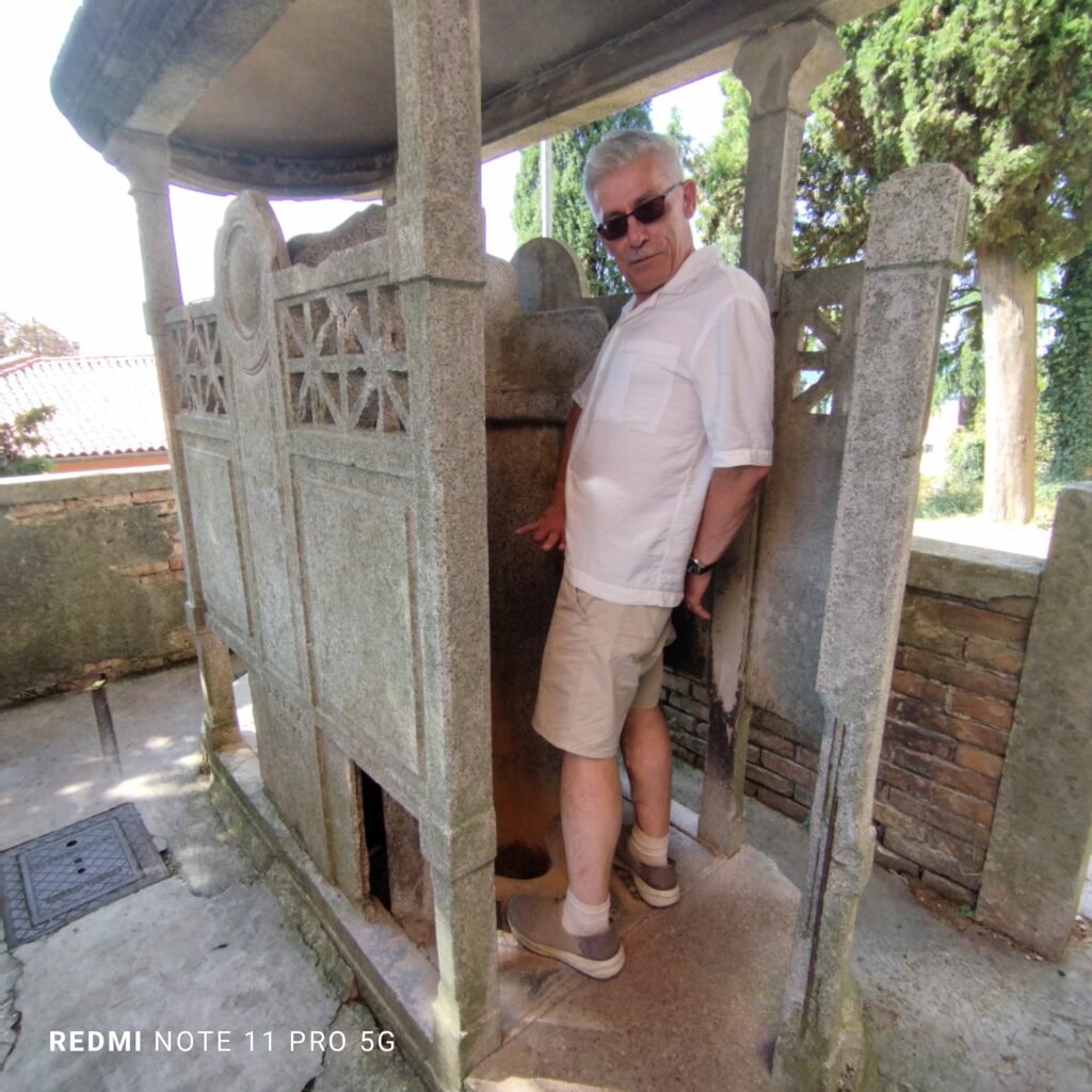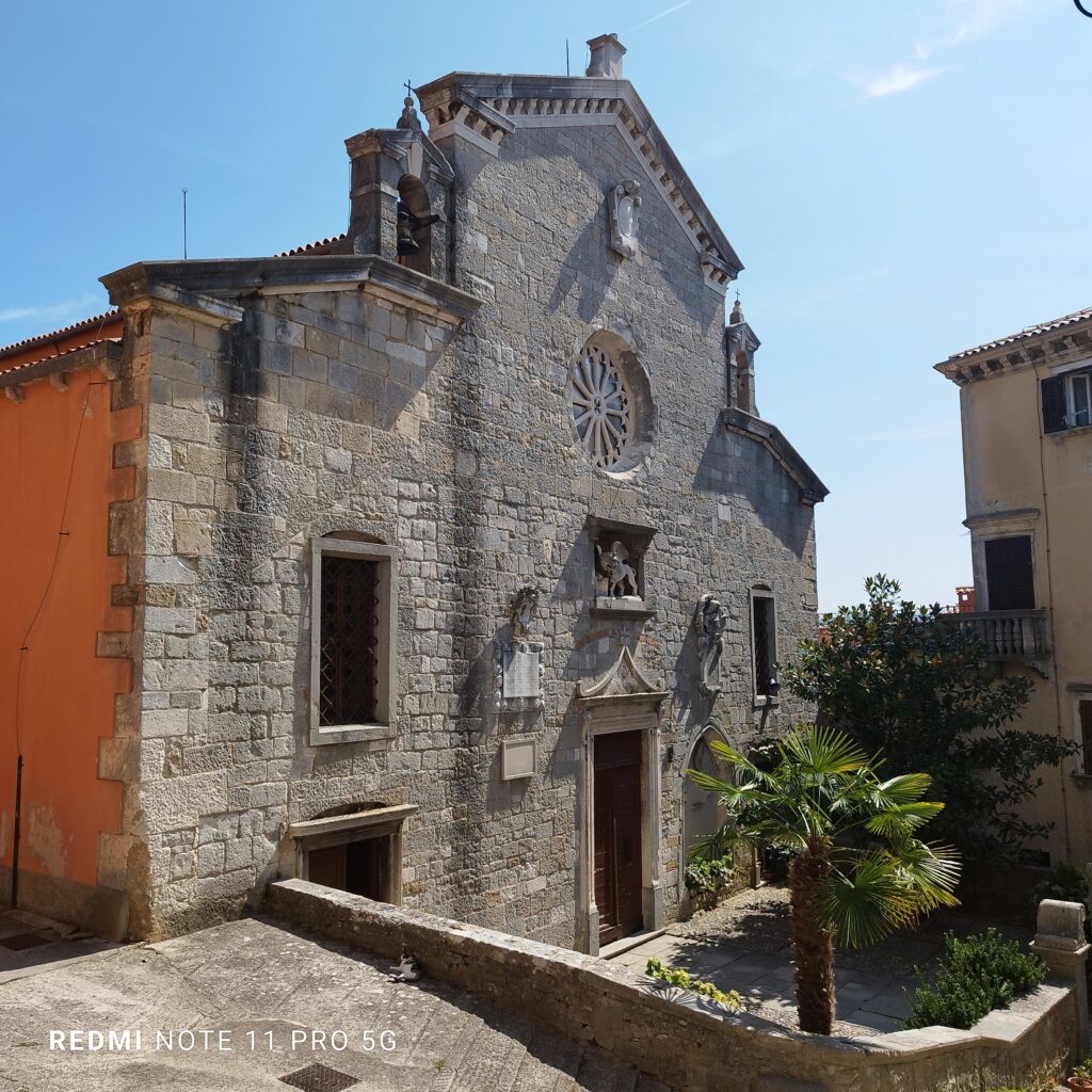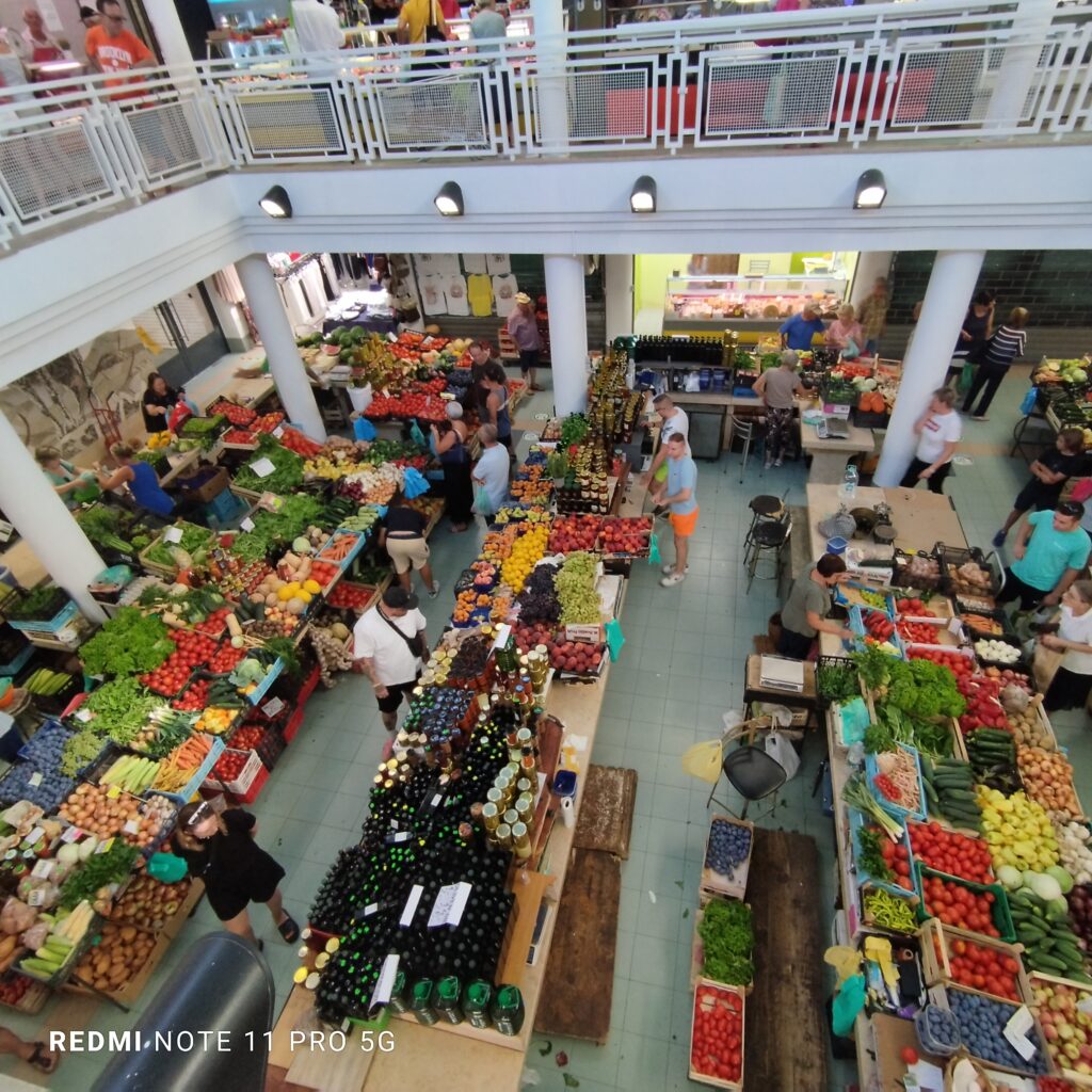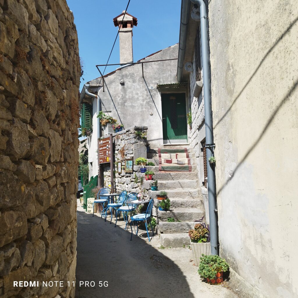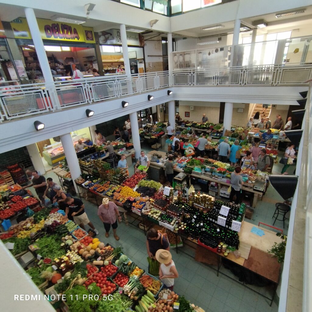 Z nieoczywistych atrakcji miasteczka trzeba wymienić, położoną w nowej części, wieżę windową nad dawnym kopalnianym szybem. Do jej podnóża nie dotarliśmy, ale mogliśmy ją podziwiać z różnych miejsc widokowych Starego Miasta. Byliśmy za to w położonej nieopodal hali targowej, czyli po chorwacku – Tržnicy. Nazwa ta stosuje się zarówno do rozmaitej architektury zadaszonych obiektów handlowych (np. w Labinie), jak i do małych placyków (np. w Novigradzie), na których sprzedawane są wszelakie płody rolne. My z Podziomkiem uwielbiamy widoki, zapachy i atmosferę takich targowisk. To w Labinie, ma dwa poziomy oraz wydzieloną specjalną salę do sprzedaży ryb i innych morsko pachnących stworzeń. Każdy może tam znaleźć coś dla siebie. Dla mnie były to sery i pieczywo, dla Podziomka – barwne warzywa, owoce i oliwa. No i doświadczyliśmy – a jakże – poczęstunku śliwowicą przy okazji banalnego zakupu fig i innych owoców. Prawdziwym koneserom miejskich atrakcji rekomenduję wizytę w dziewięćdziesięcioletniej toalecie publicznej, ukrytej za flankującym wjazd na rynek, Krągłym Bastionem. Jest to przybytek jednostanowiskowy, w typie tureckim (kucanym), ukryty za betonową, obłą, umiarkowanie zdobioną obudową. Wyglądał na nieużywany. Nie wnikając w przyczyny tego stanu rzeczy, uznaliśmy, że to dobrze. Obecnie można bowiem skupić się na architekturze i koncepcji użytkowej obiektu, bez nadmiernego podrażnienia zmysłu węchu.