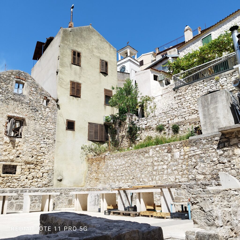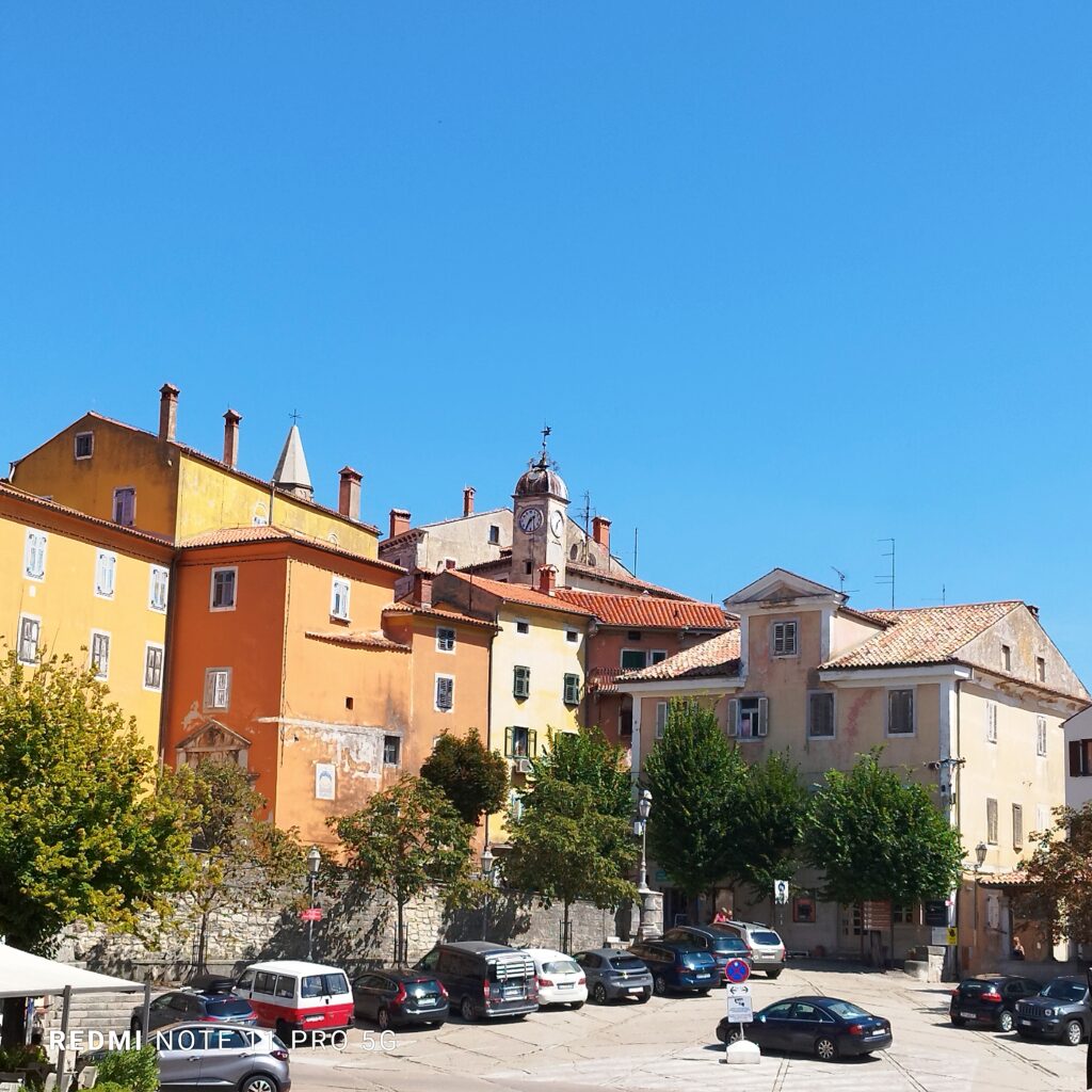 Odpoczynek przy lodach i drinku na labinskim rynku dostarczał wrażeń podobnych, jak w każdym innym historycznym, istryjskim miasteczku. Była loggia, pod której arkadami kupcy mogli rozkładać swój towar, a heroldzi obwieszczać ważne dla mieszkańców ogłoszenia. Były zdobione rzeźbami bramy, wystawne pałace i wiekowe kamienice z kruszejącymi tynkami. Ponad dachami widać było wyniosłą wieżę zegarową i jeszcze wyższą dzwonnicę. Jednak, miejsce to wyróżniało się na tle innych powenecjańskich placów. Położenie Labina powoduje, że główna droga samochodowa wspina się na centralne wzgórze i przecina rynek, a pojazdy lawirują wśród pieszych. Dodatkowo, główny plac miasta jest położony poza murami miejskimi. Żeby było jeszcze ciekawiej, kierowcy chcący się zatrzymać, mogą z tego placu, wprawdzie mając specjalne zezwolenie lub 66 Euro do zbycia, wjechać na parking położony na miejskich wałach. Oczywiście piesi za wejście nie płacą, chociaż z platformy murów ozdobionych starymi armatami rozciągają się piękne panoramy na znaczną część Istrii, zatokę Rijecką oraz najwyższy na całym półwyspie, sięgający 1400 m npm, masyw górski Ućka, zwieńczony biała kopułą przekaźnika radiowo-telewizyjnego na szczycie Vojaka.
