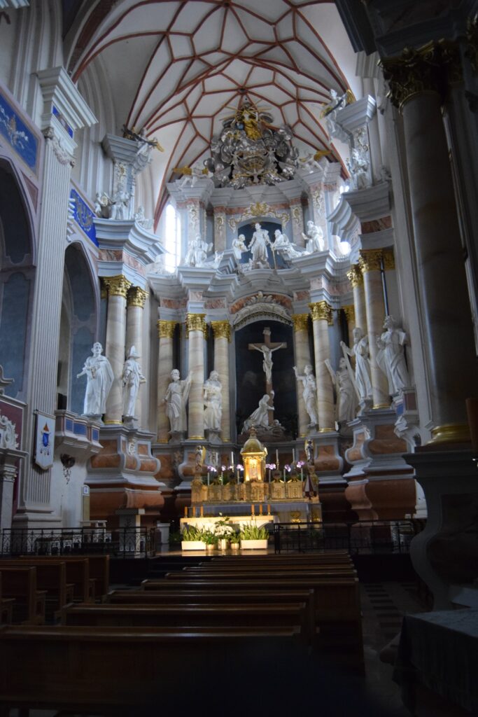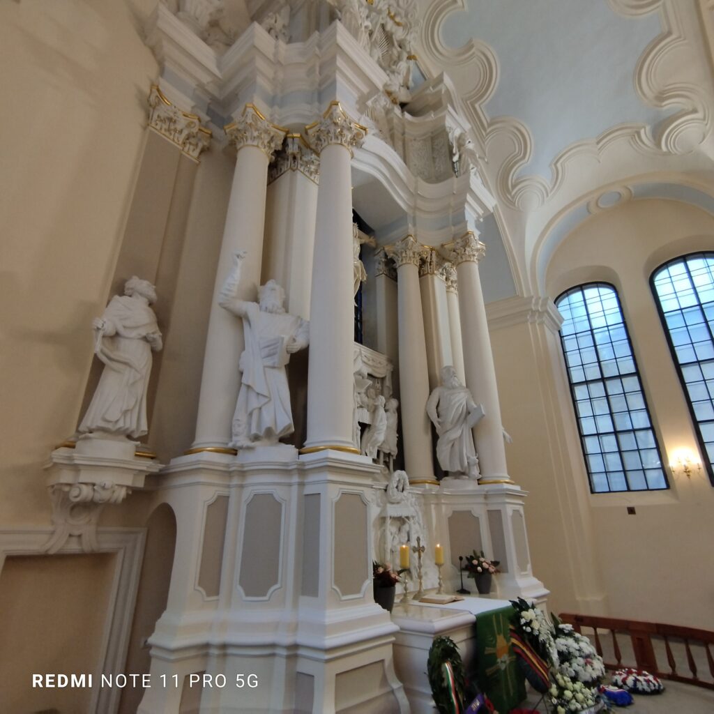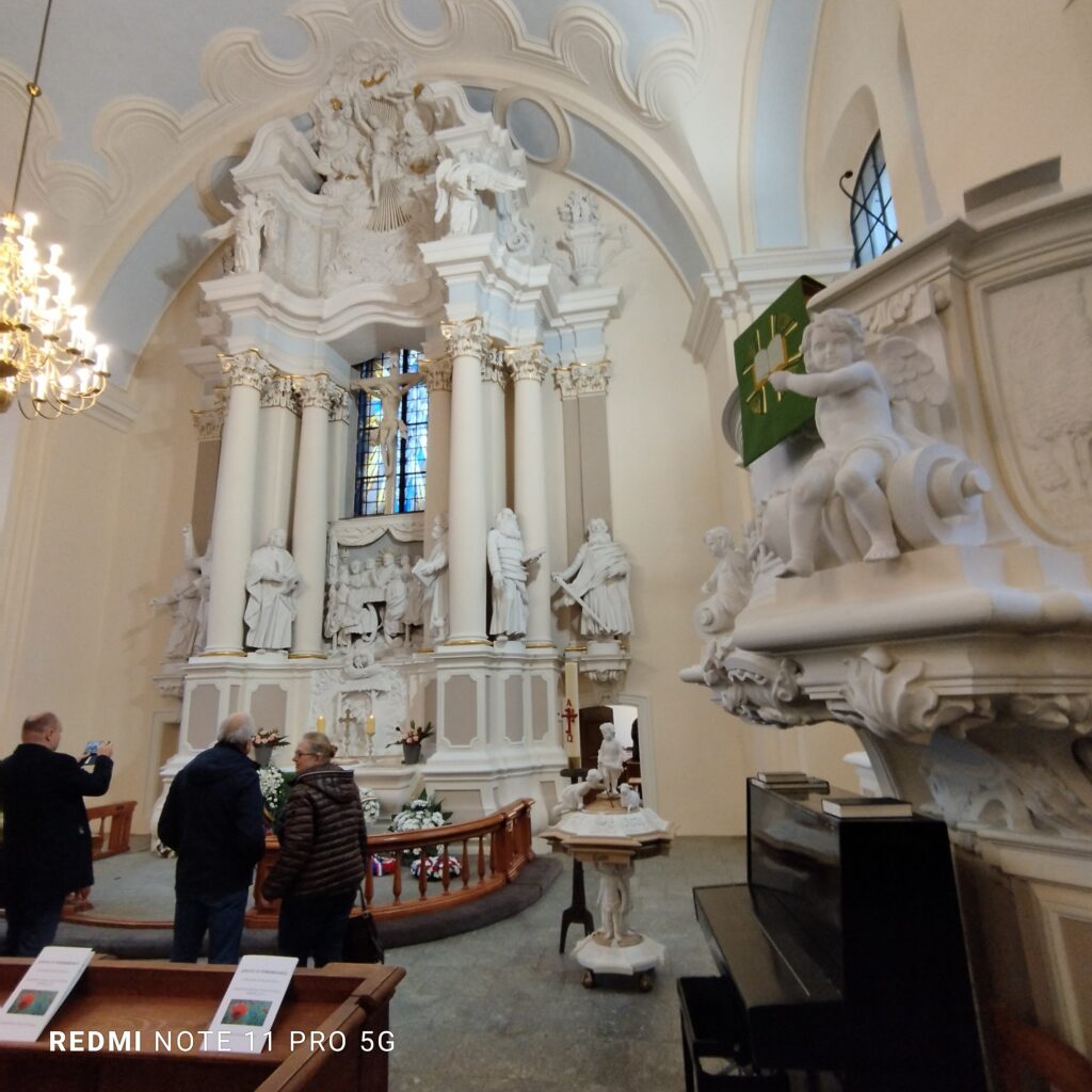 Nietolerancja religijna, która po potopie szwedzkim i najeździe moskiewsko- siedmiogrodzkim ogarnęła Rzeczpospolitą, przybrała formy instytucjonalne tylko w Koronie. W Wielkim Księstwie Litewskim sytuacja kościołów reformowanych była, mimo powtarzających się prób ograniczenia ich działalności, zdecydowanie korzystniejsza. Nie przypadkiem, pozbawieni aż do lat osiemdziesiątych XVIII w. własnej świątyni i pastora, dysydenci warszawscy udawali się na nabożeństwa w Węgrowie. Aż do końca istnienia pierwszej Rzeczpospolitej, miasto było częścią “Litwy”, a granica z Koroną biegła po rzece Liwiec. W Wilnie zbór luterański istniał już w XVI wieku, a współczesna świątynia liczy już sobie 285 lat. Jako, że koegzystencja z katolicką większością miasta nie było całkiem spokojna, kościół ukryto w podwórku przy ulicy, nomen-omen, Niemieckiej (Vokiečių). Z dzisiejszej perspektywy lokalizacja taka przysparza uroku, w bardziej niespokojnych czasach pozwalała przetrwać antyheretyckie tumulty za zamkniętymi na cztery spusty wrotami bram. Obecny wygląd kościół zawdzięcza ojcu wileńskiego baroku – pochodzącemu ze Śląska Janowi Krzysztofowi Glaubitzowi. Ten dobry luteranin i wieloletni członek władz wileńskiego zboru, w duchu ekumenicznym, obdarował wytworami swego talentu liczne świątynie katolickie, prawosławne, a nawet wielką synagogę wileńską. Mieszkańcom dawnej Kongresówki i Galicji pojęcie barokowego wystroju luterańskiej świątyni może wydawać się oksymoronem. Wynika to jednak stąd, że w okresie baroku w tych częściach Polski w ogóle nie można było wznosić świątyń protestanckich. A gdy było to już możliwe, w architekturze panowała moda na klasycyzm i wśród samych wiernych zaczęto chyba bardziej cenić skromne wnętrza świątyń. Jednak o tym, że nie zawsze tak było, zaświadczają dolnośląskie kościoły Pokoju i Łaski, liczne małe kościoły mazurskie oraz kościół w Wilnie. Ma on ołtarz porażający bielą marmuru i ekspresyjnością figur, a także wspaniałą ambonę i chrzcielnicę. Trzeba się na serio skupić, by rozważać Słowo, podczas gdy zmysł wzroku atakowany jest tak powabnymi obrazami.