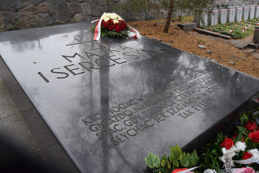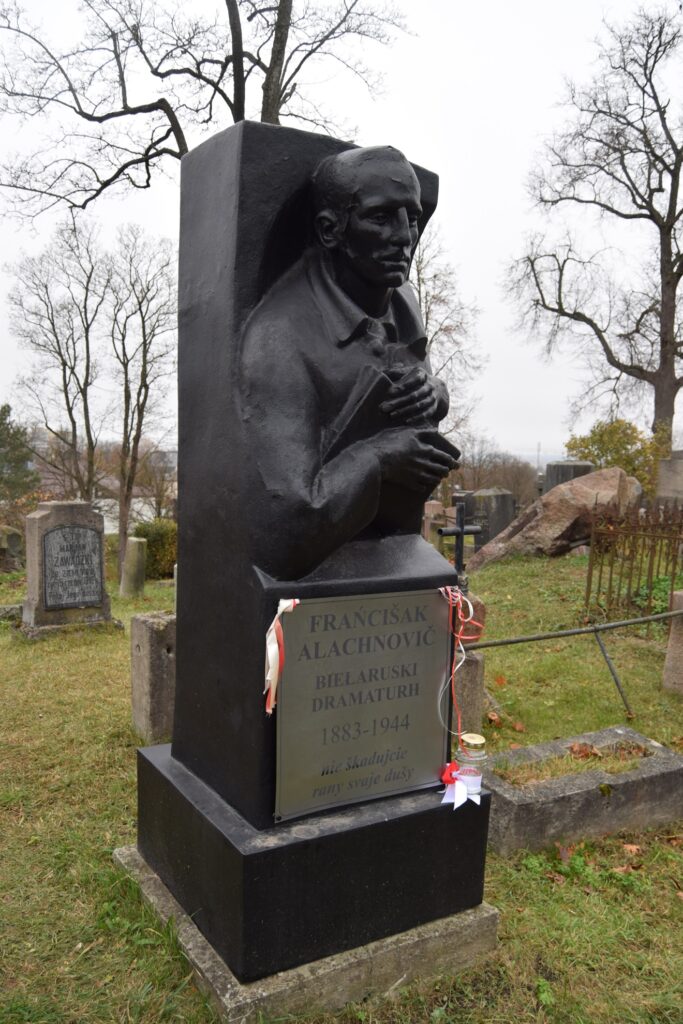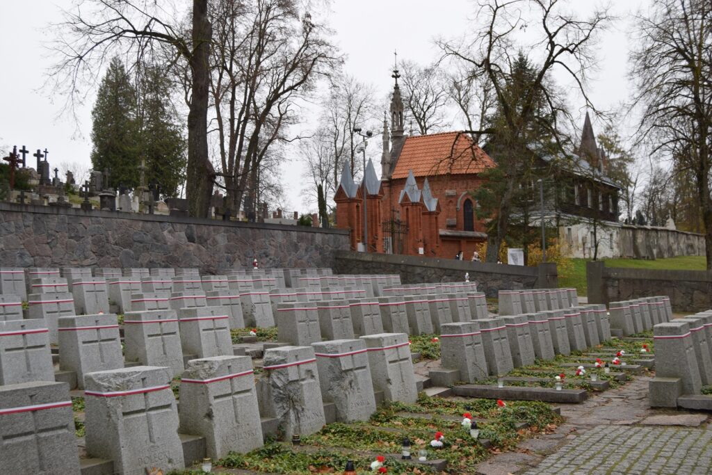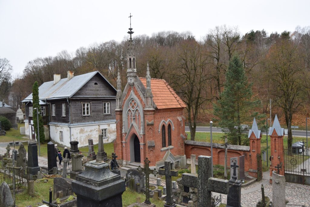 Skoro byliśmy już wcześniej w miejscu narodzin, chcieliśmy odwiedzić też miejsce pochówku Kastusia Kalinowskiego. Od roku 2019 jego doczesne szczątki spoczywają w kaplicy na cmentarzu na Rossie. Ich znalezienie zawdzięczamy siłom natury – zostały odsłonięte, gdy osunęło się zbocze Góry Gedymina. Że są to szczątki przywódców Powstania Styczniowego, zdradził napis wygrawerowany na znalezionej przy nich obrączce: “Zygmunt i Apolonia. 11 sierpnia/30 lipca 1862”. Tego dnia ślub wzięli: Zygmunt Sierakowski, wojskowy dowódca Powstania Styczniowego na Litwie i Apolonia Dalewska. Tożsamość pozostałych ofiar Murawiewa-Wieszatiela ustalono w drodze badań genetycznych. Ich ponowny pochówek na Rossie miał podniosły nastrój i zjednoczył, przynajmniej w tym dniu, Polaków, Litwinów i Białorusinów. Jednak kaplica, w której pochowano powstańców, okazała się nie być otwarta na codzień. Zmuszeni byliśmy położyć nasze znicze i wieńce u jej wejścia.
