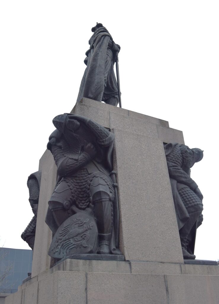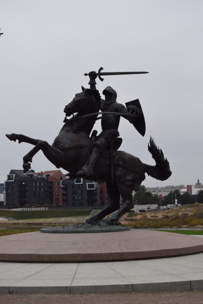 Rozmiarami i przekazem ideowym nie umywają się one jednak do pomnika Wielkiego Księcia Witolda w Alei Wolności. Witold, w triumfalnej pozie wsparty na mieczu, stoi na postumencie podtrzymywanym przez pokonanych wrogów Litwy: Krzyżaka, Rusina, Tatara i Polaka. Ten ostatni, za każdym razem wzbudza moje rozbawienie, gdyż z boleściwą miną trzyma się za ucho, niechybnie natarte przez litewskiego wodza. Dla turystów z Polski, wyrosłych na polukrowanej wersji historii, w której litewscy i polscy kuzyni wspierali się przeciwko Teutonom i nie znali co to spory, inne ukazanie ich relacji może być przykrą niespodzianką. Mogło być jednak gorzej. Zamiast trzymać się za ucho, polski woj mógł zostać ukazany, jak z chytrą miną chowa za pazuchę koronę królewską. Przyznał ją Witoldowi cesarz, jednak nigdy nie dotarła do miejsca koronacji. Na rozkaz króla Władysława Jagiełły Polacy obsadzili drogi prowadzące z Nowej Marchii i 1 sierpnia 1430 roku przejęli posłańca cesarskiego wiozącego insygnia królewskie na Litwę. Podobno, jedynie wyperswadowali mu dalszą podróż do Wilna, ale jest faktem, że po koronie ślad zaginął. W artystycznej wizji łatwo można było ukazać jej przywłaszczenie przez polskiego woja. A z dwojga złego, lepiej już być utożsamianym z pokonanym przeciwnikiem, niż z podstępnym złodziejem.