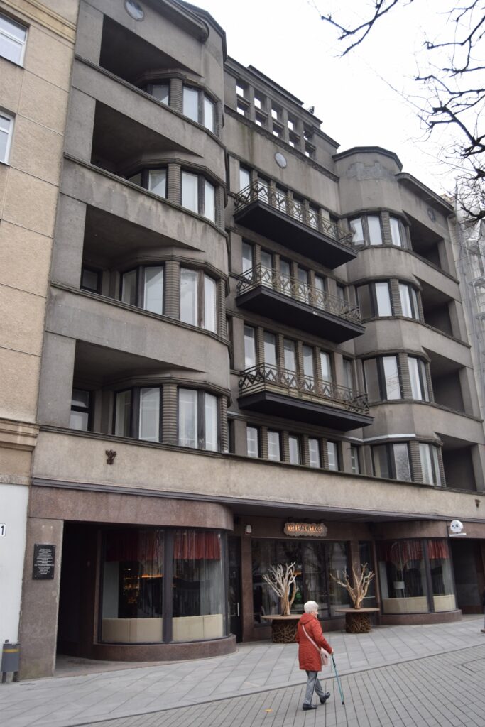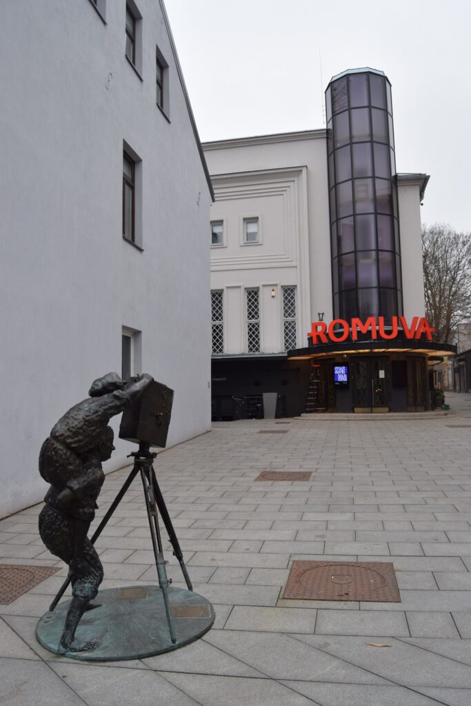 Niepowodzenie w dotarciu do białej świątyni zrekompensowaliśmy sobie wizytą w największej na całej Litwie gotyckiej katedrze, włóczęgą po staromiejskich uliczkach oraz podziwianiem reprezentacyjnej zabudowy wzdłuż Alei Wolności (Laisves) i nowoczesnych budowli dzielnicy Žaliakalnis. Do nieoczywistych atrakcji miasta należą błonia u zbiegu Wilii (Neris) i Niemna. Rozciąga się stamtąd, nie tylko daleki widok na doliny obydwu rzek, ale i oryginalna perspektywa na Stare Miasto i zamek kowieński. Trochę przypadkowo wędrowaliśmy szlakiem kowieńskich pomników. A jest ich całkiem sporo i wielce różnorodnych. Od klasycznego w formie wizerunku poety, duchownego i filologa Jonasa Mačiulevičiusa, poprzez ekspresyjne wyobrażenie litewskiej Pogoni nad brzegami Willi, nieco dziwaczną miniaturę człowieka-szyszki na błoniach do czarujących figurek uliczników patrzących przez obiektyw kamery na gmach modernistycznego kina Romuva.