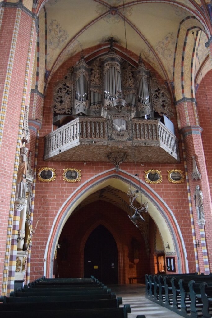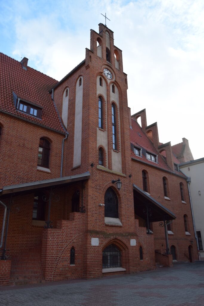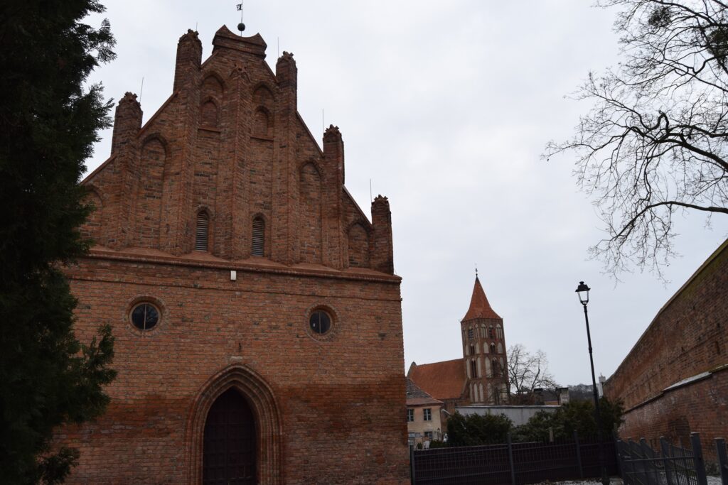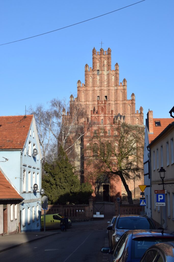 Chełmno ze względu na położenie stwarza możliwość szybkiego dojazdu do innych turystycznych celów jakimi są Toruń i Grudziądz. Tym razem wybraliśmy to drugie miasto. Mamy tam ulubioną kawiarnię w uliczce pod parasolkami prowadzącej od Rynku ku ulicy Spichrzowej. Tym razem w ofercie zaskoczyła nas obecność piwa z miejscowego mini browaru. Szkoda tylko, że nie ma on praw do używania tradycyjnej dla miasta marki “Kuntersztyn”. Spacer po nadwiślańskich błoniach, w słoneczne, mroźne południe z widokiem na imponującą linię wielokondygnacyjnych spichrzy i górującymi nad nimi wieżami kościoła farnego, kolegium jezuickiego i odbudowanej wieży zamkowej, zwanej Klimkiem, utwierdził mnie w przekonaniu, że Grudziądz posiada najatrakcyjniejszy widokowo waterfront spośród wszystkich nadwiślańskich miast w Polsce. Odkryciami tego wyjazdu były dwa obiekty w stylu neogotyckim, obydwa związane z protestantami grudziądzkimi. Obecna świątynia parafialna wzniesiona w 1916 roku dla kościoła apostolsko-katolickiego (tu ciekawostka: wyrosłego z prezbiteriańskiego Kościoła Szkocji!) jest architektonicznie skromna, ale ze względu na usytuowania na bastionie murów miejskich jest efektownie wyeksponowana od strony południowej. Od strony północnej, schodkowy szczyt kościółka ładnie zamyka perspektywę ulicy Murowej. Obecna parafia jest liczbowo niewielka, ale przed II Wojną Światową, gdy ewangelików (głównie niemieckich) w mieście było ponad 3000, do celów kultowych służył im obecny rzymsko-katolicki kościół pw. Niepokalanego Serca NMP. Stracił on w wyniku działań wojennych wyniosły szczyt swej wieży, ale nadal prezentuje wszystkie cechy bogatego neogotyku. W środku natomiast świątynia jest zaskakująca surowa w wyglądzie. Dominującym elementem wyposażenia jest współczesny krucyfiks w prezbiterium. Na ścianie wschodniej umieszczono zachowane elementy neogotyckiego ołtarza. Ukłon w kierunku liturgicznych preferencji obecnych użytkowników stanowi udana figura Matki Boskiej we wnęce na zamknięciu lewej nawy oraz tematyka witraży w wielkich oknach naw. Prócz tego pustka pobielonych ścian. Czyżby to działał stary dobry “Genius loci”?