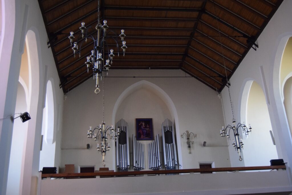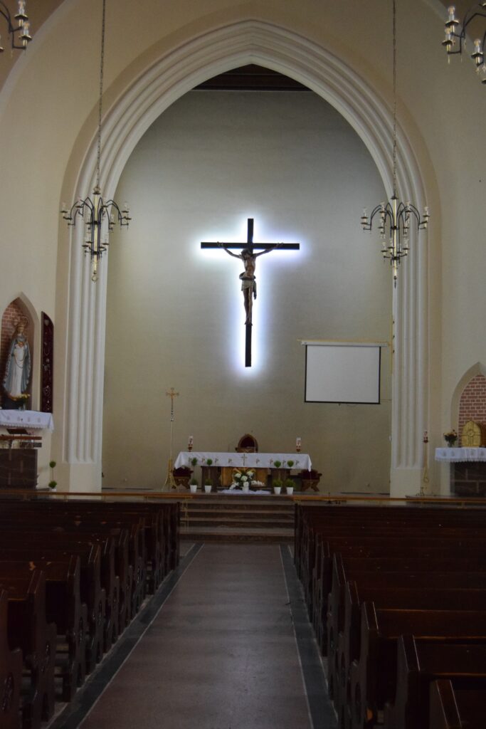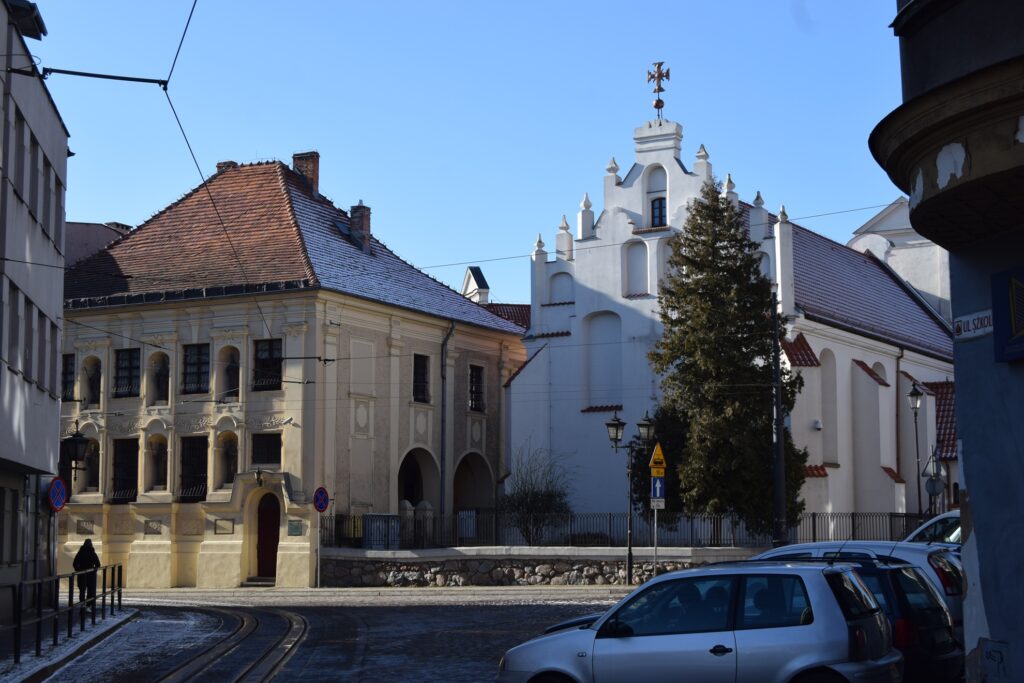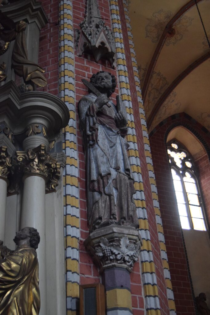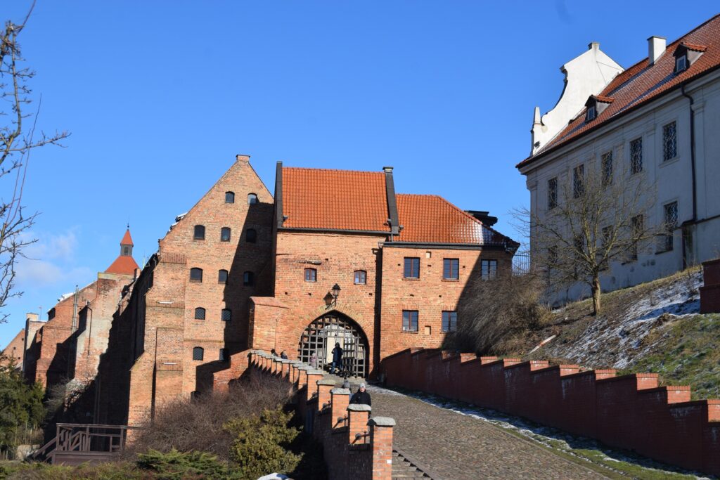 Chełmno ze względu na położenie stwarza możliwość szybkiego dojazdu do innych turystycznych celów jakimi są Toruń i Grudziądz. Tym razem wybraliśmy to drugie miasto. Mamy tam ulubioną kawiarnię w uliczce pod parasolkami prowadzącej od Rynku ku ulicy Spichrzowej. Tym razem w ofercie zaskoczyła nas obecność piwa z miejscowego mini browaru. Szkoda tylko, że nie ma on praw do używania tradycyjnej dla miasta marki “Kuntersztyn”. Spacer po nadwiślańskich błoniach, w słoneczne, mroźne południe z widokiem na imponującą linię wielokondygnacyjnych spichrzy i górującymi nad nimi wieżami kościoła farnego, kolegium jezuickiego i odbudowanej wieży zamkowej, zwanej Klimkiem, utwierdził mnie w przekonaniu, że Grudziądz posiada najatrakcyjniejszy widokowo waterfront spośród wszystkich nadwiślańskich miast w Polsce. Odkryciami tego wyjazdu były dwa obiekty w stylu neogotyckim, obydwa związane z protestantami grudziądzkimi. Obecna świątynia parafialna wzniesiona w 1916 roku dla kościoła apostolsko-katolickiego (tu ciekawostka: wyrosłego z prezbiteriańskiego Kościoła Szkocji!) jest architektonicznie skromna, ale ze względu na usytuowania na bastionie murów miejskich jest efektownie wyeksponowana od strony południowej. Od strony północnej, schodkowy szczyt kościółka ładnie zamyka perspektywę ulicy Murowej. Obecna parafia jest liczbowo niewielka, ale przed II Wojną Światową, gdy ewangelików (głównie niemieckich) w mieście było ponad 3000, do celów kultowych służył im obecny rzymsko-katolicki kościół pw. Niepokalanego Serca NMP. Stracił on w wyniku działań wojennych wyniosły szczyt swej wieży, ale nadal prezentuje wszystkie cechy bogatego neogotyku. W środku natomiast świątynia jest zaskakująca surowa w wyglądzie. Dominującym elementem wyposażenia jest współczesny krucyfiks w prezbiterium. Na ścianie wschodniej umieszczono zachowane elementy neogotyckiego ołtarza. Ukłon w kierunku liturgicznych preferencji obecnych użytkowników stanowi udana figura Matki Boskiej we wnęce na zamknięciu lewej nawy oraz tematyka witraży w wielkich oknach naw. Prócz tego pustka pobielonych ścian. Czyżby to działał stary dobry “Genius loci”?