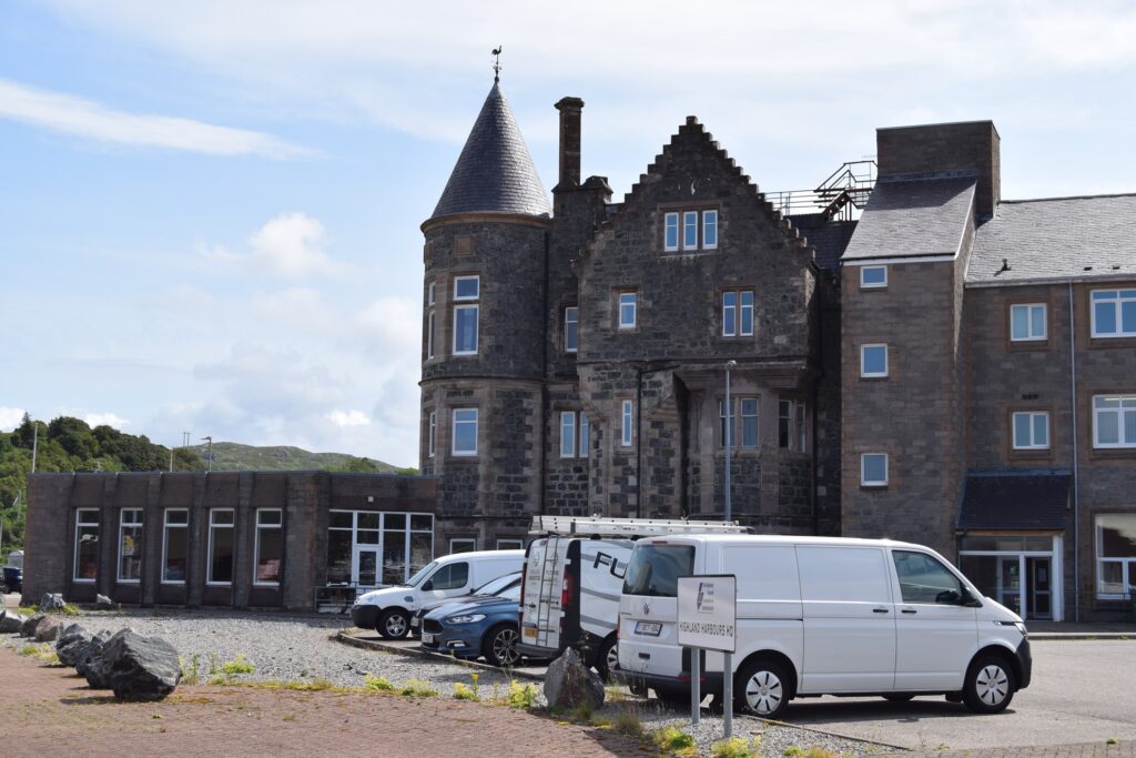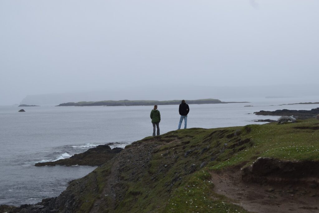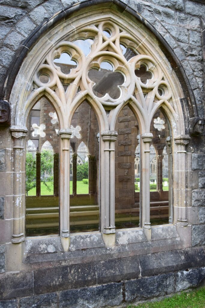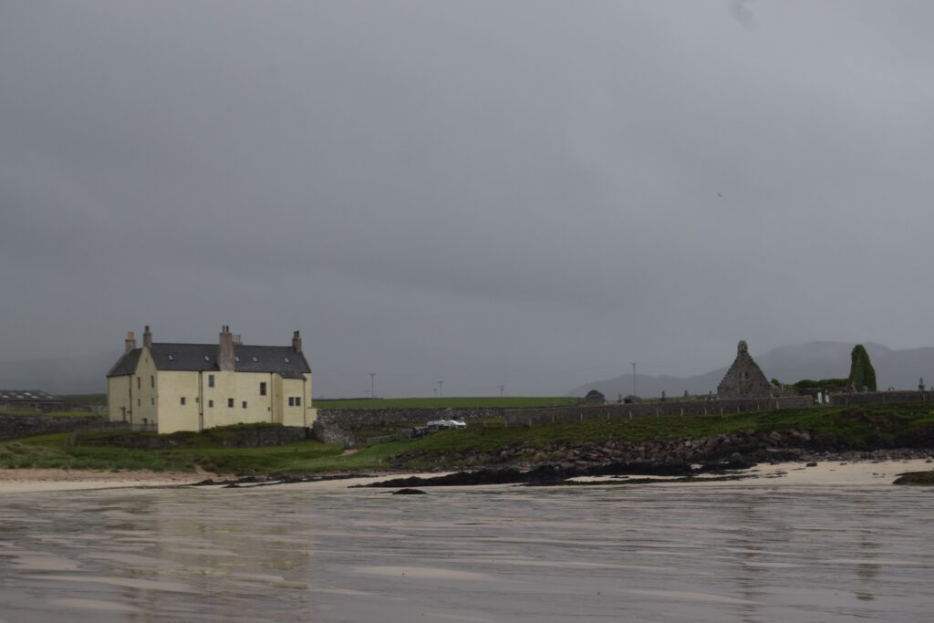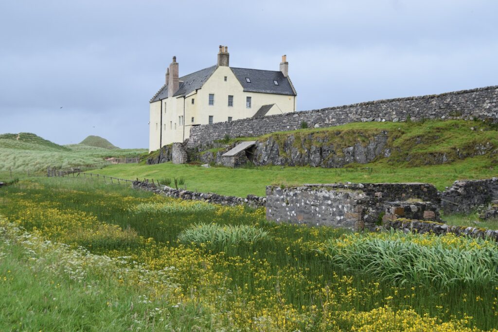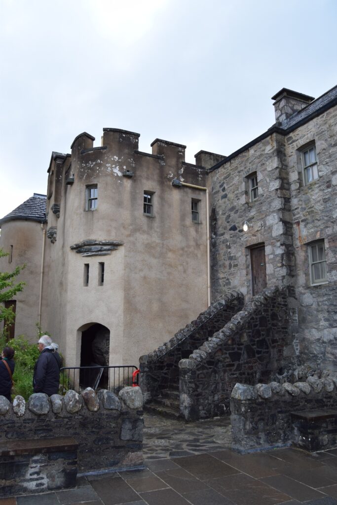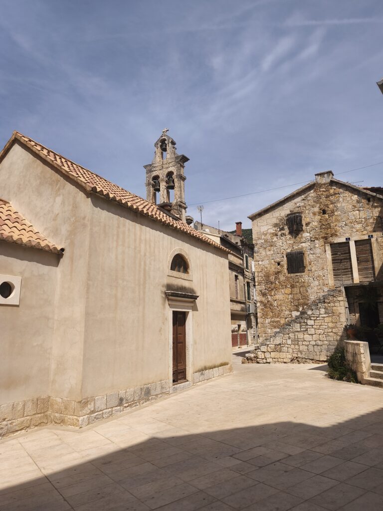 Wschodnia i północna część wzgórza kościelnego oddzielona jest od położonego niżej cmentarza murem oporowym. Tak on jak i ogrodzenie wykonane są z kamienia granitowego i wizualnie współgrają z romańskimi murami świątyni. W skład kompleksu wchodzą jeszcze dwa budynki: Plebania, która bardzo ujęła mnie swoją architekturą oraz dom parafialny. Ta pierwsza to dwa równolegle usytuowane stromodachowe budynki zespolone łącznikiem z wejściem pod drewnianym ganeczkiem. Drugi budynek obsługujący dzisiaj najpewniej grupy pielgrzymkowe, kiedyś pewnie służył nauczaniu religii, a w czasach wilhelmińskich, gdy powstawał, mógł być też katolicką szkołą powszechną. W owych czasach panowała bowiem na tym poziomie nauczania segregacja religijna. Dzięki jesiennemu ogołoceniu drzew z liści widok spod kościoła obejmował dolinę górnej Baryczy i okoliczne Wzgórza Wysockie. Natomiast zamglenia i duża wilgotność powietrza nie pozwalały nam zweryfikować twierdzenia, że kościół w Kotłowie “patrzy” na trzy inne świątynie: w Wysocku Wielkim, Chełmcu i Ołoboku.