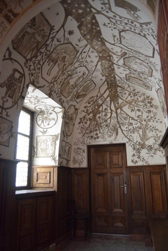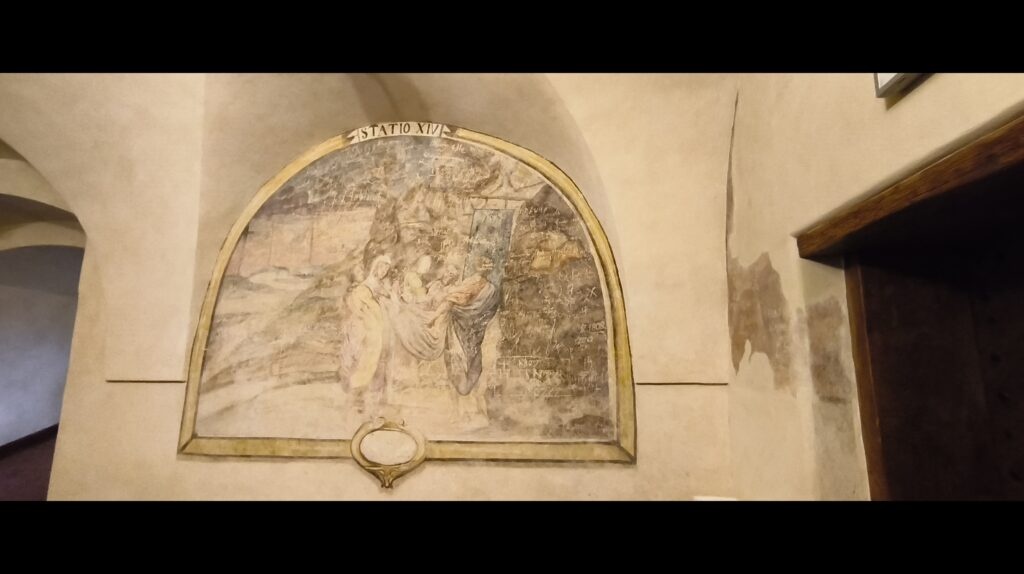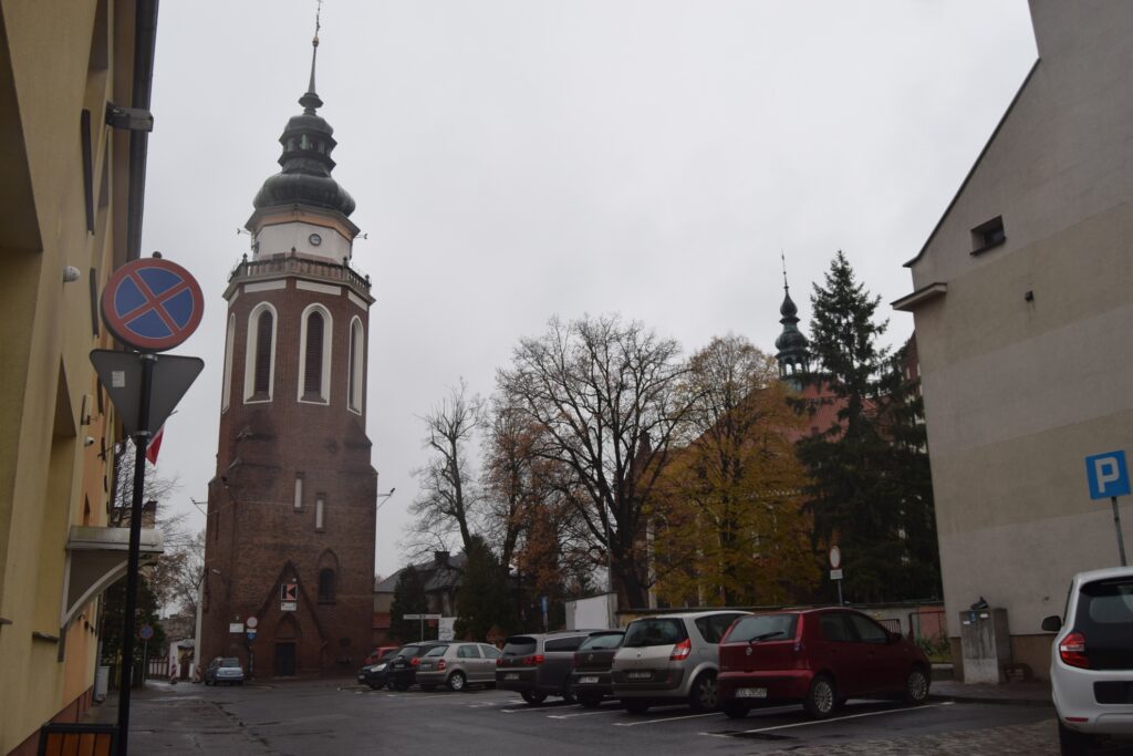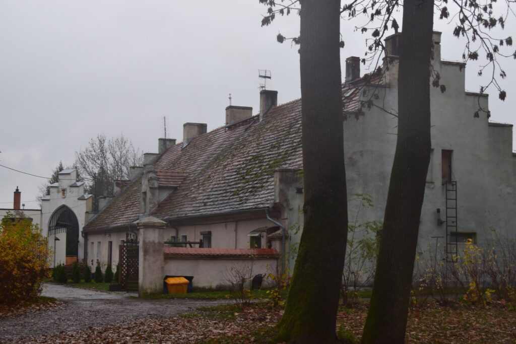 Na moją część kobylogórskiej wyprawy przypadły wycieczki do okolicznych miasteczek. Powiatowy Ostrzeszów przodował w ilości pozycji na liście zabytków, jak też ich wiekowości. Cztery kościoły: gotycki parafialny, barokowy wraz z klasztorem, neogotycki – poewangelicki oraz drewniany, niegdyś cmentarny kościółek św. Mikołaja; pozostałości zamku kazimierzowskiego, klasycystyczny ratusz i kilka ciekawych kamienic eklektycznych i secesyjnych. Jednocześnie miasto nie zaznawszy znaczących zniszczeń wojennych dzisiaj zmaga się z utrzymaniem wiekowych budynków w odpowiednim stanie. W listopadowej mgle zmieszanej z dymem spalanego w historycznych piecach węgla nie robiło oszałamiającego wrażenia. W dodatku zwiedzanie zabytków sakralnych było możliwe głównie z zewnątrz. W kościele farnym nawet rzut oka, z zazwyczaj ogólnodostępnej, kruchty był niemożliwy, bo przeszklone drzwi wiodące do nawy głównej zabezpieczono przed utrata ciepła grubą kapą. W tej sytuacji najciekawsze wspomnienia z miasta pochodzą z wypieszczonego wewnętrznego ogródka przy klasztorze sióstr nazaretanek. W kruchcie klasztornego kościoła odkryliśmy natomiast stację drogi krzyżowej oszpeconą przez rozliczne wpisy odwiedzających świątynię wandali. Okazało się jednak, że tradycja rycia w ścianie pamiątek swego pobytu liczy tu bez mała 220 lat, czyli zasługuje już sama w sobie na tytuł zabytku. W południowej, wyżej położonej części miasta, wznosi się modernistyczna wieża ciśnień postawiona w 1916 r., u schyłku pruskich rządów w Wielkopolsce. Obiekt, niewątpliwie interesujący i znaczący krajobrazowo, ale jeszcze ciekawsze jest jego otoczenie zabudowane współczesnymi mu dworkopodobnymi willami.