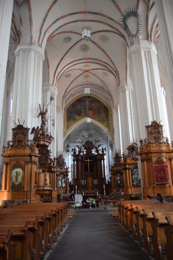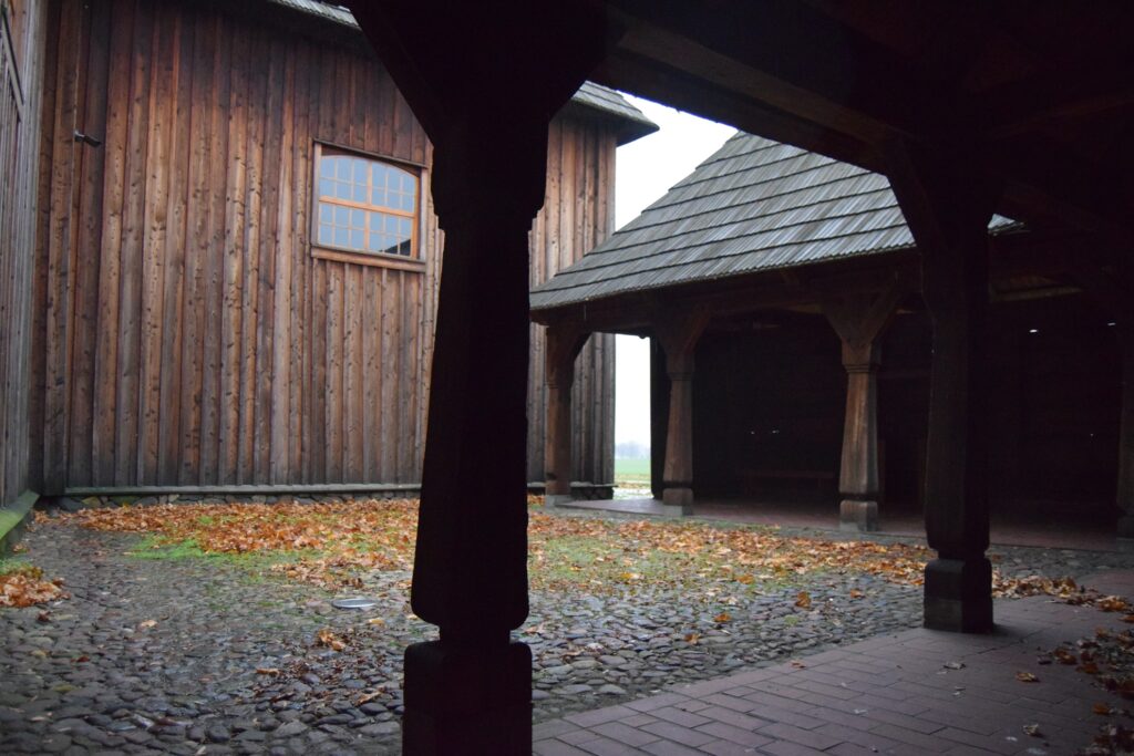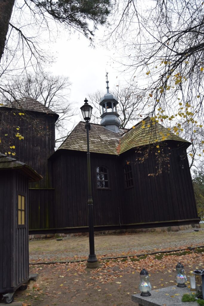 Do listy odwiedzonych obiektów sakralnych trzeba dopisać dwa wchodzące od 1919 roku w skład województwa wielkopolskiego, ale historycznie ulokowane na terytorium Śląska. Obydwa charakteryzuje położenie na uboczu, a nie w centrum miejscowości. Kościół ewangelicki w Pisarzowicach został postawiony w roku 1902 dla upamiętnienia przedwcześnie zmarłego syna książąt Bironów z Sycowa. Solidne, granitowe mury trzymają się krzepko mimo, że świątynia od lat pozbawiona jest dachu. Herby książęcych rodziców wciąż dumnie zdobią szczyty bocznej elewacji ponad ogromnymi otworami okiennymi. Wnętrza zostały ogołocone z bogatego (np. “kazalnica wysadzana szlachetnymi kamieniami”) wyposażenia. Co poniektóre elementy wystroju, jak dzwony, ławki i organy trafiły do okolicznych kościołów katolickich. Od kilku lat kościół jest własnością prywatną. Właściciel, trzeba to przyznać, oczyścił posesję i wnętrze, ale nie ujawnia czemu miałby służyć ten obiekt po ewentualnej renowacji. Atmosfera wnętrza sądząc po fotografiach jest surowa i nieco mistyczna. Mówi się, że to właśnie tu zespół Behemot nagrał jeden ze swoich teledysków. Drewniany, katolicki kościół pielgrzymkowy “na Pólku” wznosi się jakieś 2 km za granicami Bralina. Nietypowe jest, że zbudowano go na planie krzyża greckiego (równoramiennego). Ale jeszcze ciekawsze jest, że otoczono go czworobokiem zabudowy, w tym, od strony wschodnie zadaszonymi arkadami. Niegdyś, nocowali w nich przybyli z daleka pielgrzymi. Obecnie wstawiono tu konfesjonały przydatne przy dużym napływie wiernych, a pewnie gdy święto przypada w deszczowy dzień można w ich ukryciu uczestniczyć w liturgii. Kościółek chroni we wnętrzu obraz Matki Boskiej Pólkowskiej, a główne uroczystości odpustowe przypadały w tym roku na 22 lipca i 7 września. Ponieważ odprawiane są w nim nabożeństwa w każdą niedzielę o 15, zgaduję, że można wtedy zajrzeć do wnętrza. My byliśmy tam, niestety, w poniedziałek.