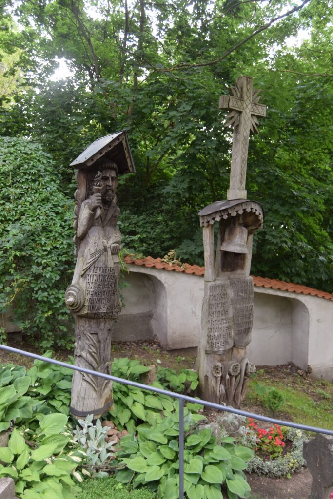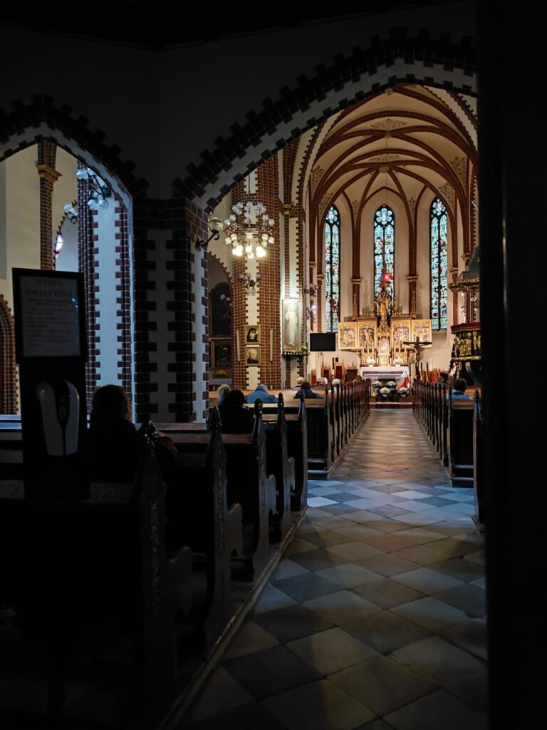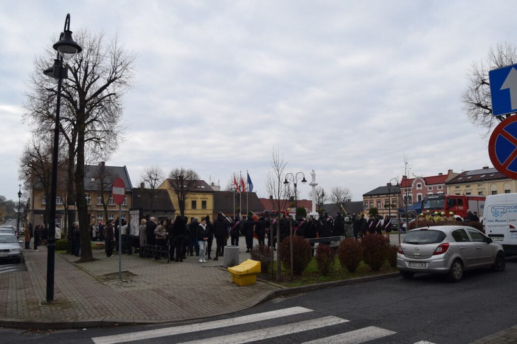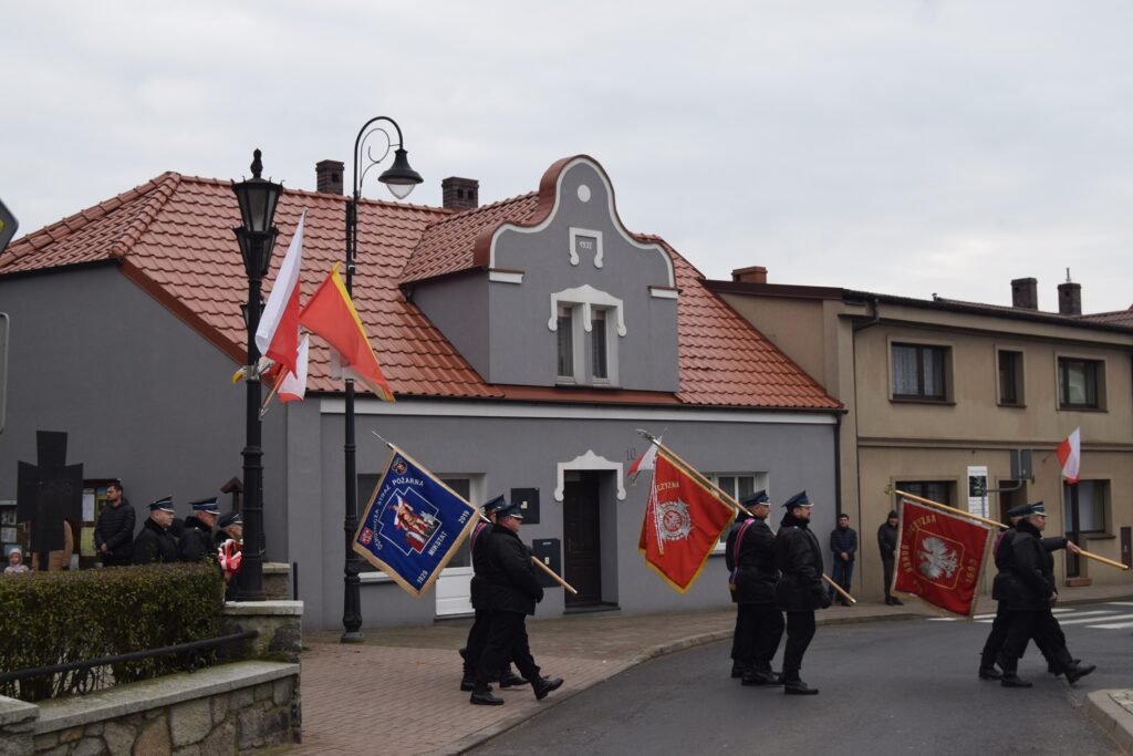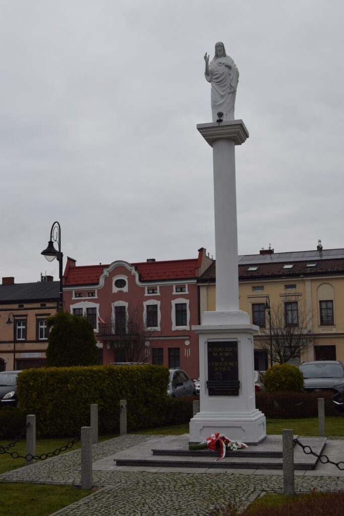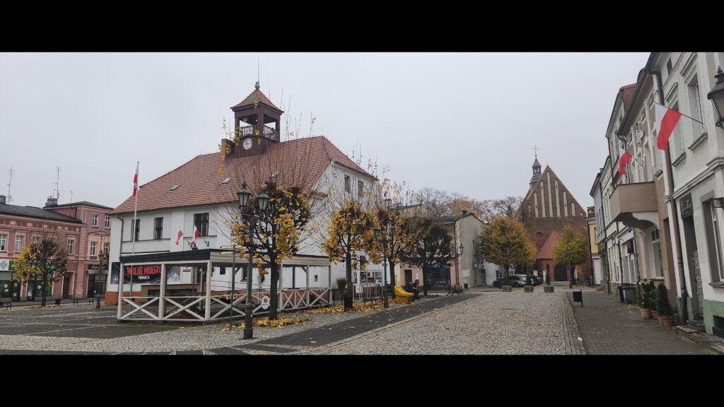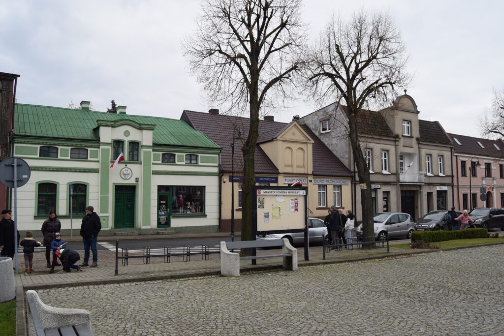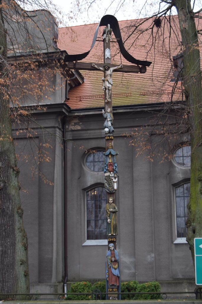 Mikstat, choć najmniejszy z odwiedzanych miasteczek zrobił na nas dobre wrażenie. Może ze względu na kompaktowość zabudowy odczuwa się, niemal fizycznie, jak wzgórza otulają centrum miejscowości. Od drewnianego kościółka na cmentarzu schodzi się doń długaśnymi schodami. W panoramie wyróżnia się zielonkawy, nieproporcjonalnie wysoki hełm na wieży kościoła parafialnego. Na wzgórzach po wschodniej stronie miasta jest podobno wieża widokowa, ale do niej nie dotarliśmy. Z kościoła, jako że wizyta przypadała 11 listopada, właśnie wychodzili uczestnicy mszy za ojczyznę. Strażacy, terytorialsi, harcerze, odświętnie ubrani panie i panowie. Sztandary państwowe i flagi kościelne. Nad głowami rozciągnięto biało-czerwoną flagę i przemaszerowano na pobliski rynek. Tam odśpiewano hymn, burmistrz przemówił, zagrała orkiestra i zgromadzeni rozeszli się do domów. Przecież w święto wielkopolska tradycja nakazuje napić się kawy zagryzając ciastem domowego wypieku. Okazuje się, że można świętować bez piętnowania “zdrajców ojczyzny” i rzucania petardami. W Mikstacie, przy kościele stoi krzyż dłuta Pawła Brylińskiego. Był to ludowy rzeźbiarz wędrowny, który działał w XIX wieku, głównie na południe i zachód od Ostrowa Wielkopolskiego tworząc krzyże z figuralnymi kompozycjami, zwane popularnie „Bożą męką”. Na krzyżu takim prócz figury Ukrzyżowanego przedstawione są też osoby oraz przedmioty związane z tym wydarzeniem. W zależności od zasobności fundatora elementów zdobniczych było więcej lub mniej, były malowane lub zostawały w kolorze drewna. Co ciekawe, niektóre z tych krzyży były rzeźbione w jednym pniu drzewa.