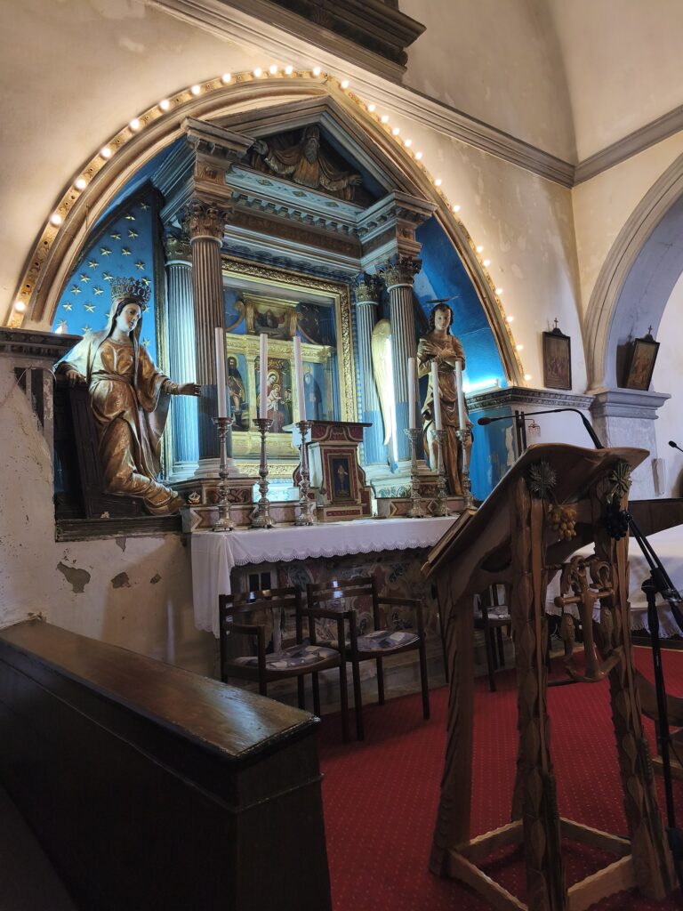 Wraz z pierwszymi kroplami deszczu podjechaliśmy na parking pod kościelnym wzgórzem. Droga z Mikstatu do Parczewa (tak, Wielkopolska ma swój własny Parczew!) omija łukiem to sięgające 230 m npm. wzniesienie. By dotrzeć do kościoła trzeba jeszcze nieco wspiąć się cmentarną alejką. Wśród rozmaitych nagrobków wyróżniają się dwa, na których inskrypcje umieszczono na wykonanej z marmury rozłożonej księdze. Niechybnie, było to przedstawienie ostatniej strony księgi żywota i nawiązanie do jej religijnej symboliki. Sam kościół pod wezwaniem Narodzenia NMP był 11 listopada, było nie było, w święto państwowe, a nie kościelne, otwarty. A jest to świątynia nie byle jaka, lecz jedna z najstarszych w całej południowej Wielkopolsce. W 2008 roku parafia kotłowska świętowała swoje 800 lecie, choć niektórzy historycy przesuwają powstanie kościoła o pół wieku, a za fundatora mają nie palatyna Piotra Włosta, lecz księcia Mieszka III. W każdym razie zbudowany z granitowych głazów korpus główny świątyni prezentuje cechy charakterystyczne stylu romańskiego. Późniejsze dobudówki, jak wieża, zakrystie, czy transpet nie zdominowały stylistycznie najstarszej części. We wnętrzu rzuca się w oczy kontrast między przykrytą drewnianym sklepieniem, surową częścią romańską, a rokokowo zdobionymi częściami nowszymi.