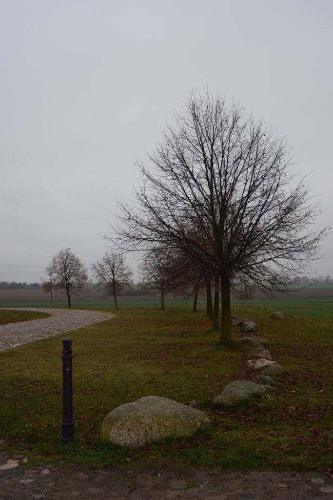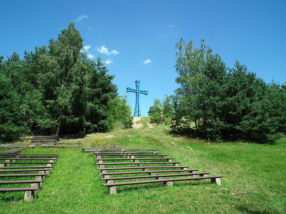 Podziomek należy do osób, które nie są skłonne ryzykować wyjazdów w miejsca, o których nic nie słyszała, zwłaszcza jeśli noszą niezbyt zachęcające nazwy. Dlatego, próbując przekonać ją do listopadowej wycieczki do Kobylej Góry pomału, acz konsekwentnie podsyłałem jej atrakcyjne zdjęcia i filmiki z okolic tej podostrzeszowskiej miejscowości. W końcu dała się przekonać, może dlatego, że wybrana miejscówka noclegowa zlokalizowana była poza miasteczkiem. Wyłoniona metoda perswazji nie była jednak uniwersalnie skuteczna. Partner naszej młodszej córki oświadczył “Musieliby mi zapłacić, bym w listopadzie pojechał do Kobylej Góry”. W trosce o stabilność domowego budżetu nie poszliśmy na takie rozwiązanie, więc jak obiecał tak i zrobił. Po prawdzie mój pobyt był krótszy o 2 dni od podziomkowego. Nie załapałam się więc na pieszą wycieczką na Kobylą Górę. Sięgające 284 m npm. wzniesienie jest najwyższe w Wielkopolsce. Zespół mający w składzie m. in. dwa psy (Harrego i Winyla) oraz niespełna czteroletnią wnuczkę – Zosię zdobył je jednak, korzystając z jedynego dnia słonecznej pogody podczas całego wyjazdu. Od 1999 roku szczyt wieńczy wysoki na 20 m metalowy krzyż, wokół którego powstała infrastruktura dla organizowania polowych nabożeństw, a sam góra uzyskała drugie określenie – Milenijna. Wśród turystycznego wyposażenia miejsca można znaleźć lunetę, jednak bezużyteczną ze względu na szybko rosnący borek sosnowy wokół szczytu. Dlatego dla miłośników dalekich widoków bardziej atrakcyjne wydaje się wzniesienie Bałczyna (278 m npm.) na południowych obrzeżach Ostrzeszowa.
